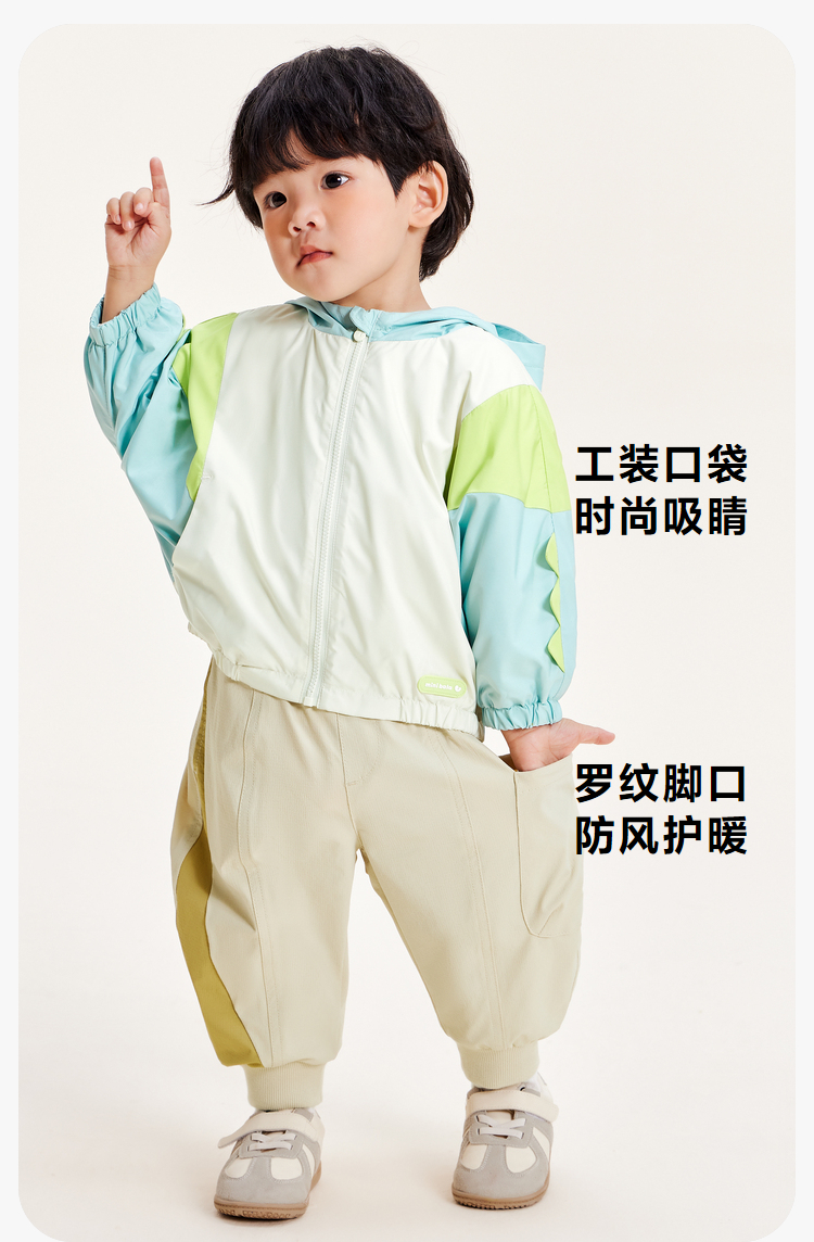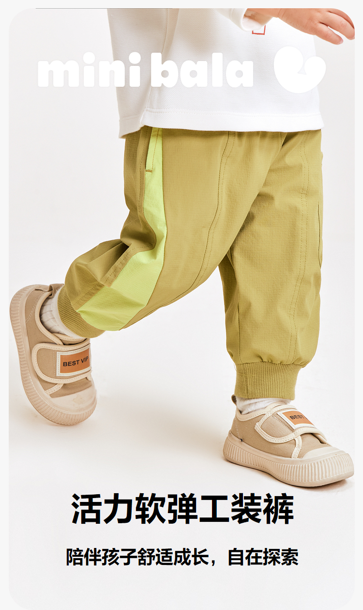 【户外风】迷你巴拉男女童长裤龙年宽松时尚撞色慢跑裤子