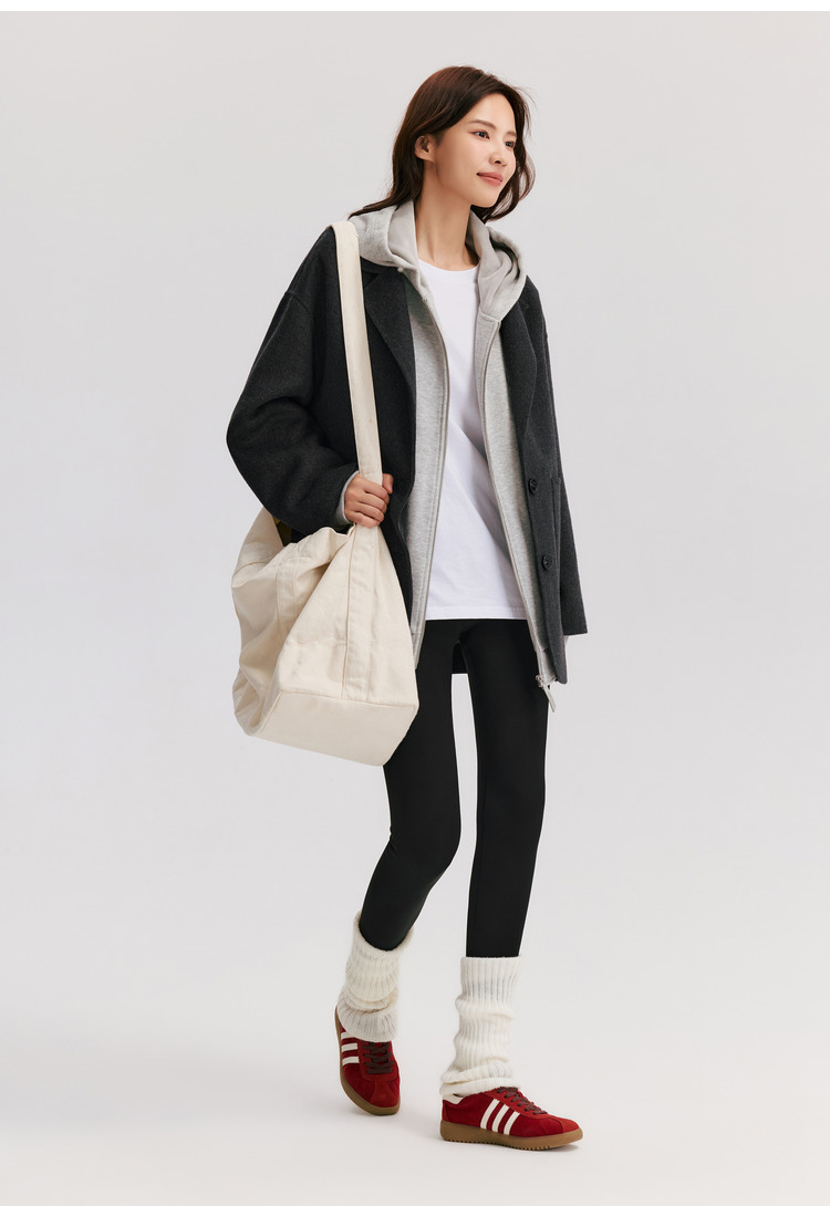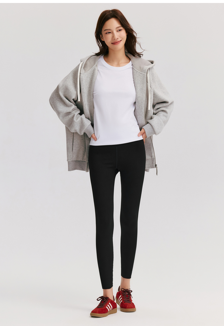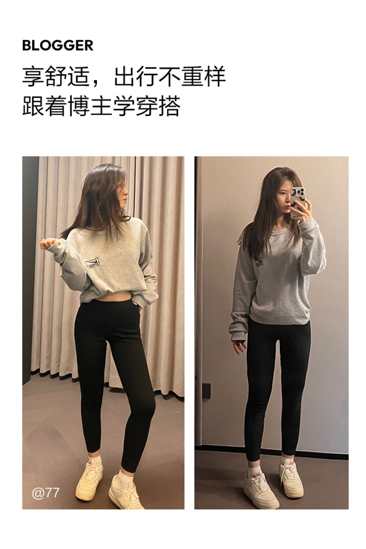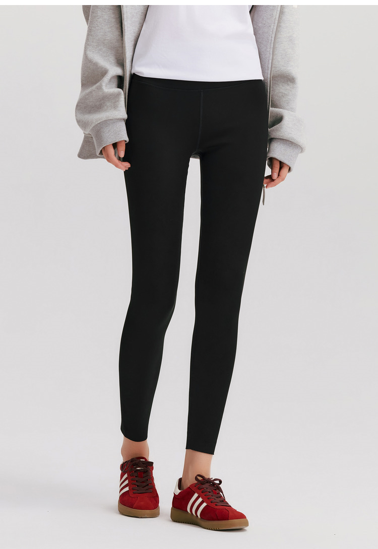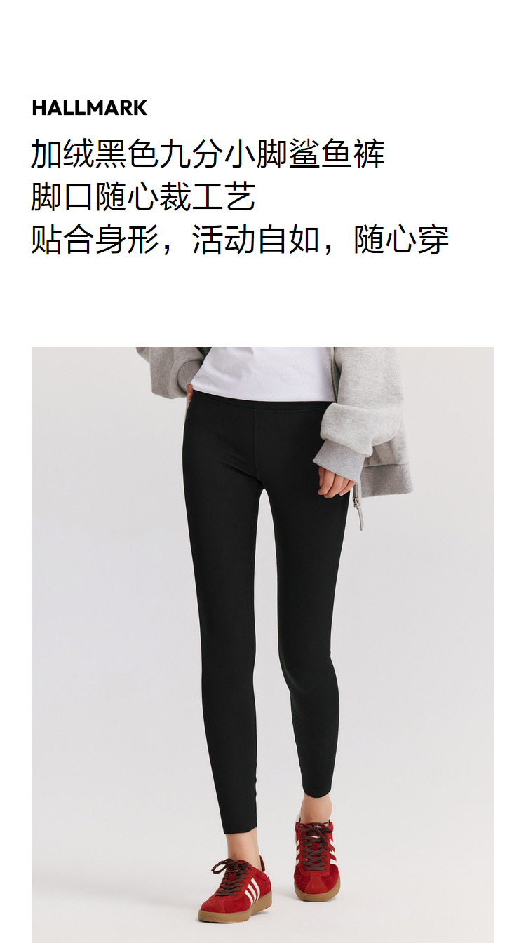森马休闲裤女加绒九分鲨鱼裤高弹冬季新款黑色修身小脚裤百搭