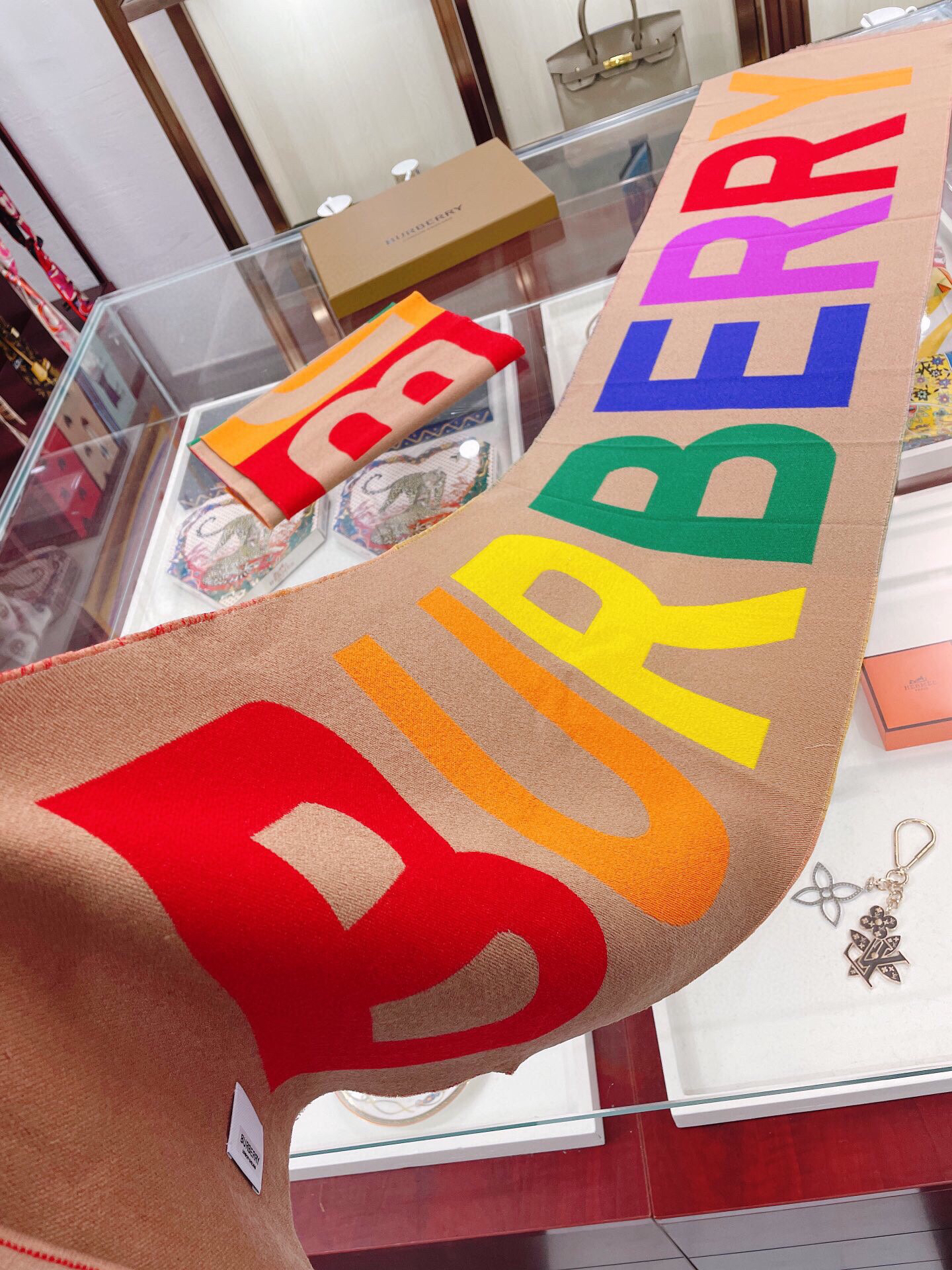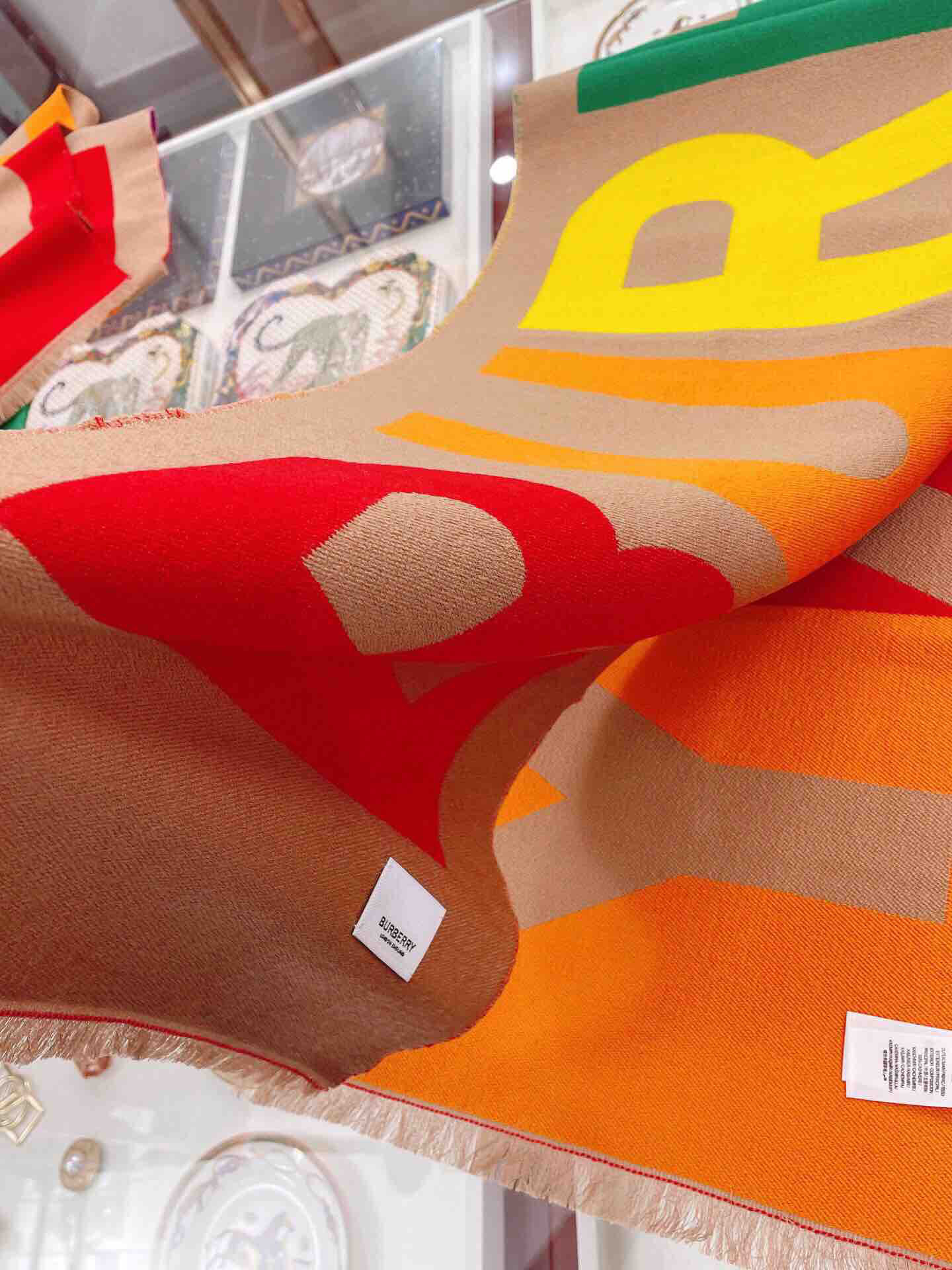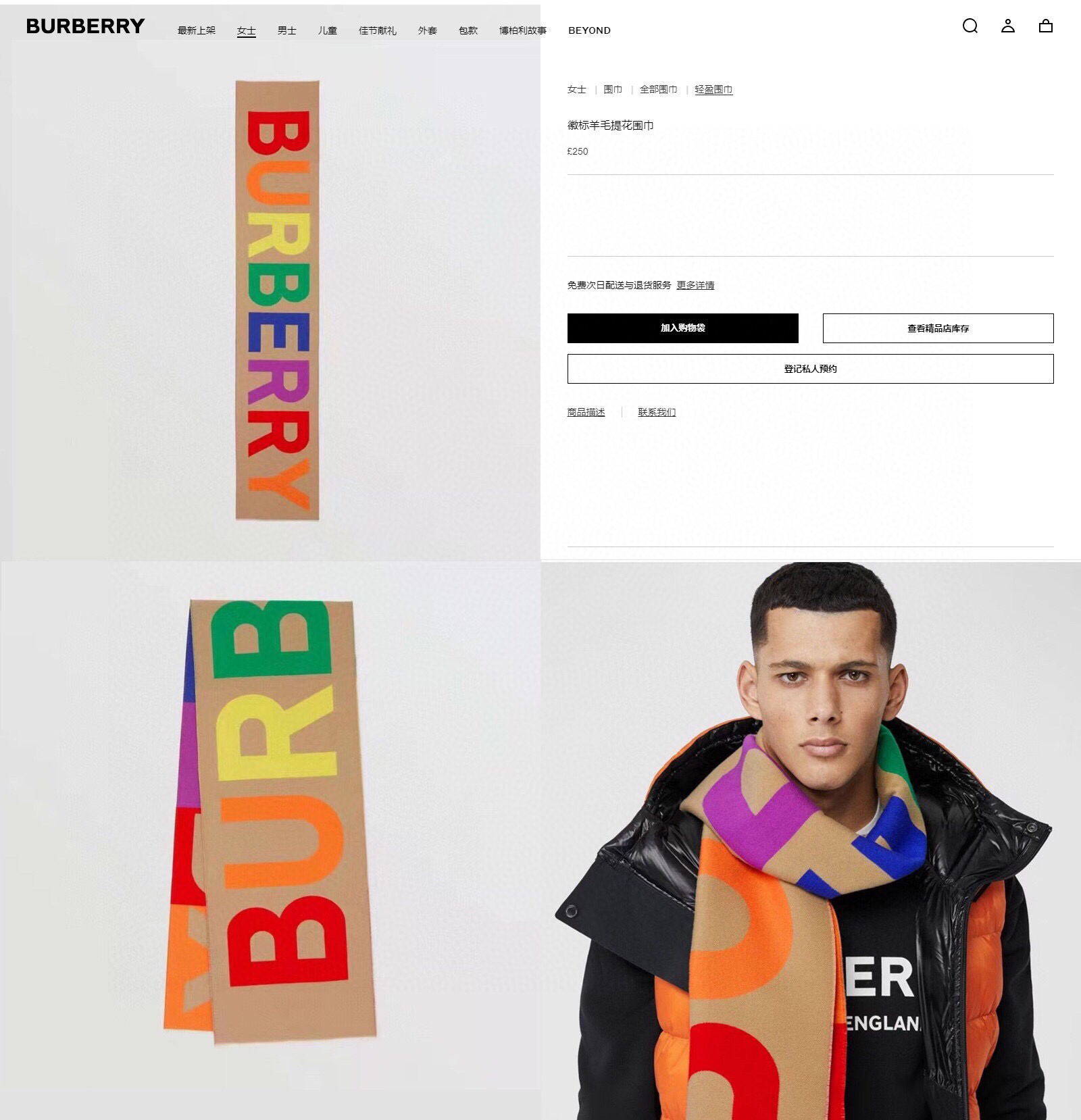 秋冬特惠💰350 人手一条推荐!BURBERRY巴宝莉新双面大字母围巾!超级推荐!大字母简约大牌!正反双色,完全等于2条围巾。专柜热卖的新款,超级保暖。B又一次将双色用在了围巾上,效果是超级棒的,也是很具有性价比的一款!!这款真心推荐,采用零点底绒法,围巾超级柔暖舒服!上身就是神奇的高级,与众不同,独一份的美!极简却又经典永恒!尺寸规格:33*188cm,100%羊毛(原版面料)