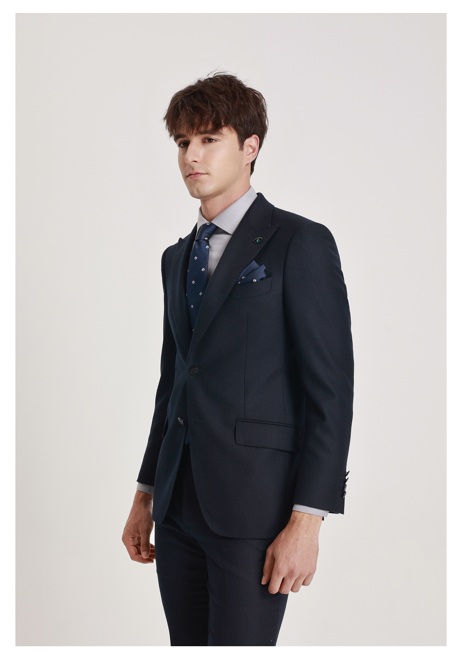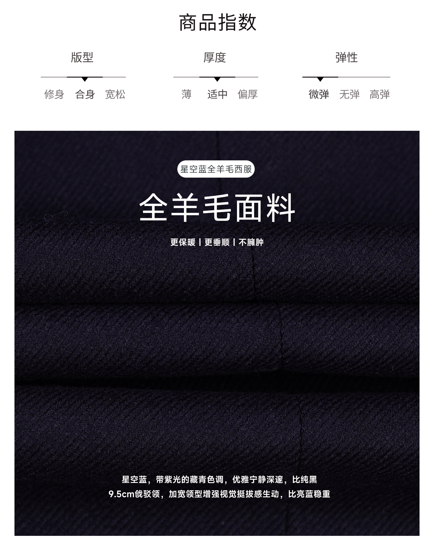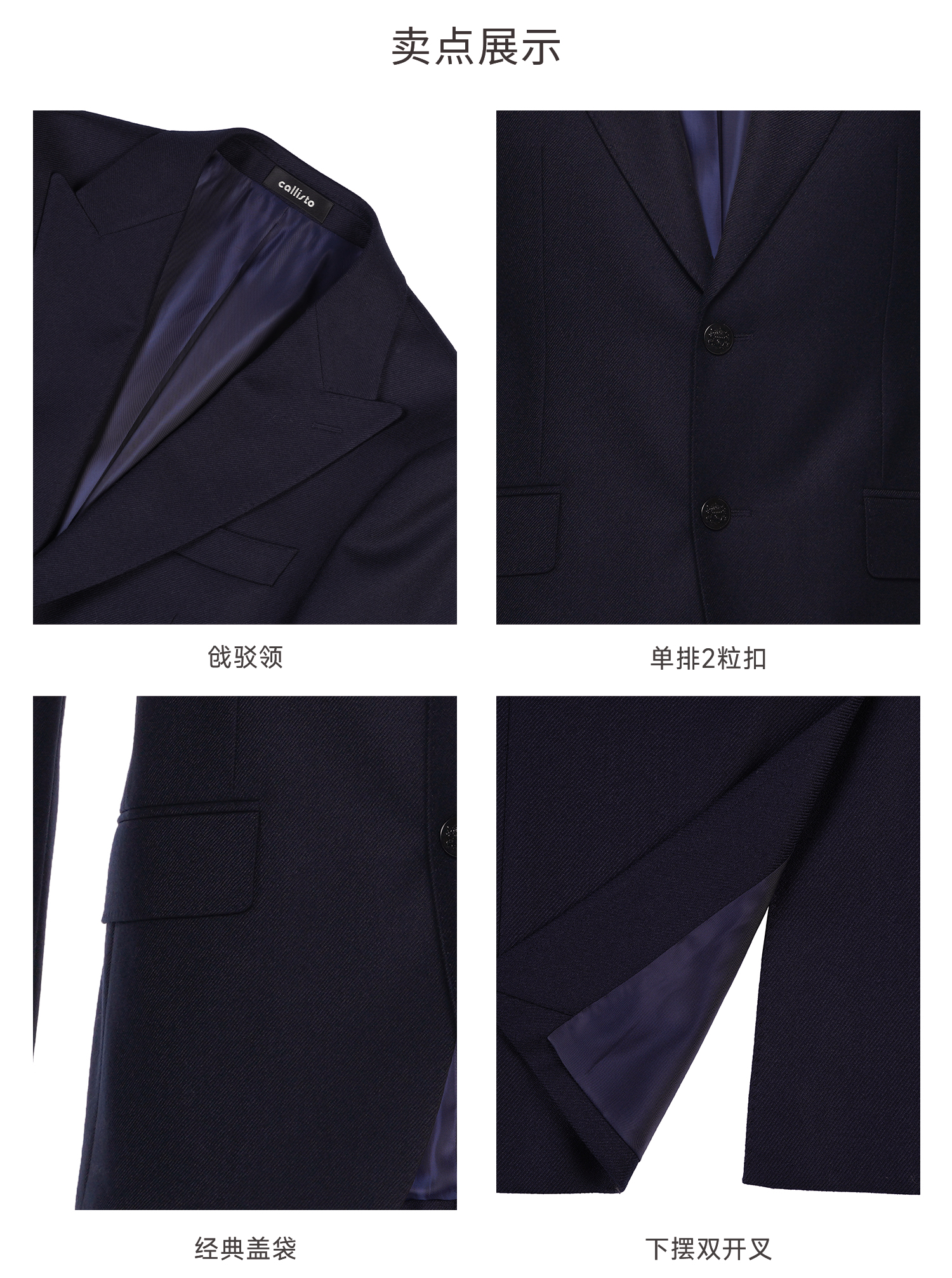 callisto星空蓝绵羊毛戗驳领西服