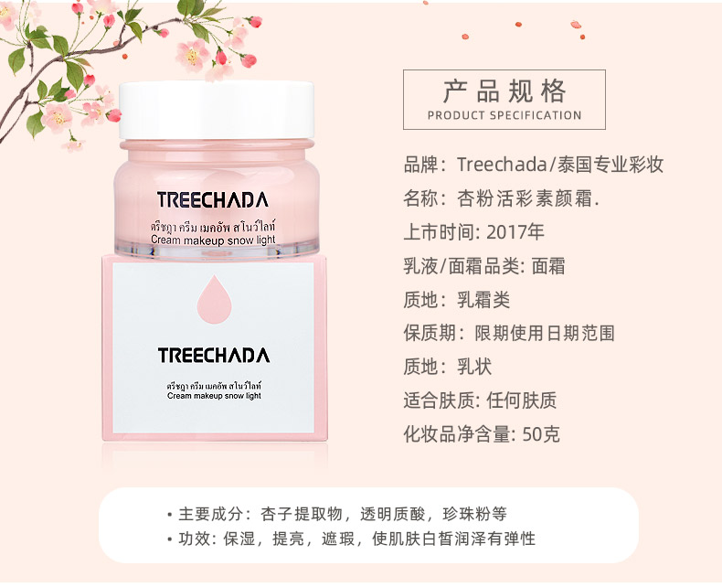 MMT 泰国TREECHADA素颜霜TR杏粉活彩雪肌裸妆提亮保湿妆隔离懒人面霜