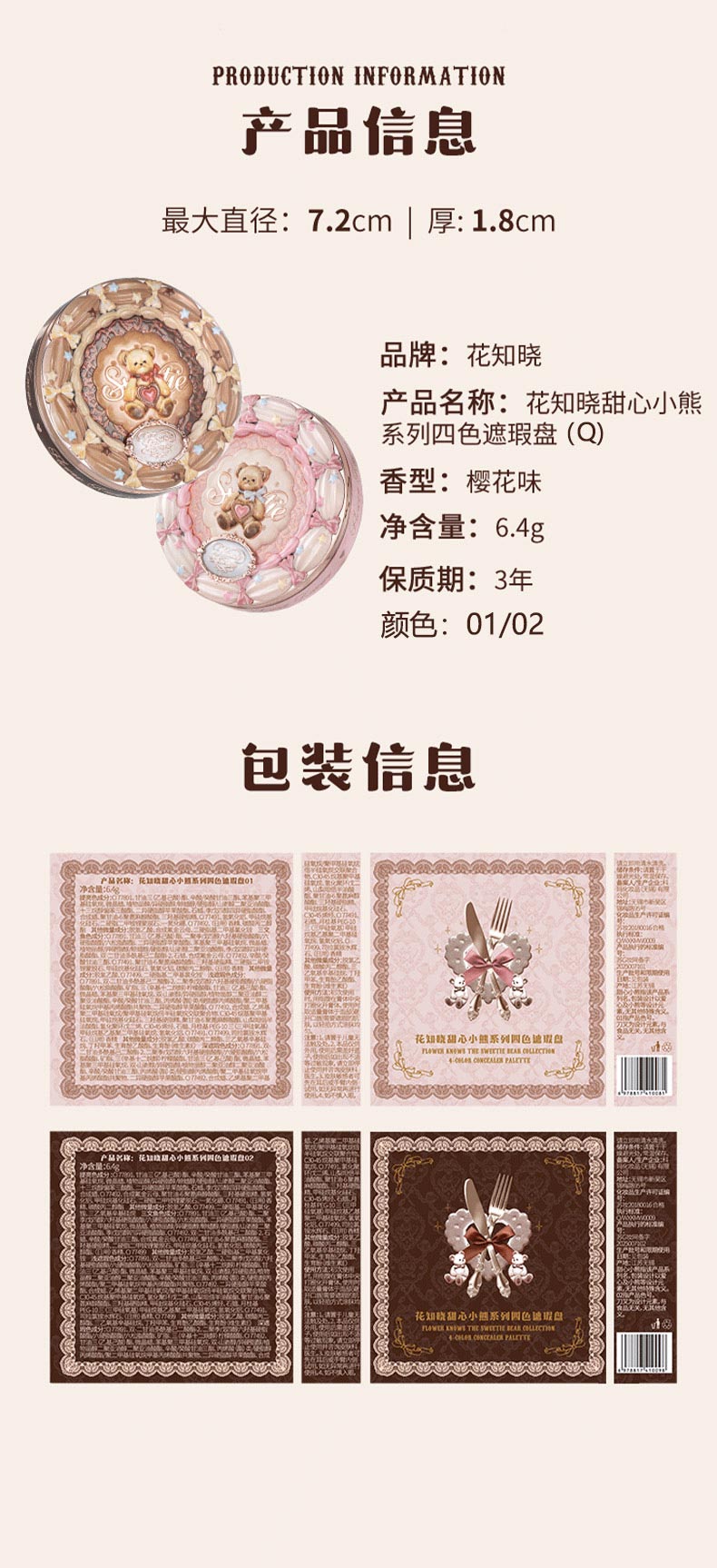 花知晓甜心小熊系列四色遮瑕膏-纪念日百货门店同款167543517