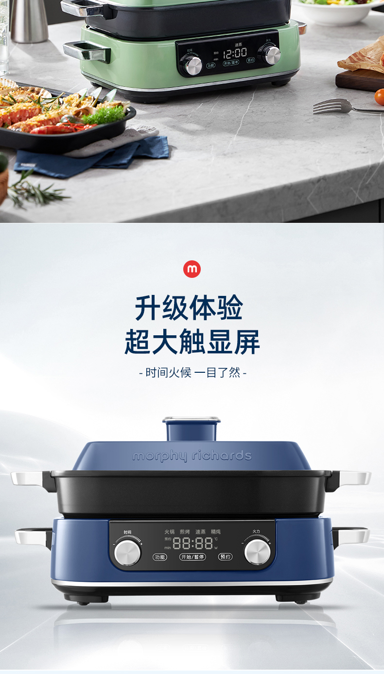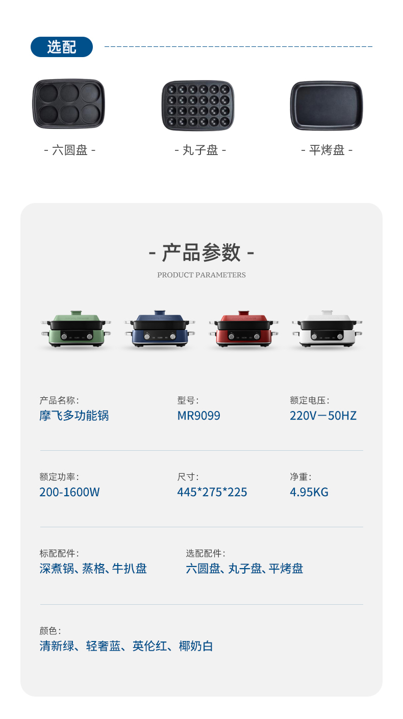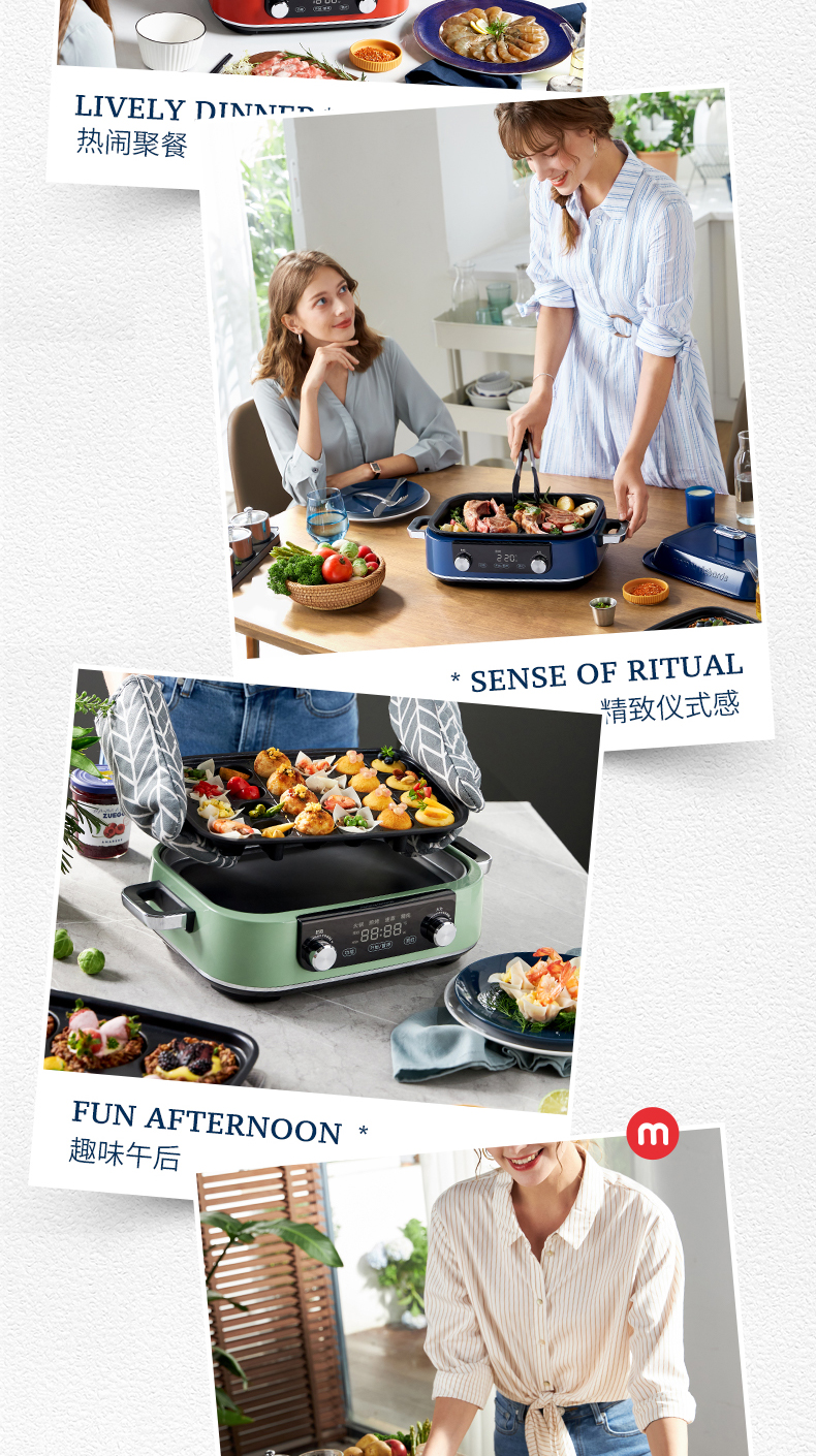 摩飞二代多功能料理锅火锅烤肉涮一体家用蒸煮炒煎电烤锅网红锅M2