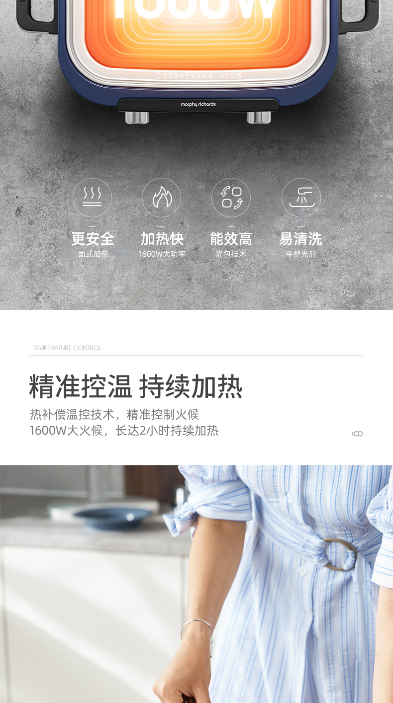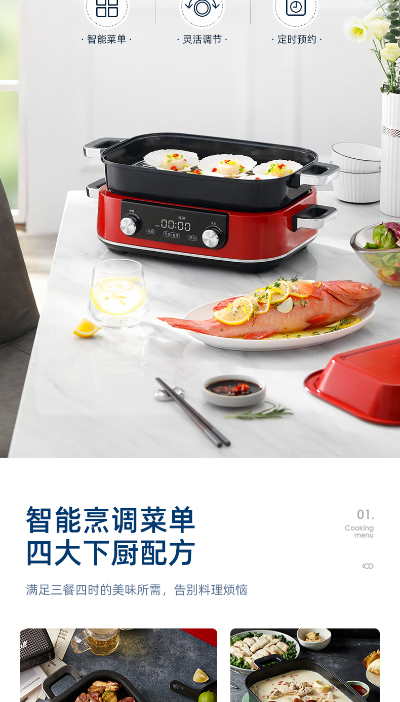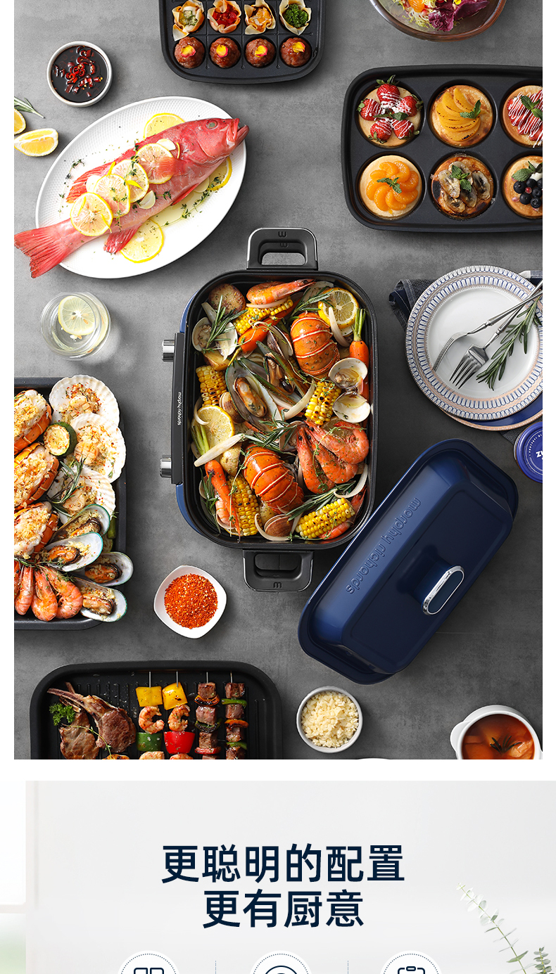 摩飞二代多功能料理锅火锅烤肉涮一体家用蒸煮炒煎电烤锅网红锅M2