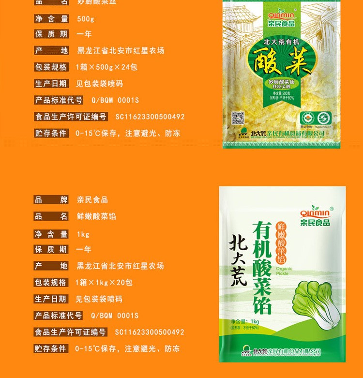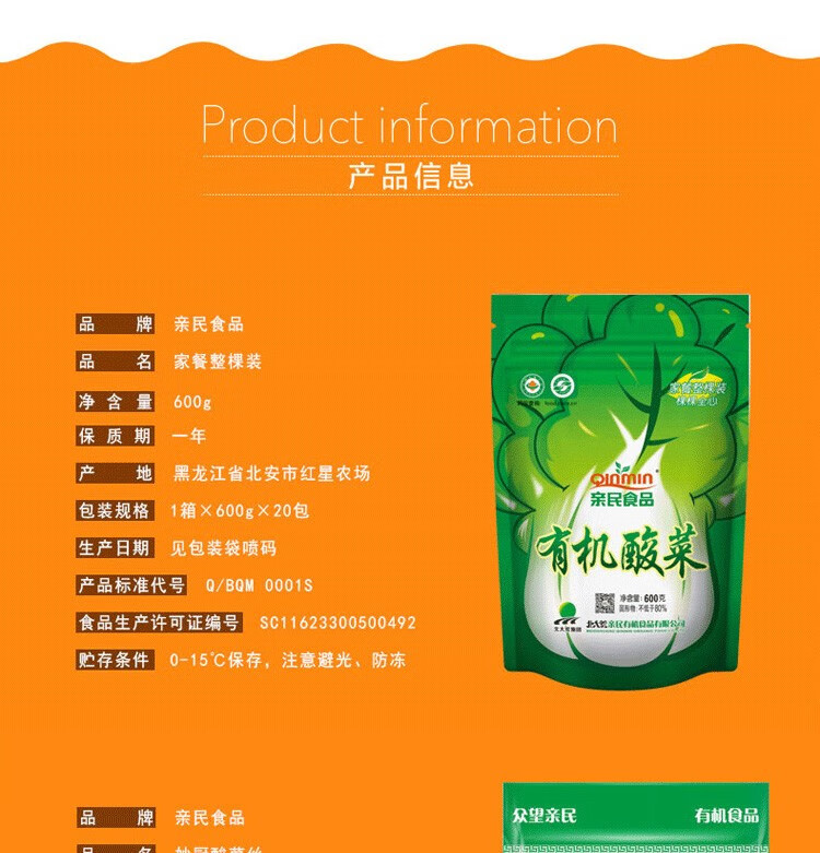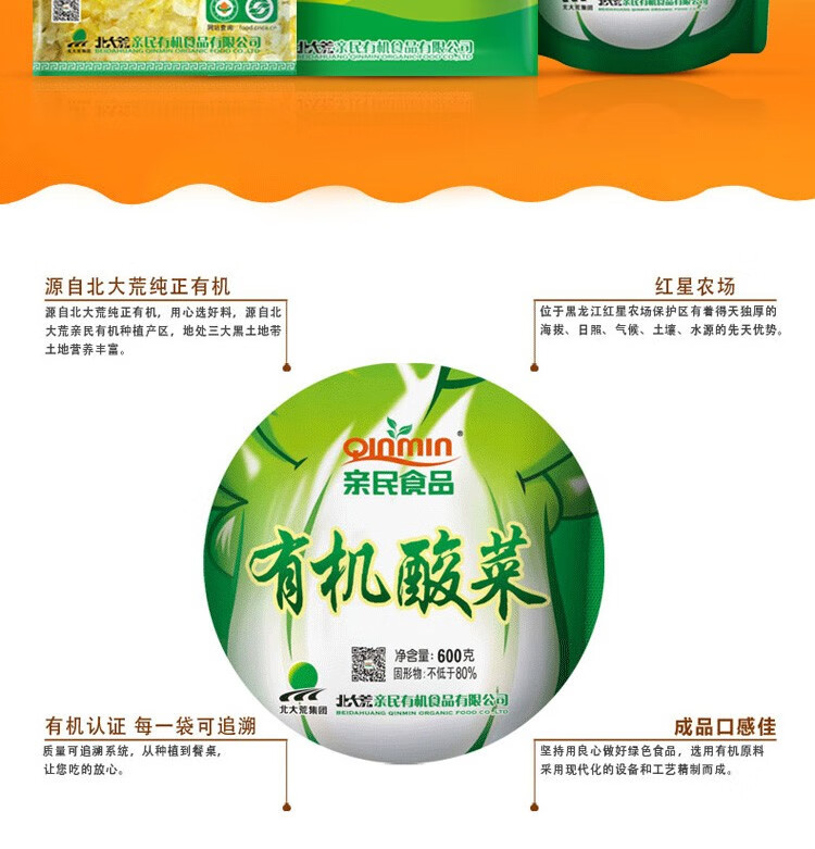 北大荒亲民有机酸菜东北特产 整颗酸菜500g*5颗