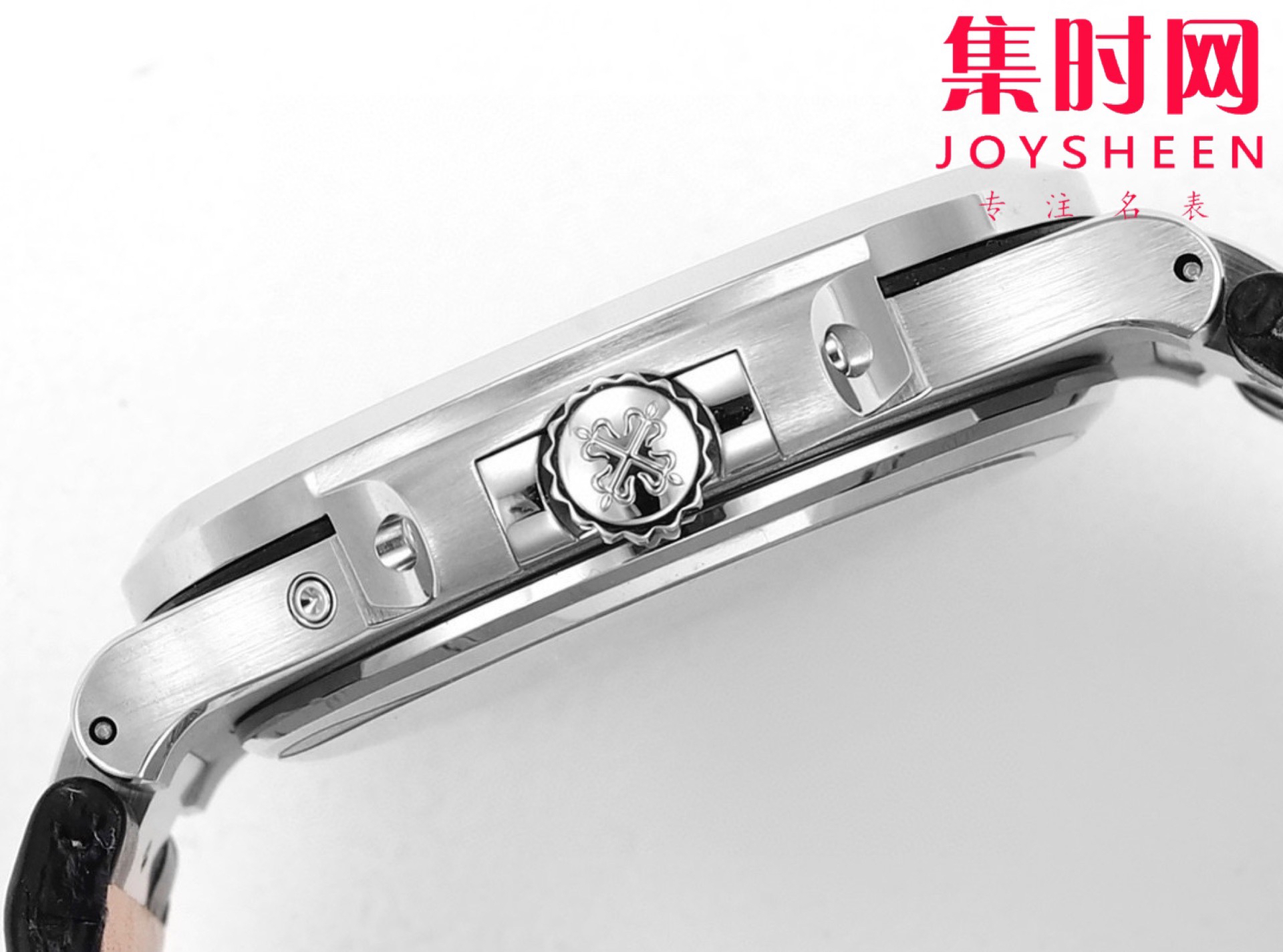 意大利小牛皮表带或316L精钢表带可选,铰链部分根据真正的百达翡丽鹦鹉螺拆解开发,和正品一致的贴合效果,铰链开合角度和正品一致,锁毕声音和正品相同。