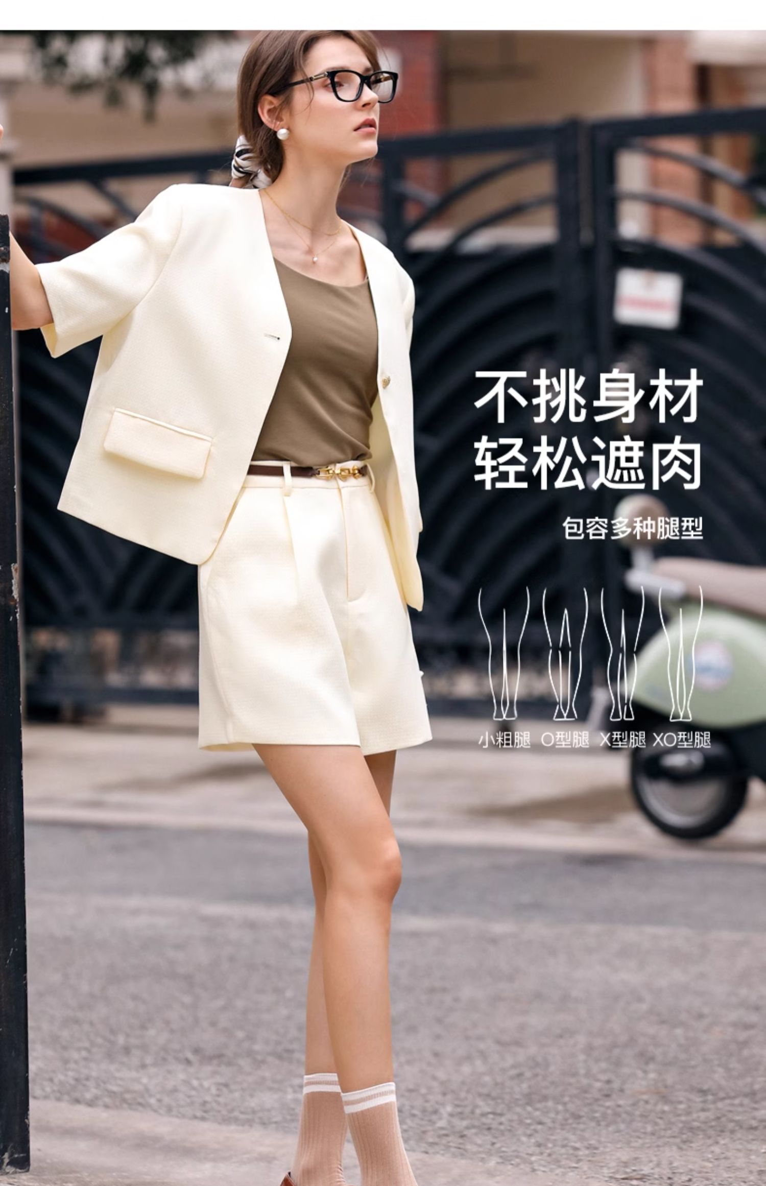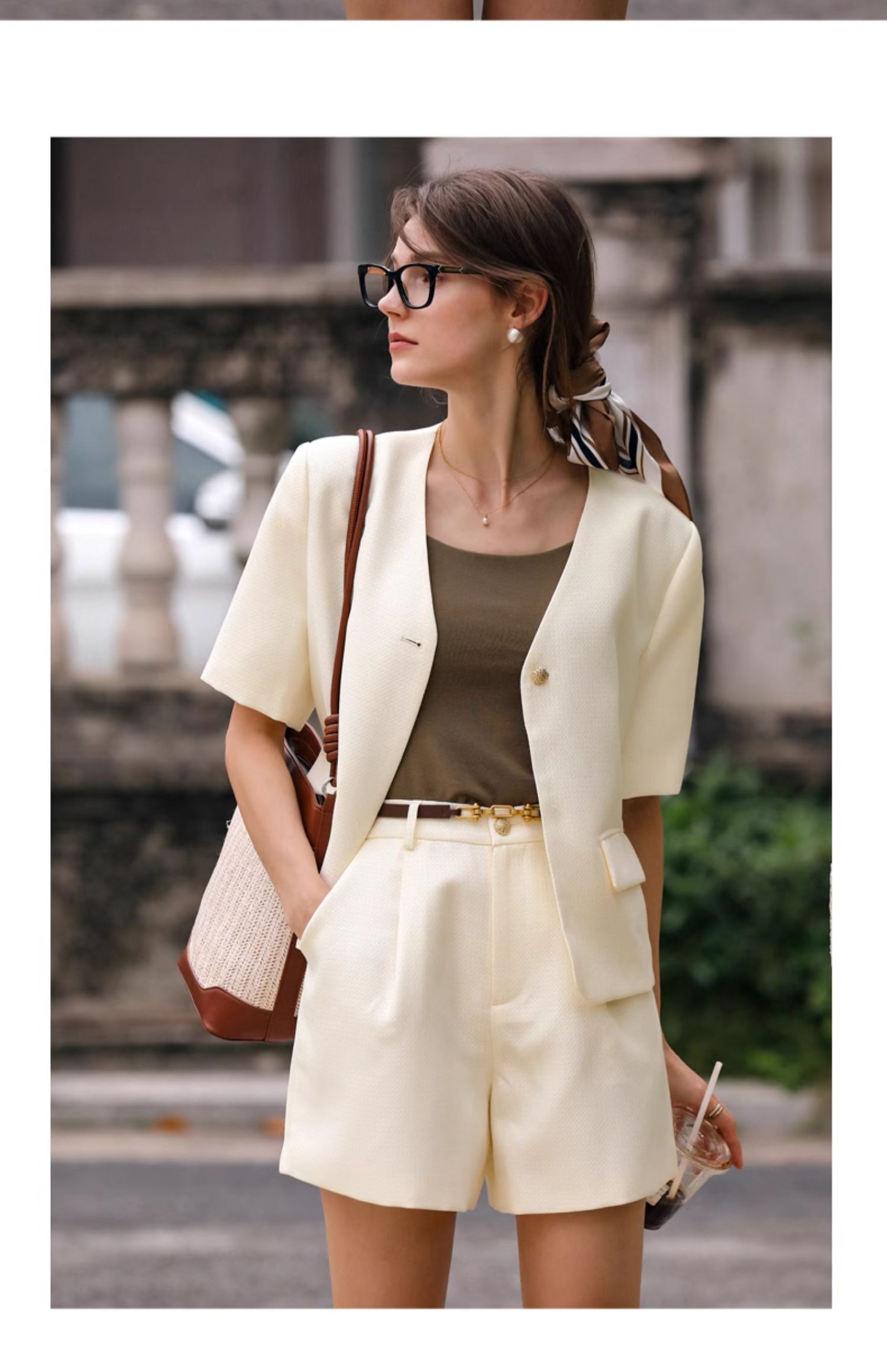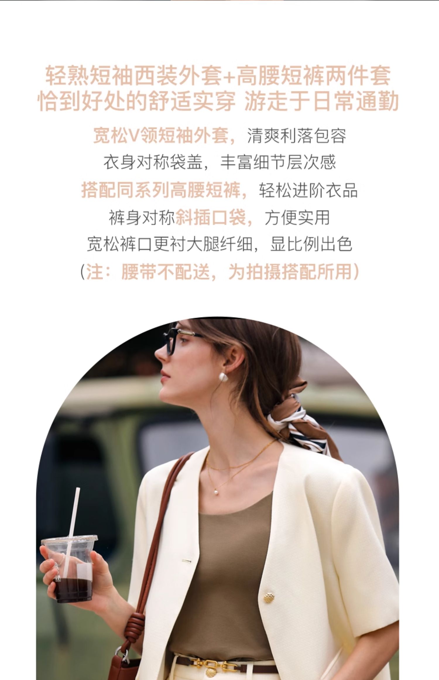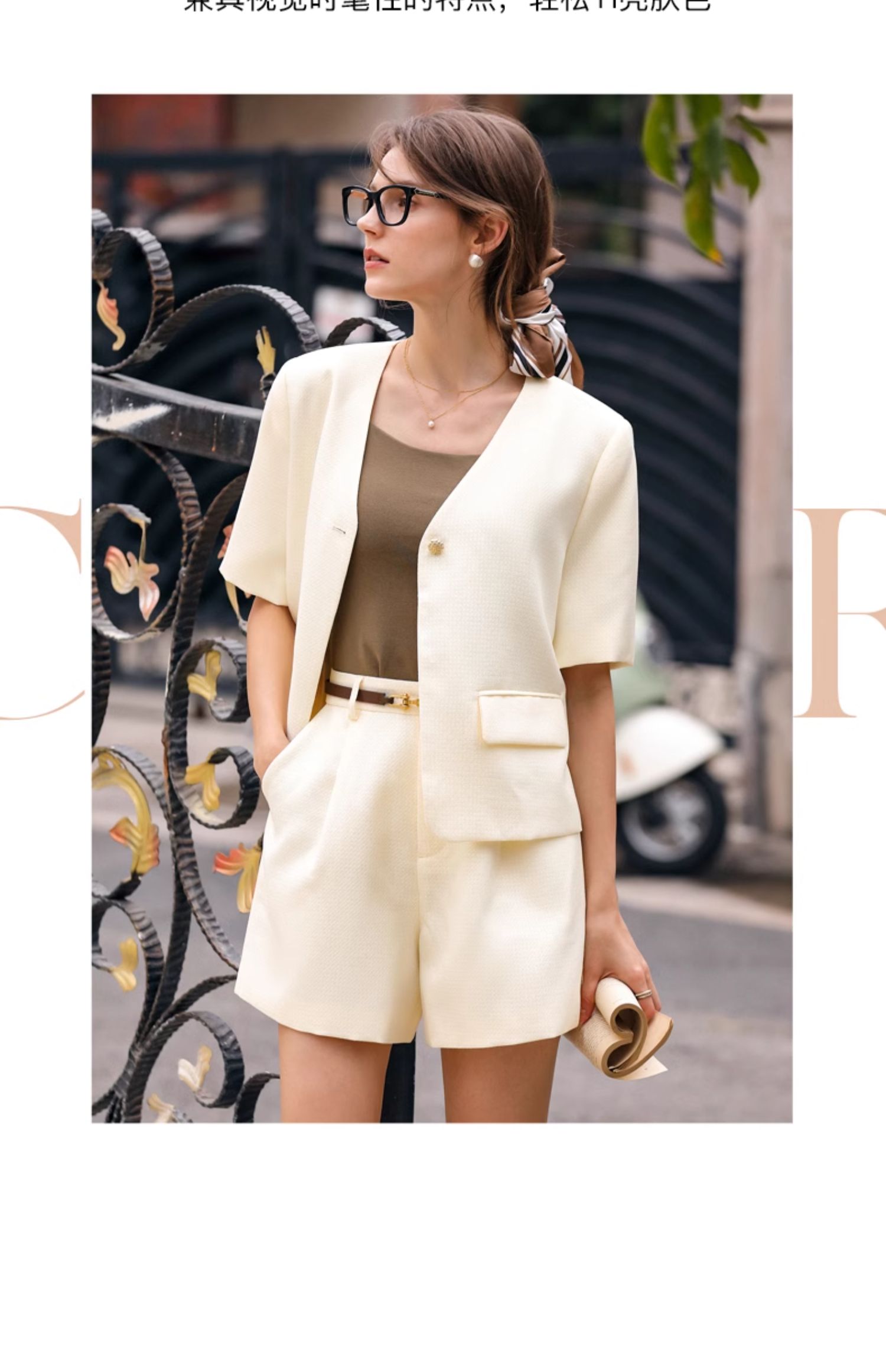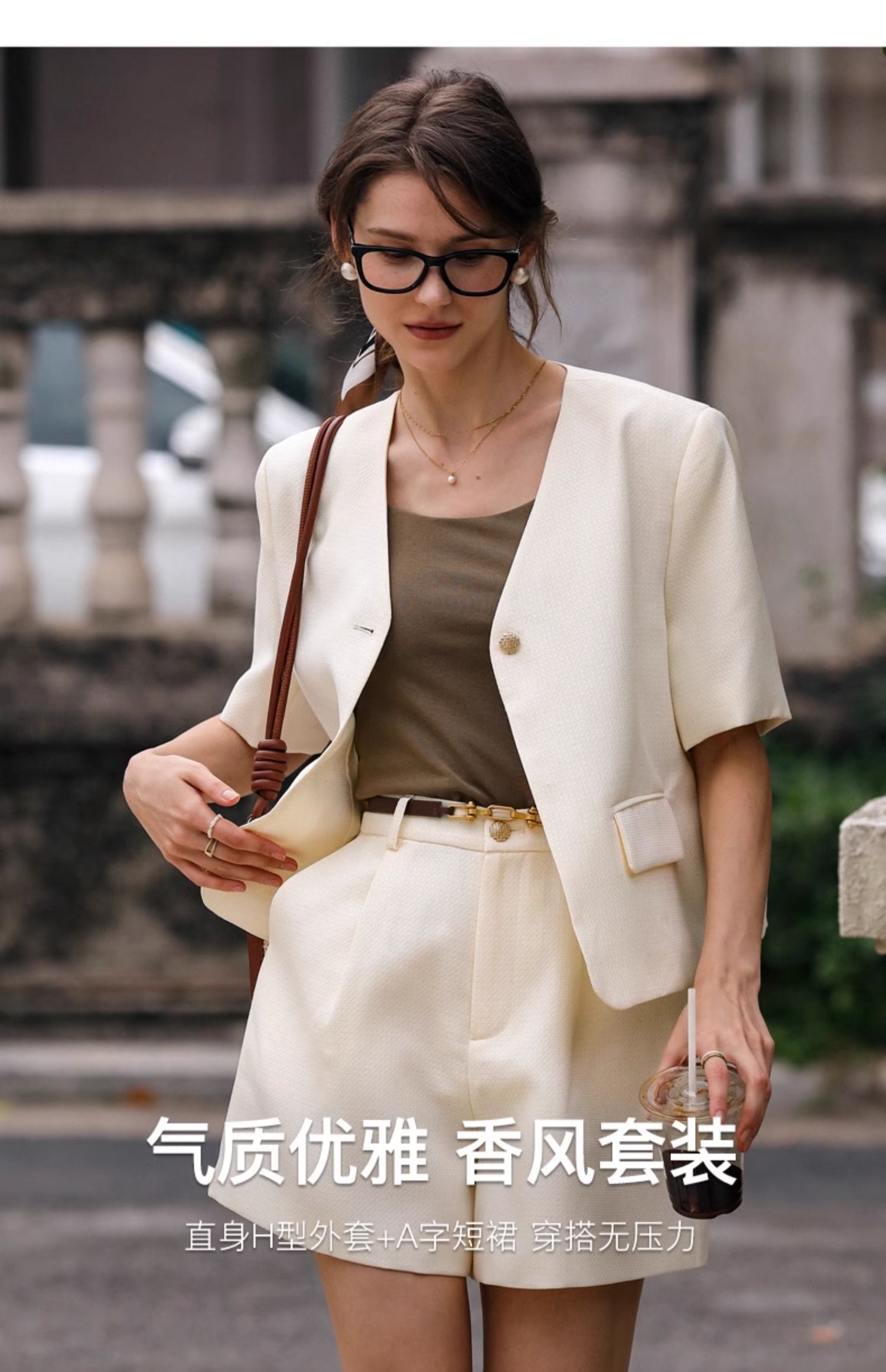 OLrain欧芮儿时尚套装女春季2024新款轻熟短袖西装高腰短裤两件套