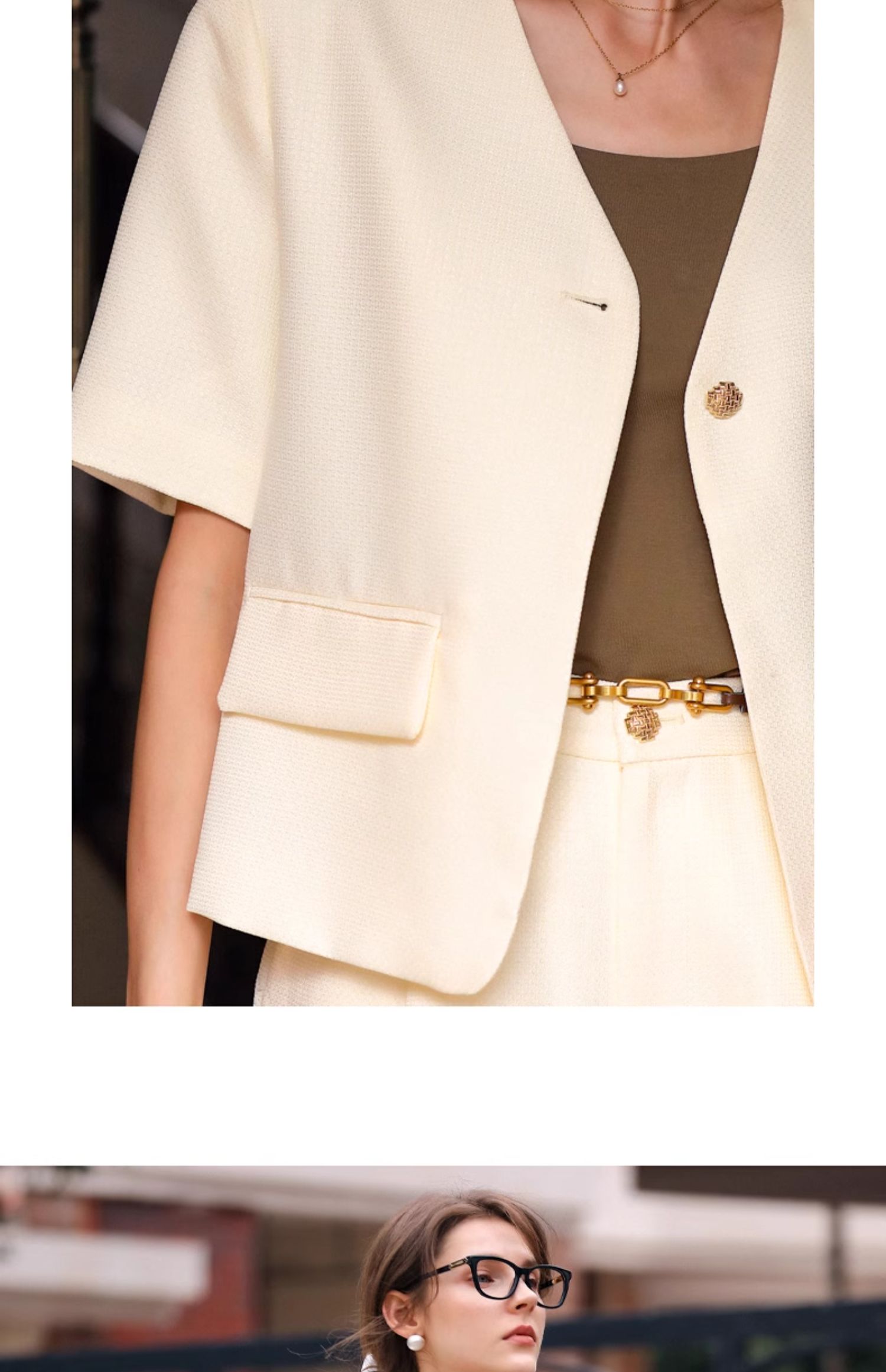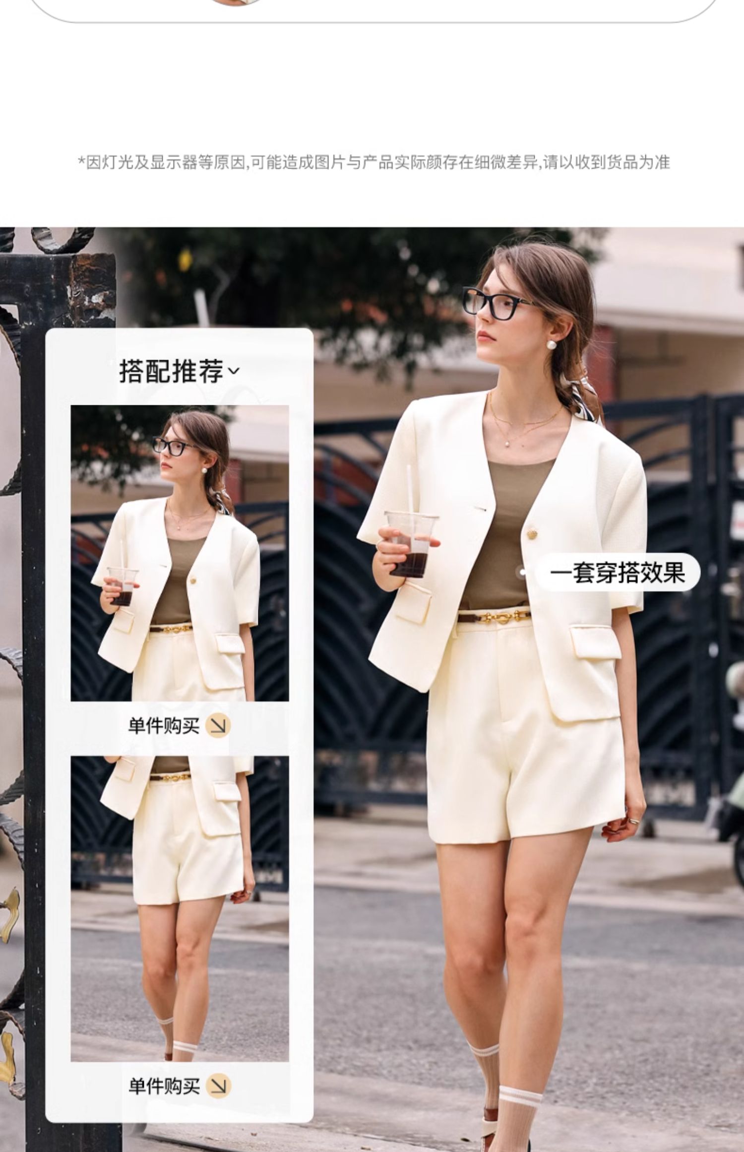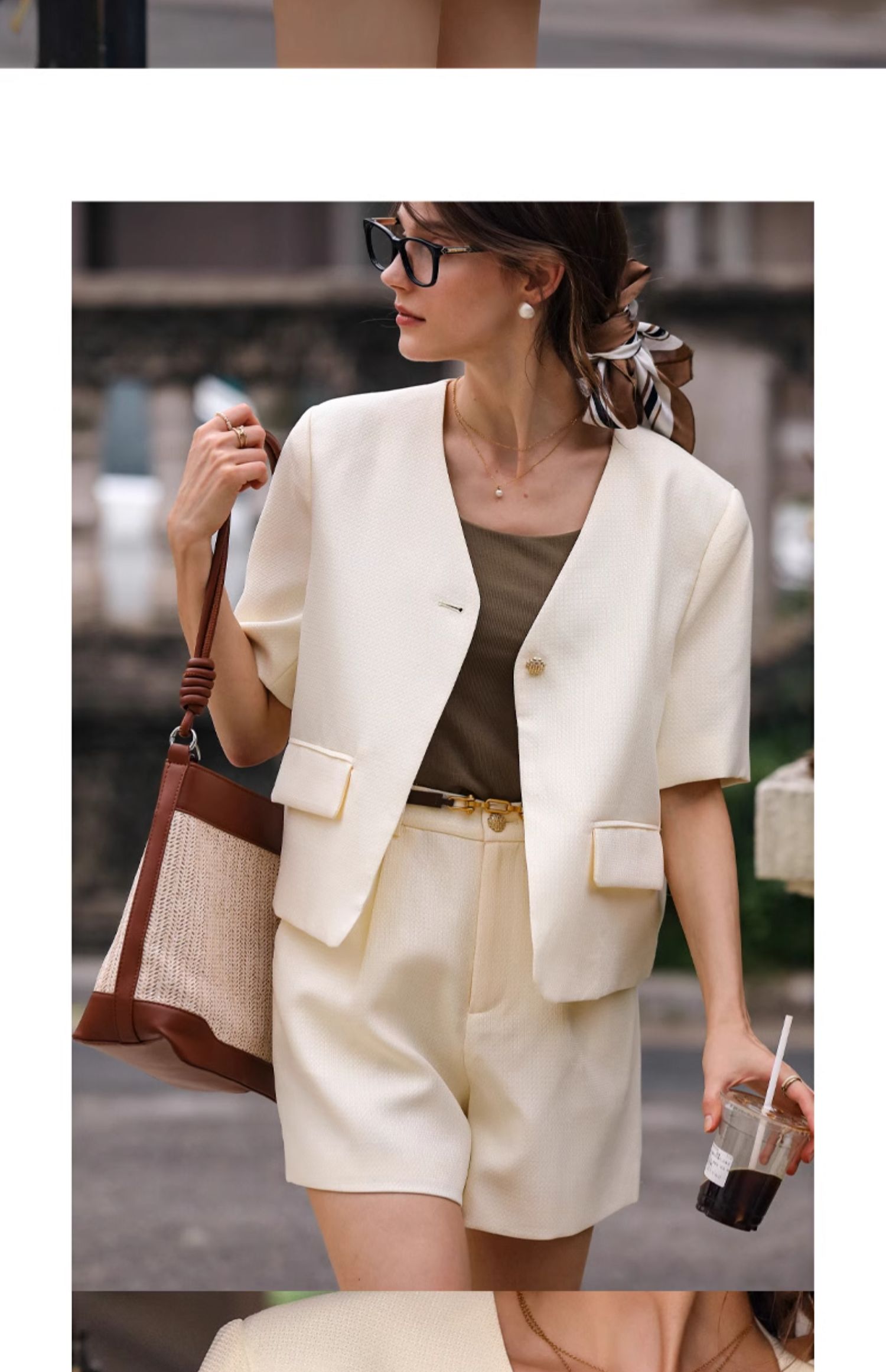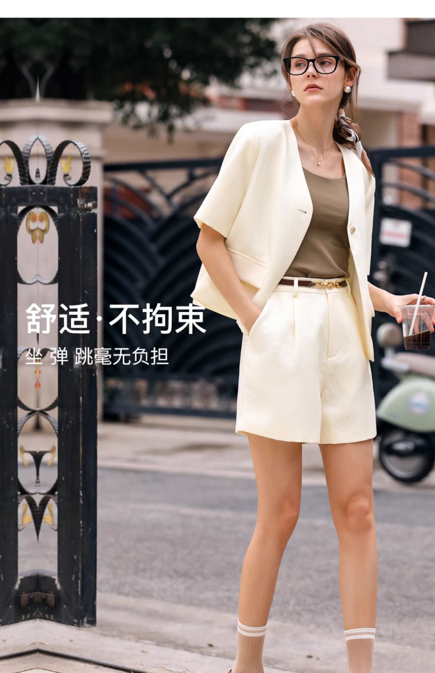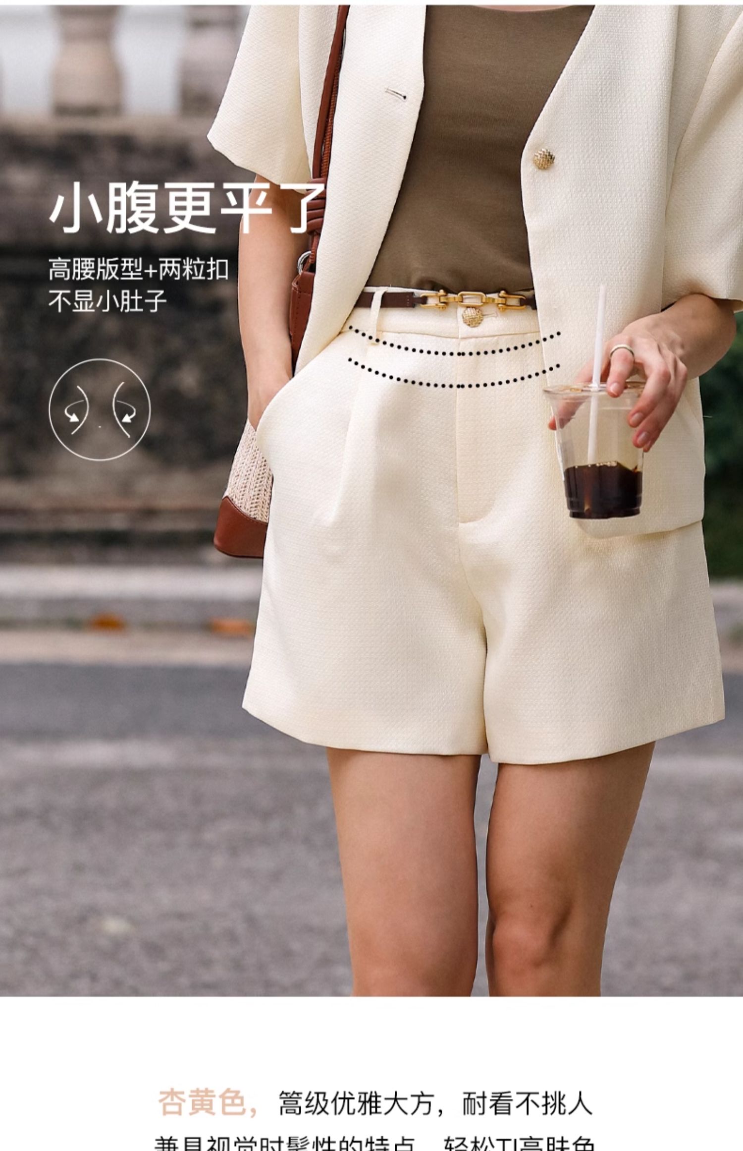 OLrain欧芮儿时尚套装女春季2024新款轻熟短袖西装高腰短裤两件套
