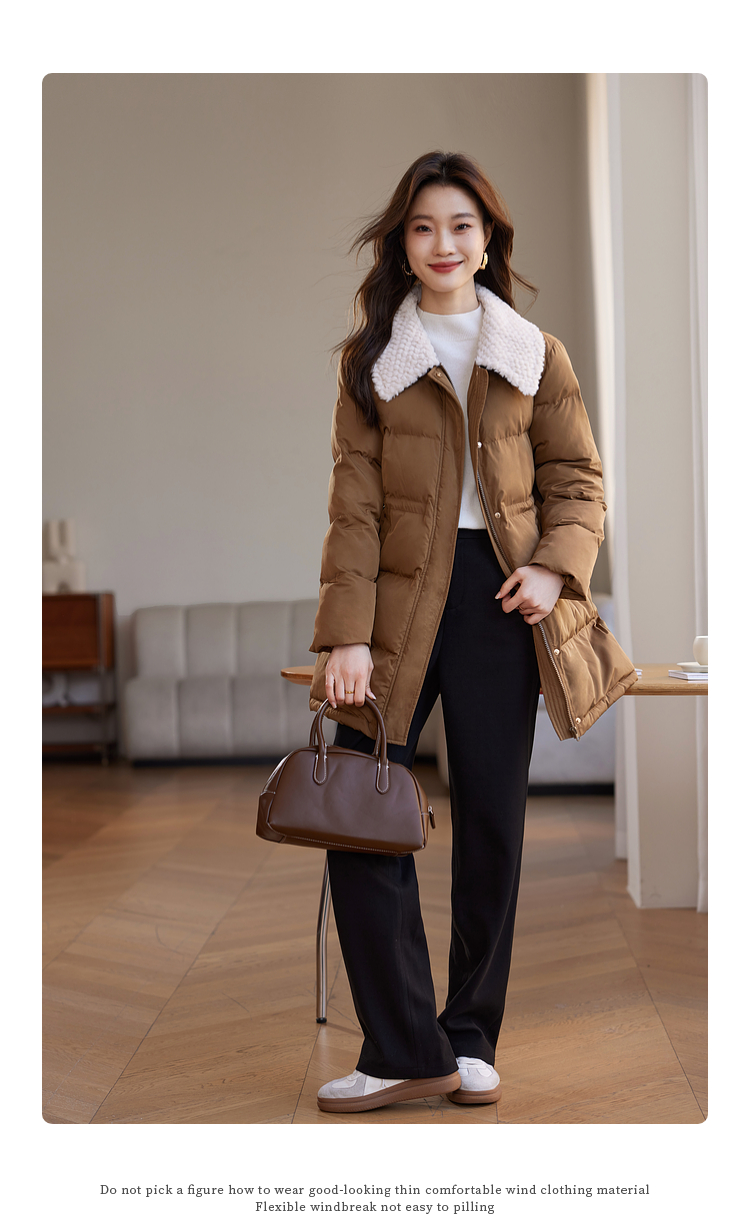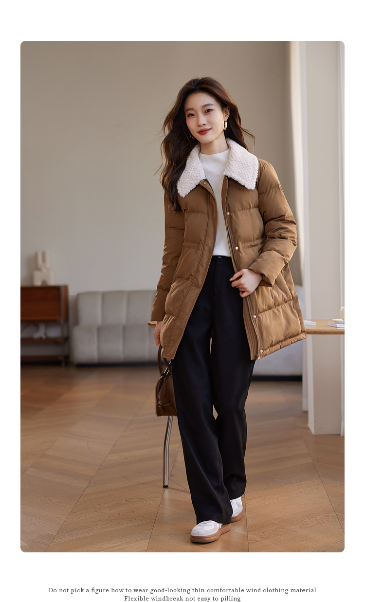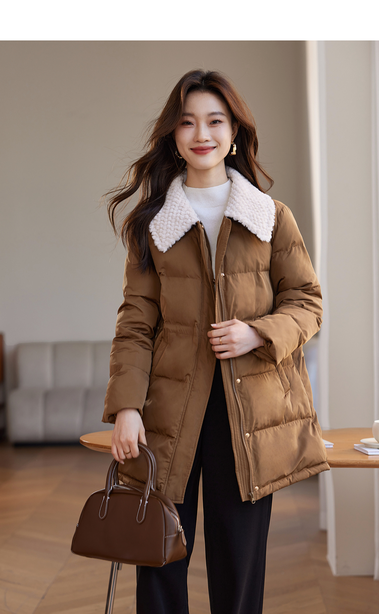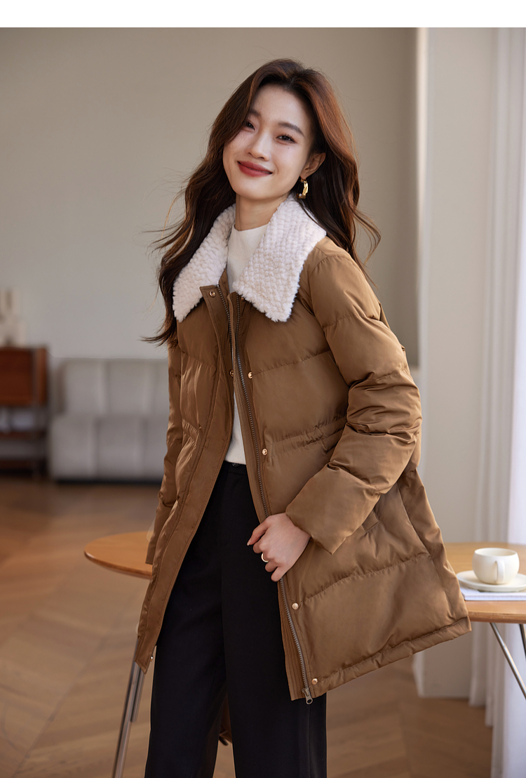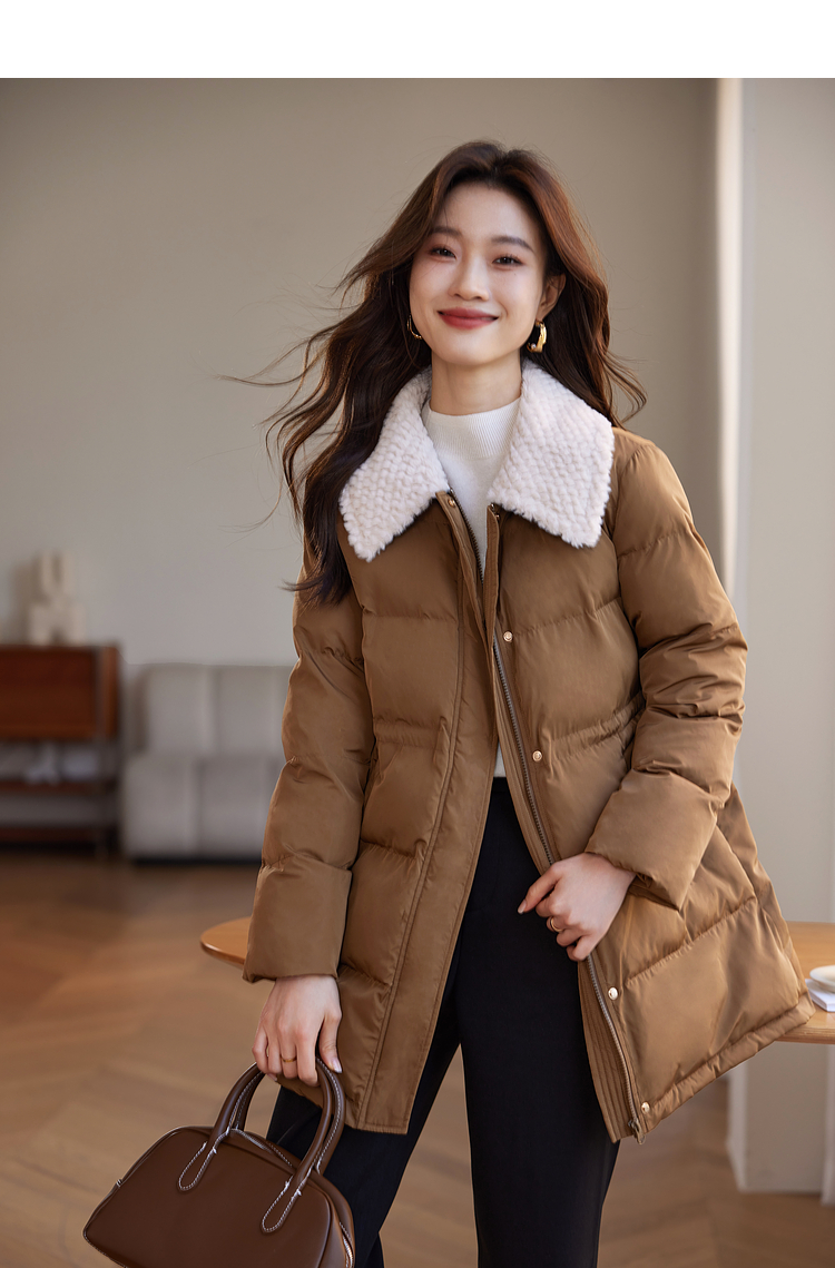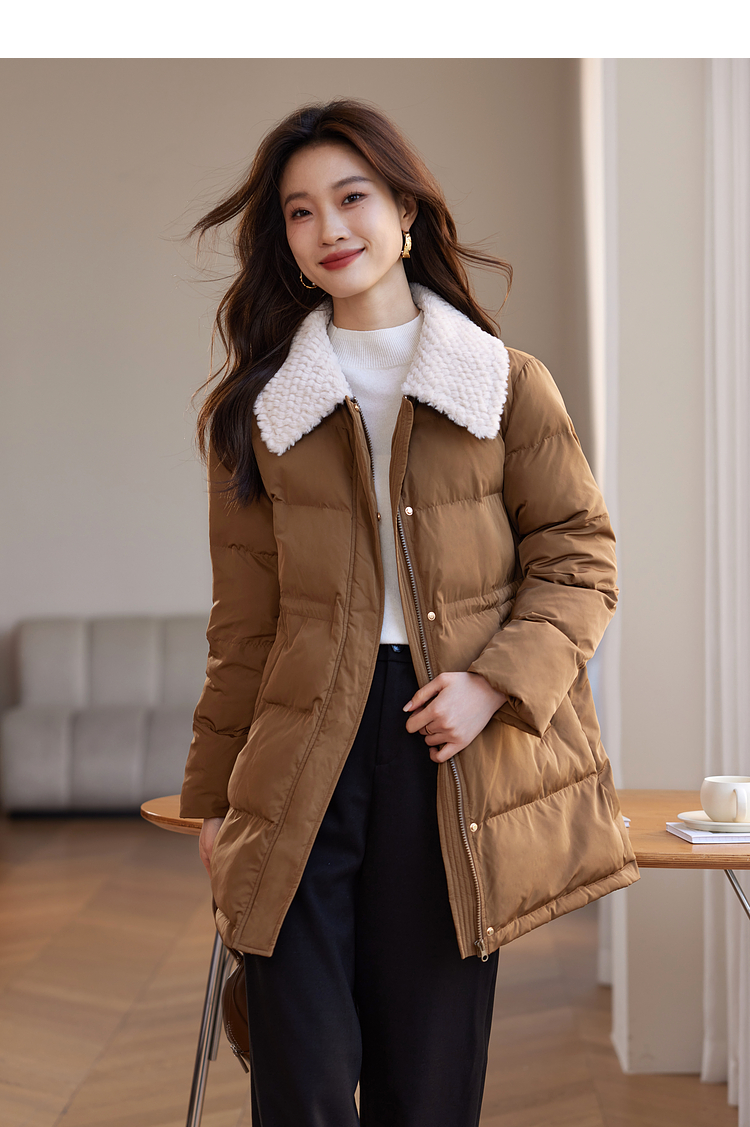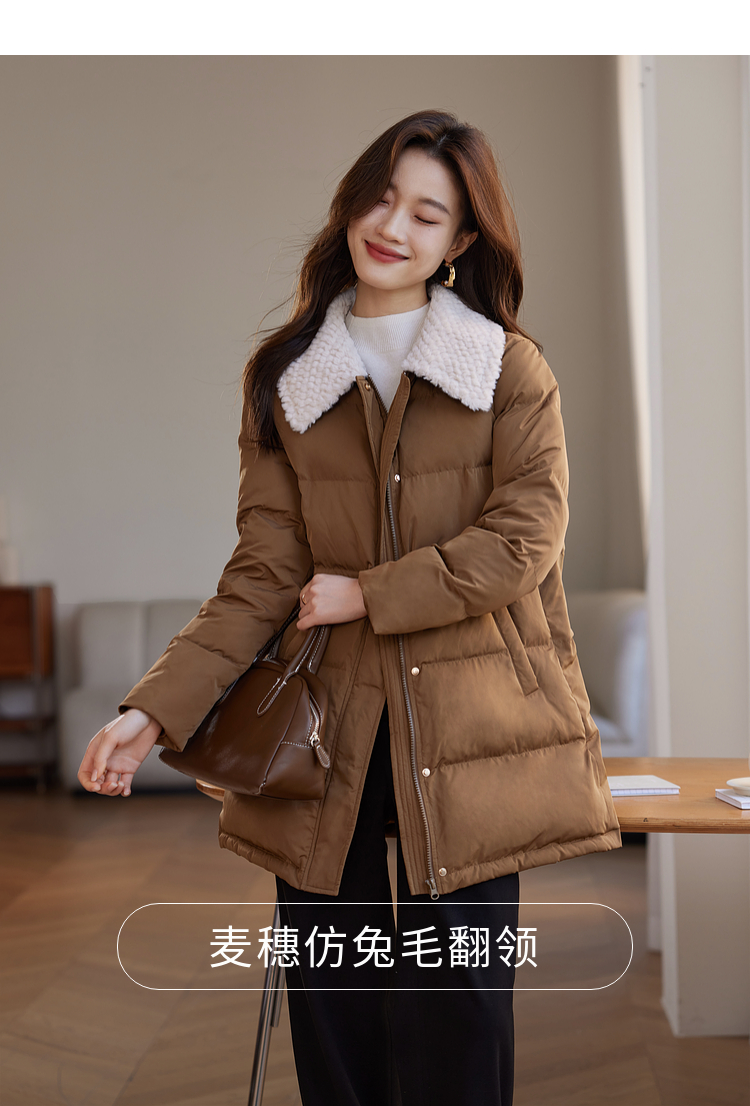 【年终特卖】熙世界红色羽绒棉服女中长款冬2025新款仿兔毛翻领保暖棉衣外套