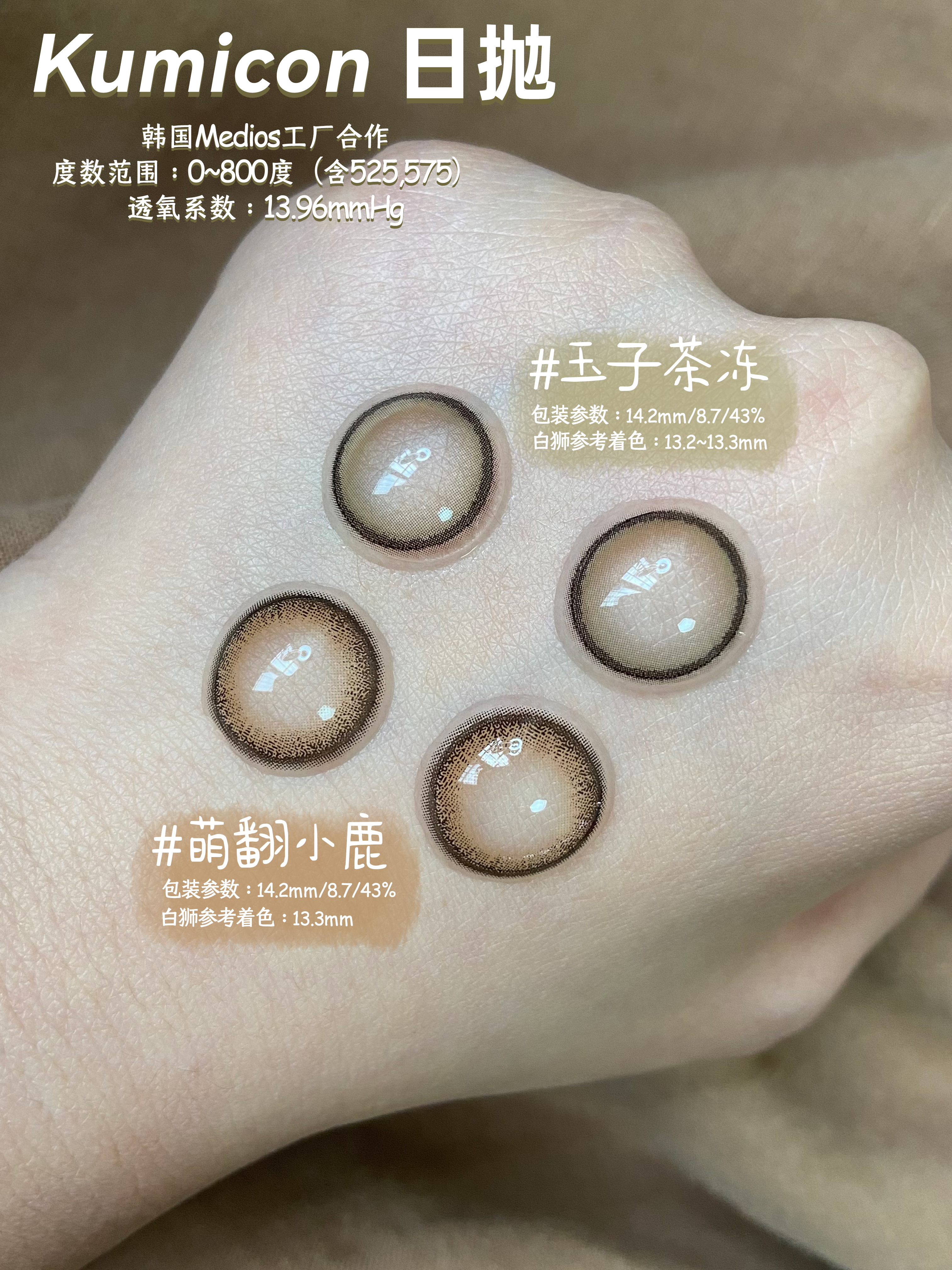 Kumicon旗下|萌翻小鹿·鹿鹿棕日抛款&玉子茶冻|14.2mm实际着色中等直径|日抛 一盒十片装