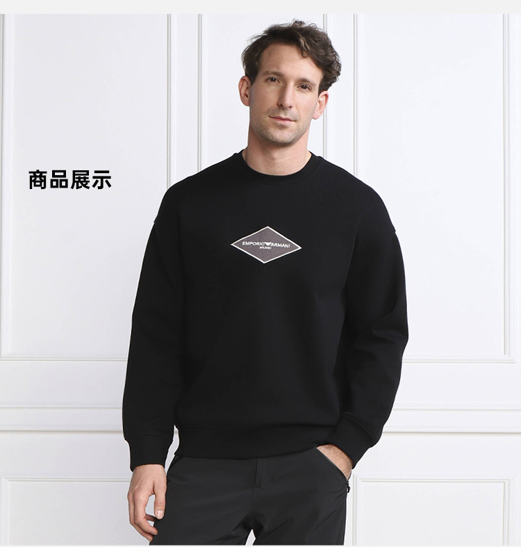 EMPORIO ARMANI 阿玛尼 男士棉质徽标印花圆领长袖卫衣 黑色 3R1MDD 1JHSZ 0999