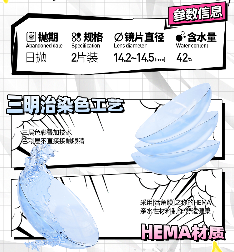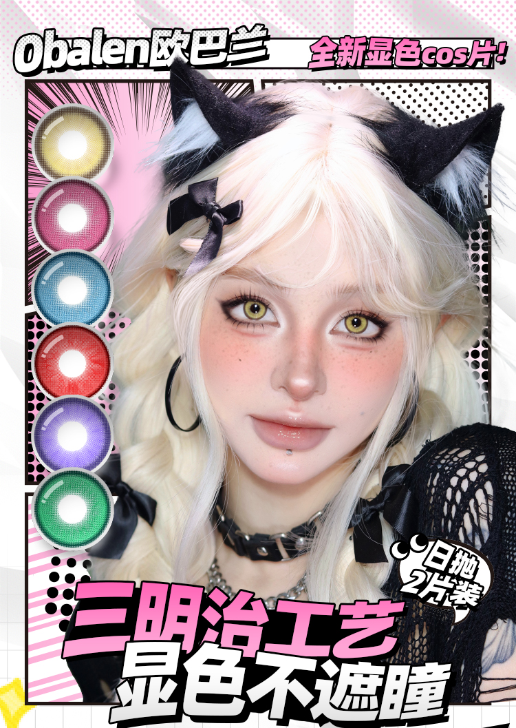 新品【显色娃娃COS系列日抛2片】Obalen欧巴兰漫展COS哪吒&敖丙同款显色隐形近视眼镜日抛2片装