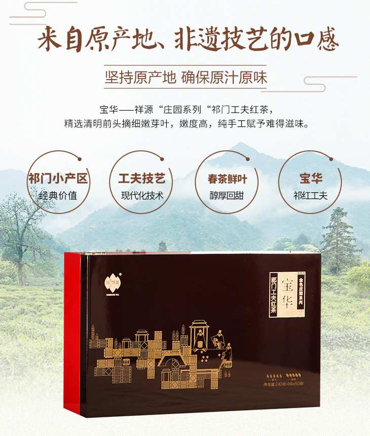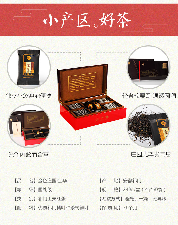 祥源茶 金色庄园系列 宝华 祁门工夫红茶 礼盒装240g