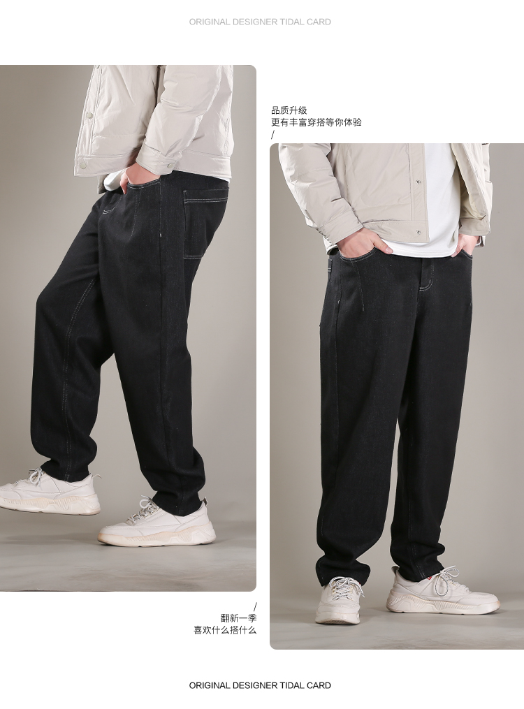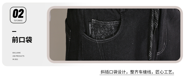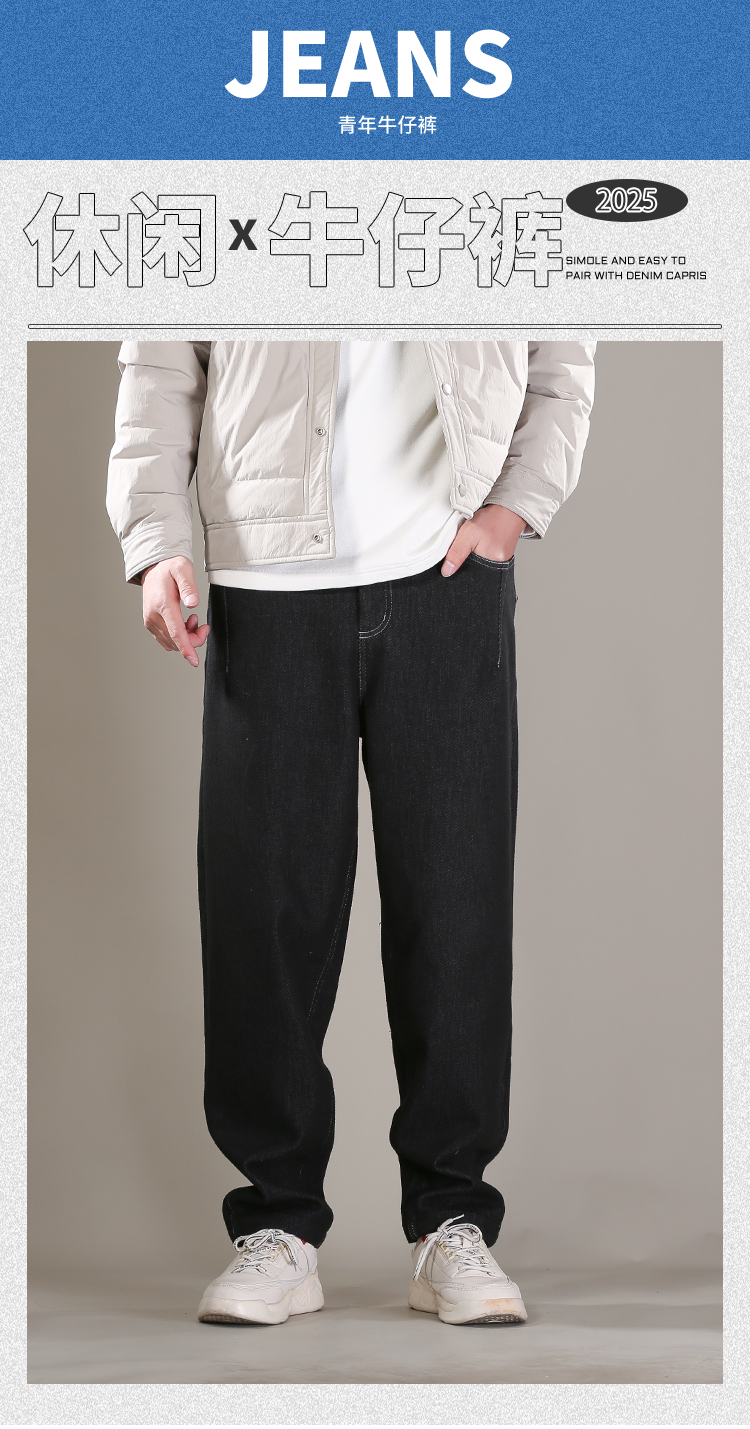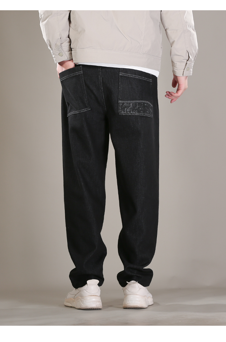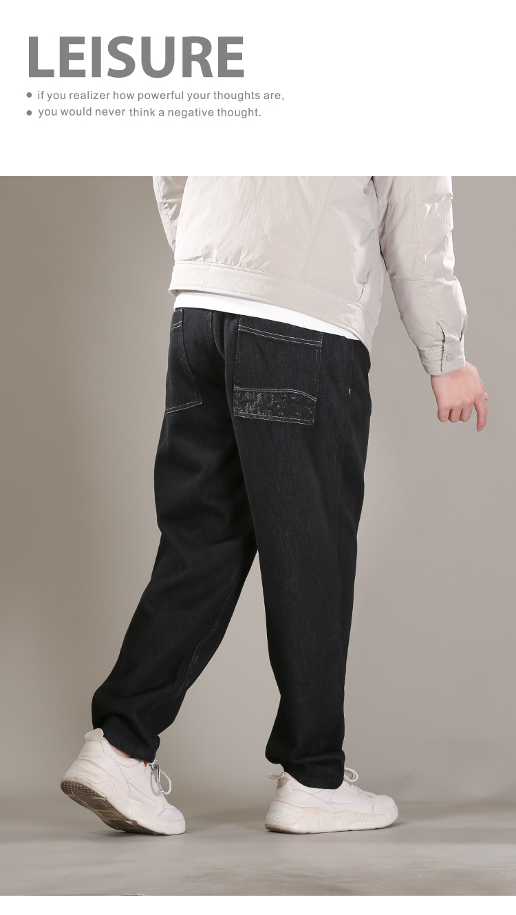 DRONKOO 2025 抽绳半松紧腰表袋右后袋拼花布底磨毛普洗厚牛仔长裤
