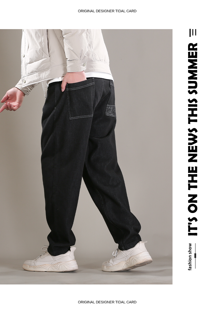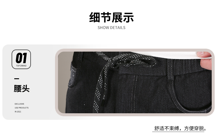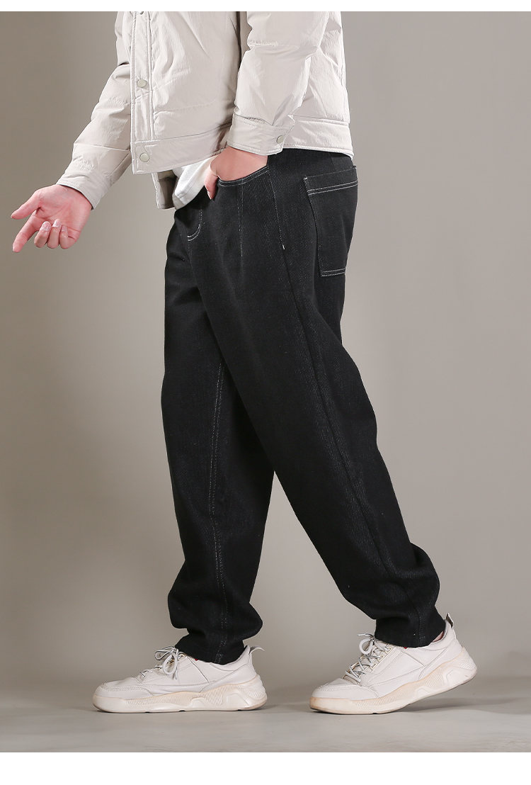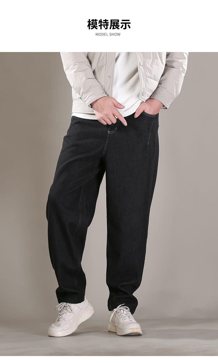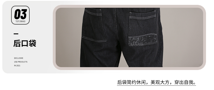 DRONKOO 2025 抽绳半松紧腰表袋右后袋拼花布底磨毛普洗厚牛仔长裤