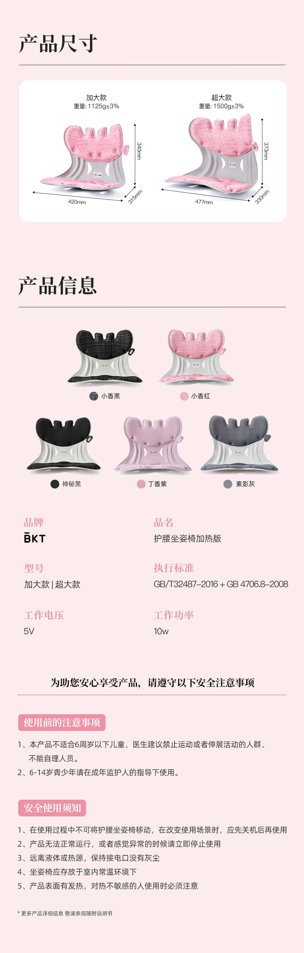 【杨幂代言】BKT护腰加热版温感护腰居家办公久坐坐姿矫正器 30A
