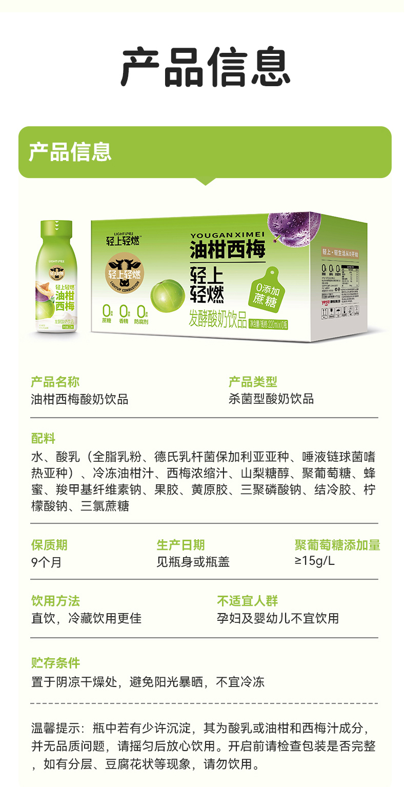 轻上 油柑西梅酸奶常温发酵酸奶饮品220ml*10瓶 0添加蔗糖 富含多重营养 48小时发货