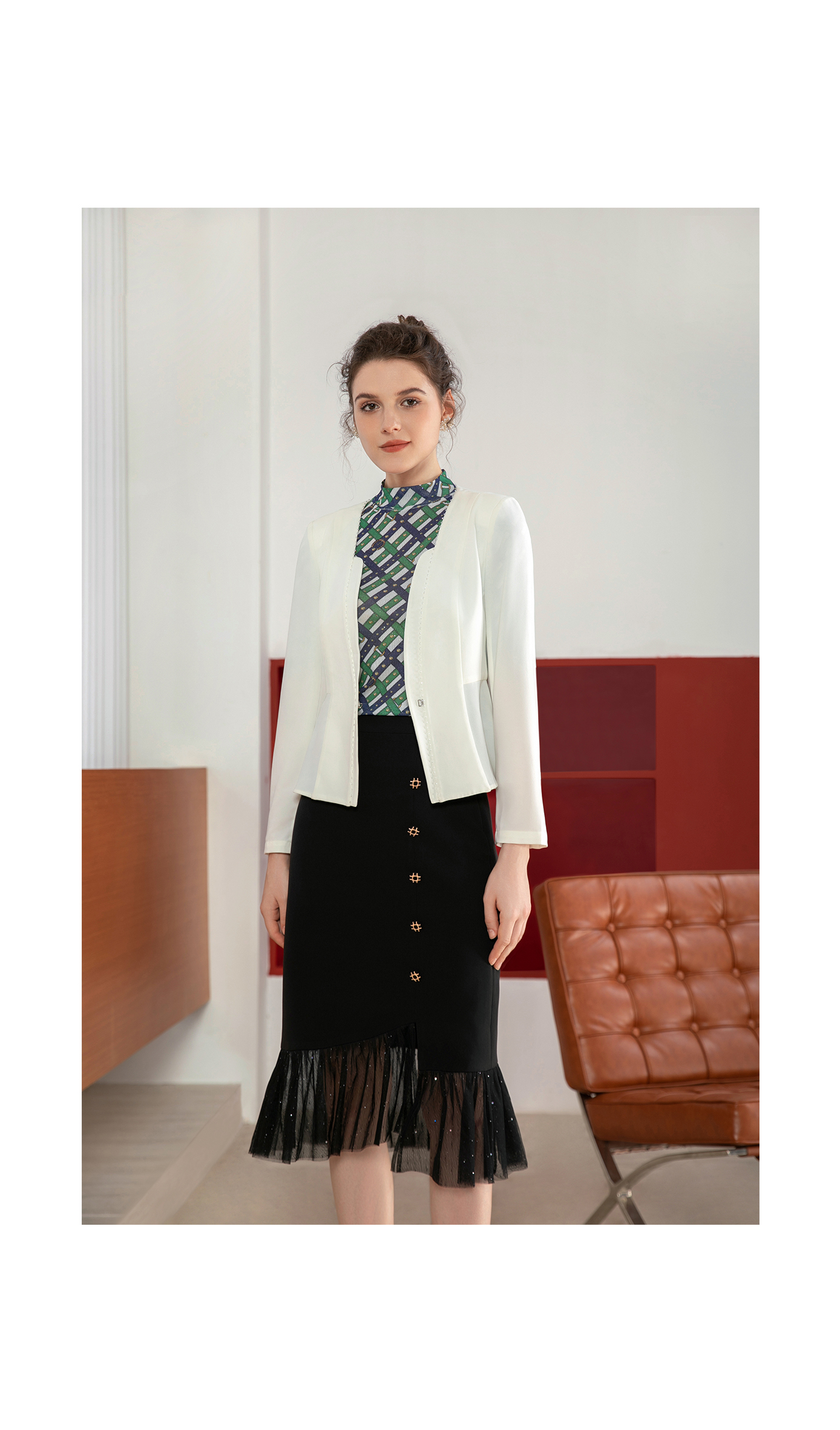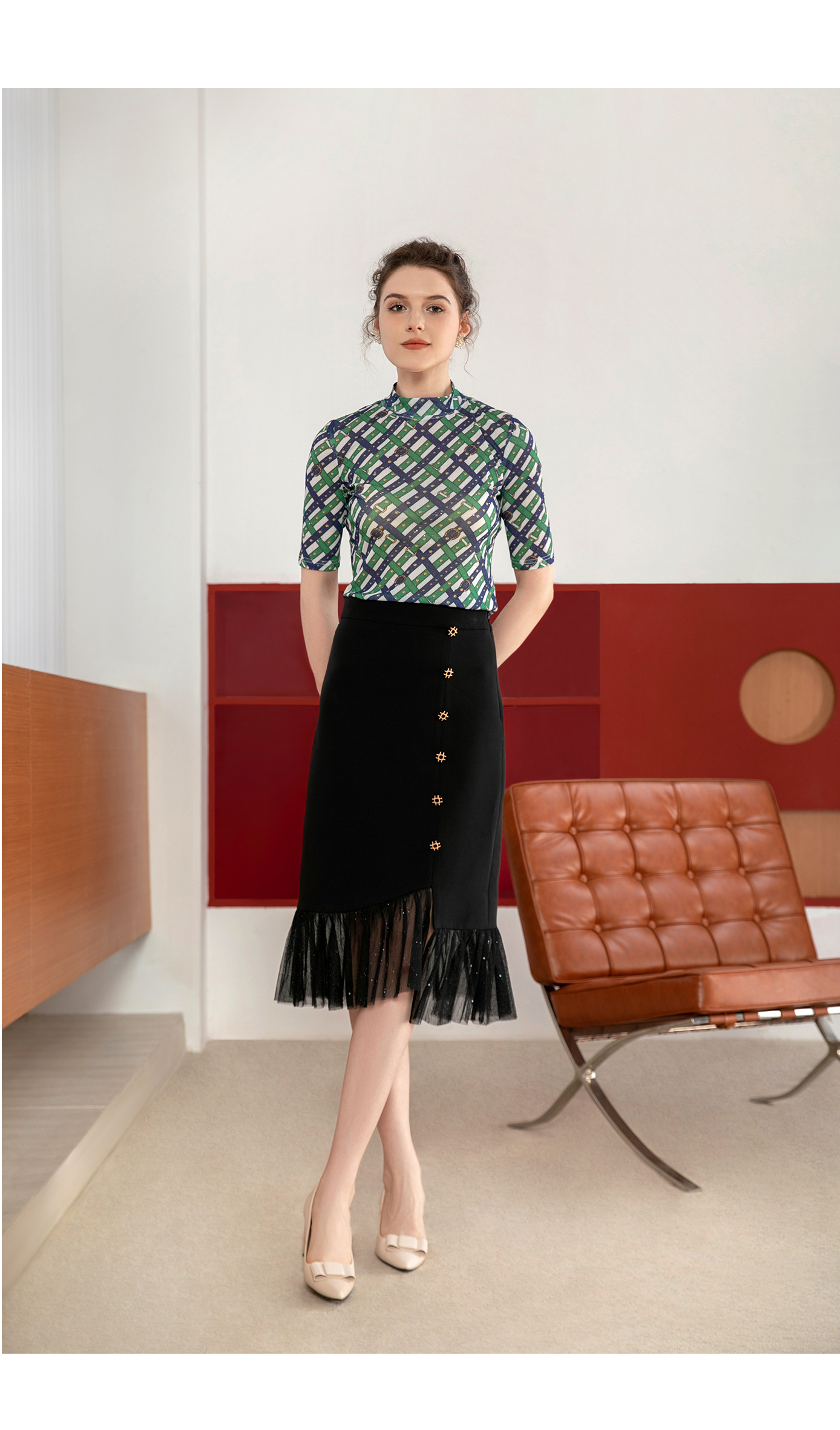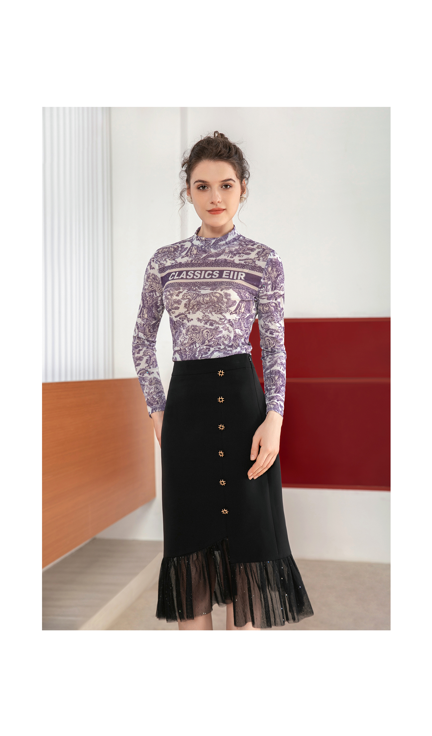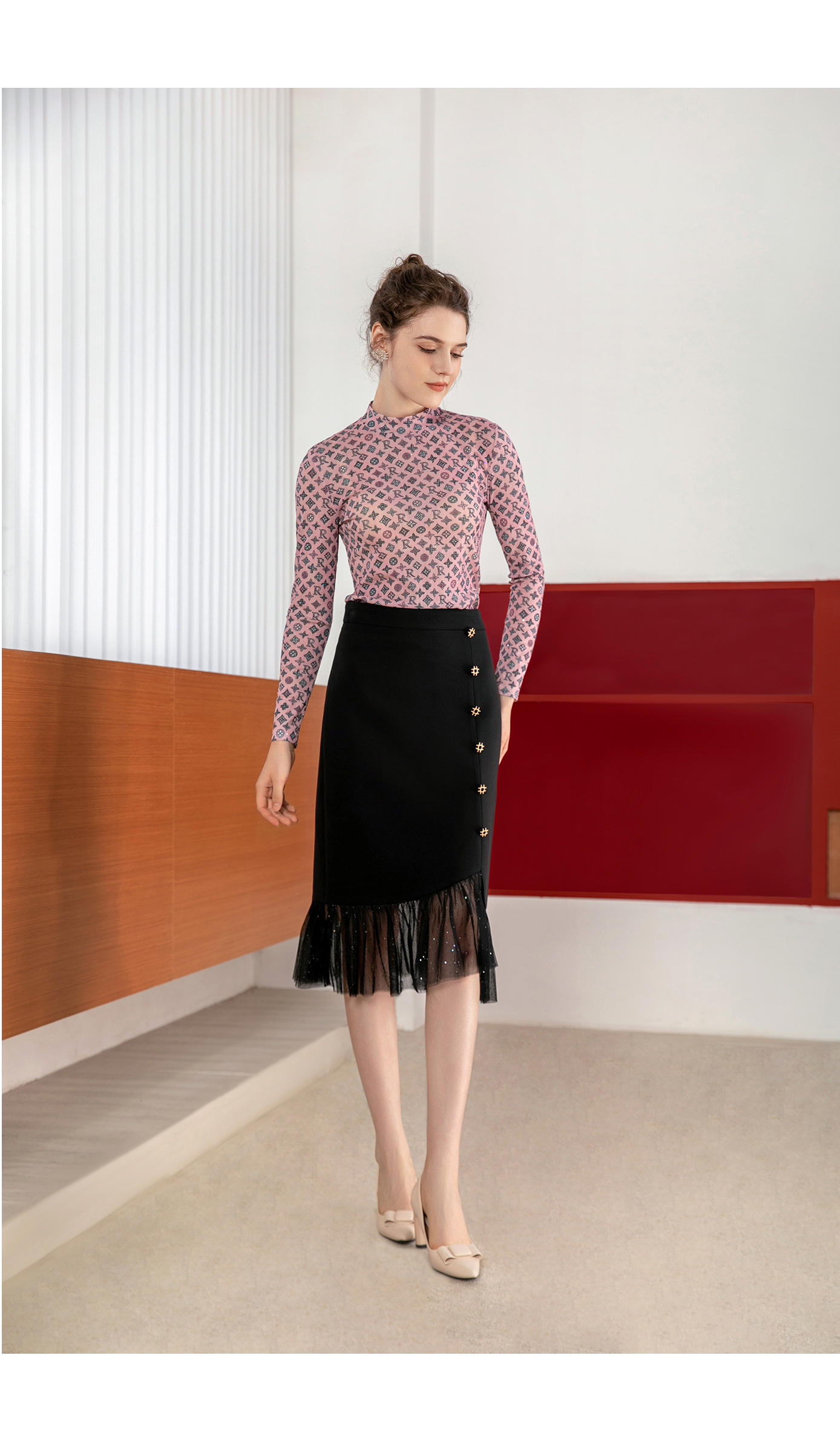 司歌弹力鱼尾裙半裙拼接网纱职业C901283X