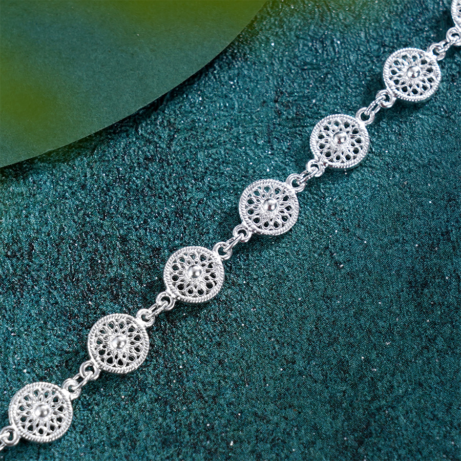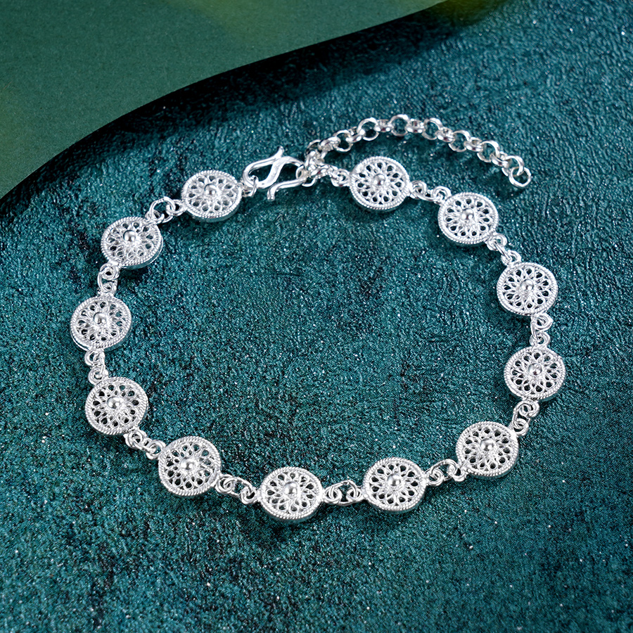 【寓意】:巧妙运用银花丝工艺,编织出经典的圆环造型。繁花锦簇,一丝一缕,恣意盛放,清雅又高贵。