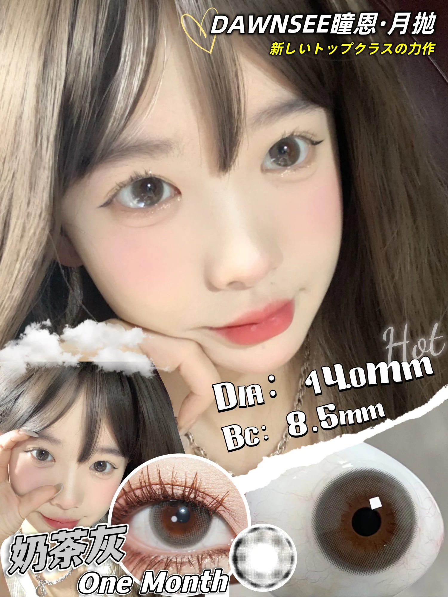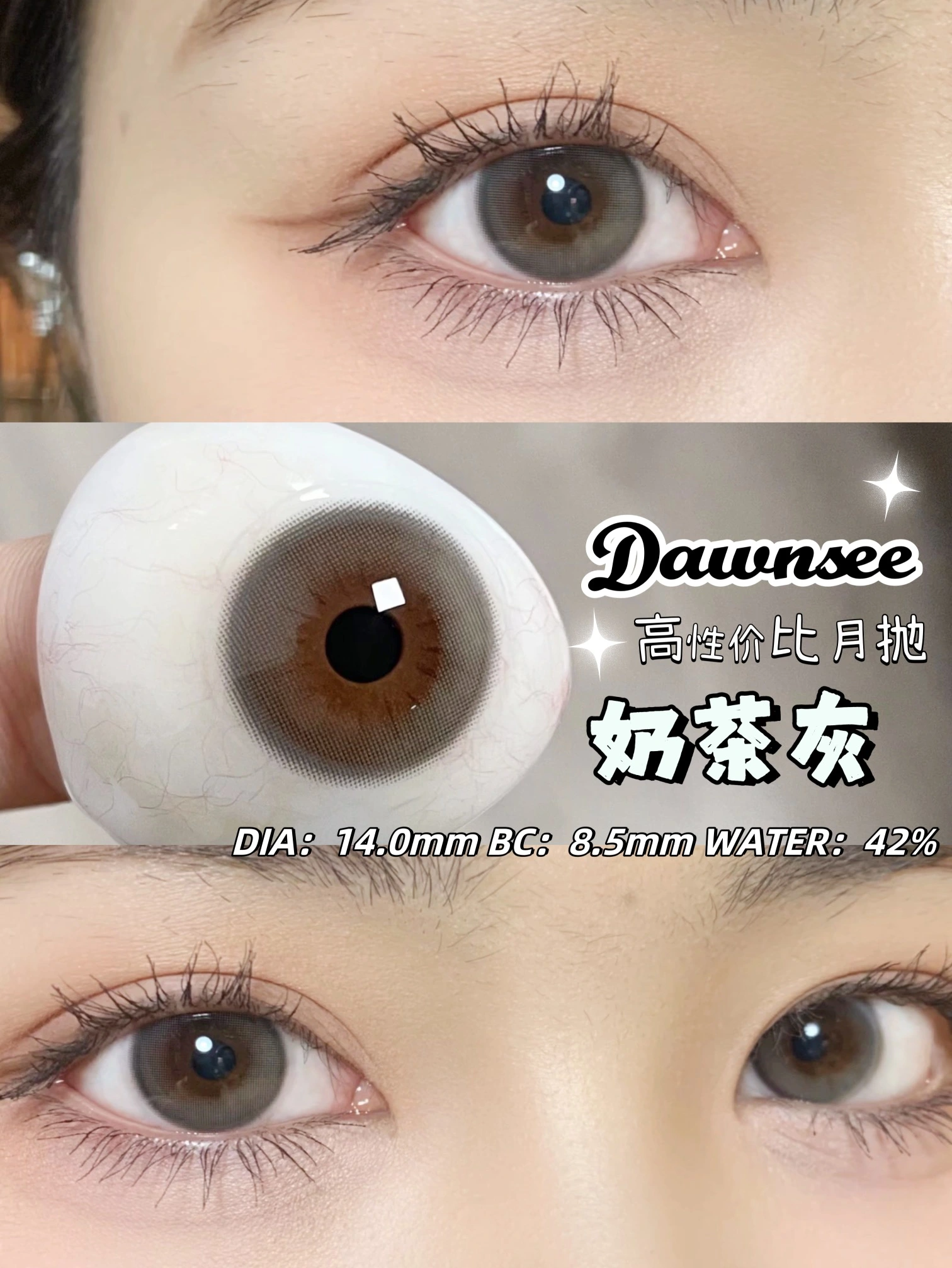 正品月抛 | Dawnsee瞳恩系列奶茶灰美瞳 | 直径14.0着色直径13.3 | 新国货