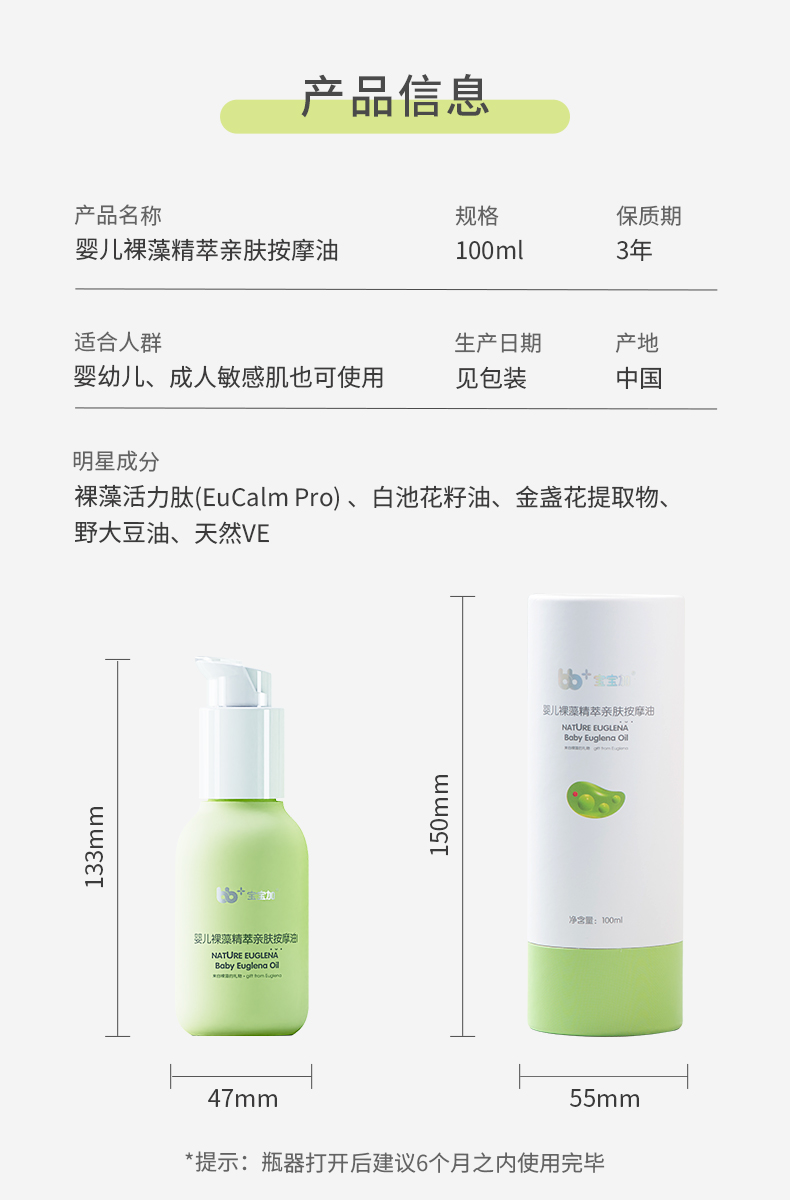 宝宝加 婴儿 裸藻精萃 亲肤按摩油 100ml