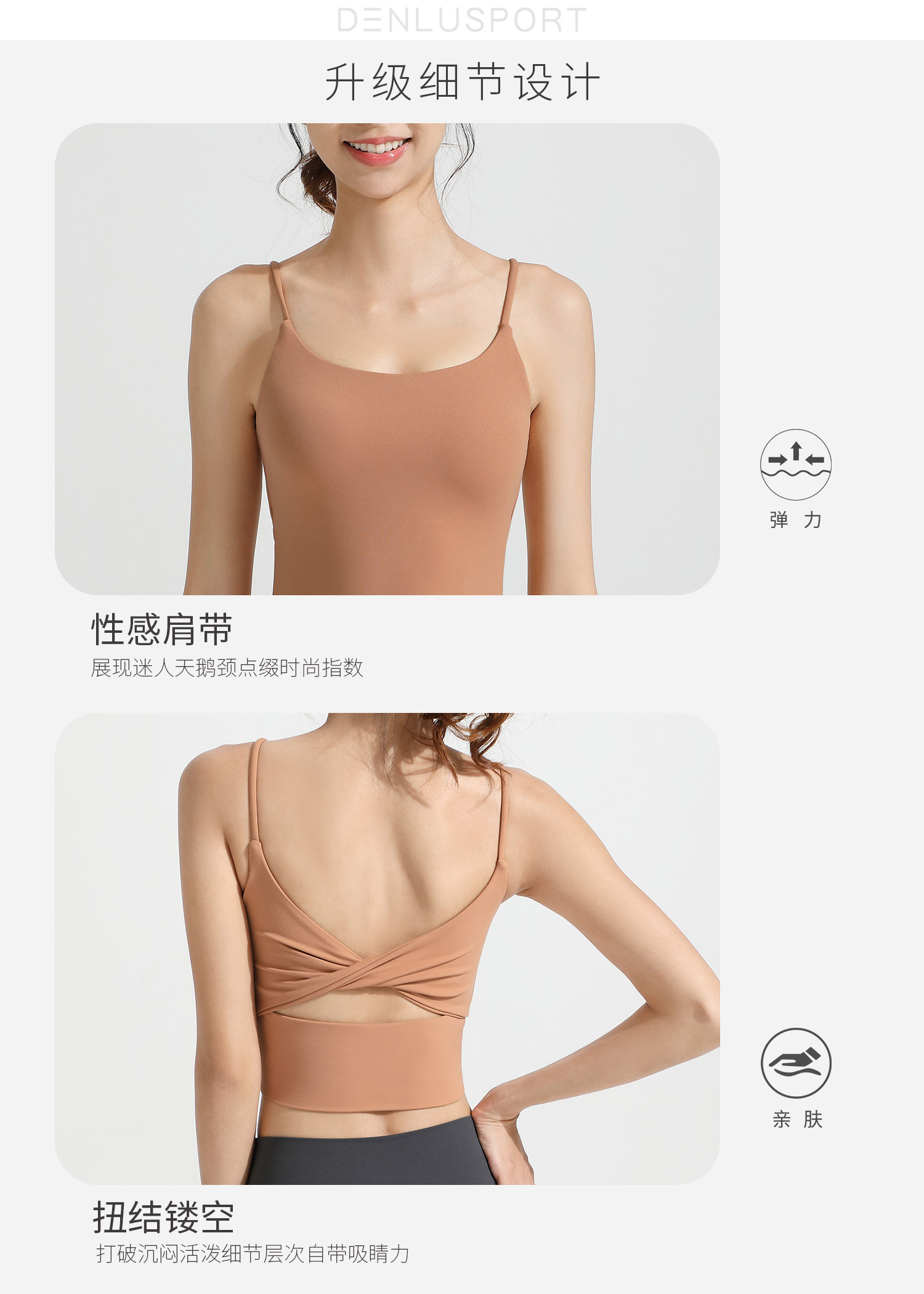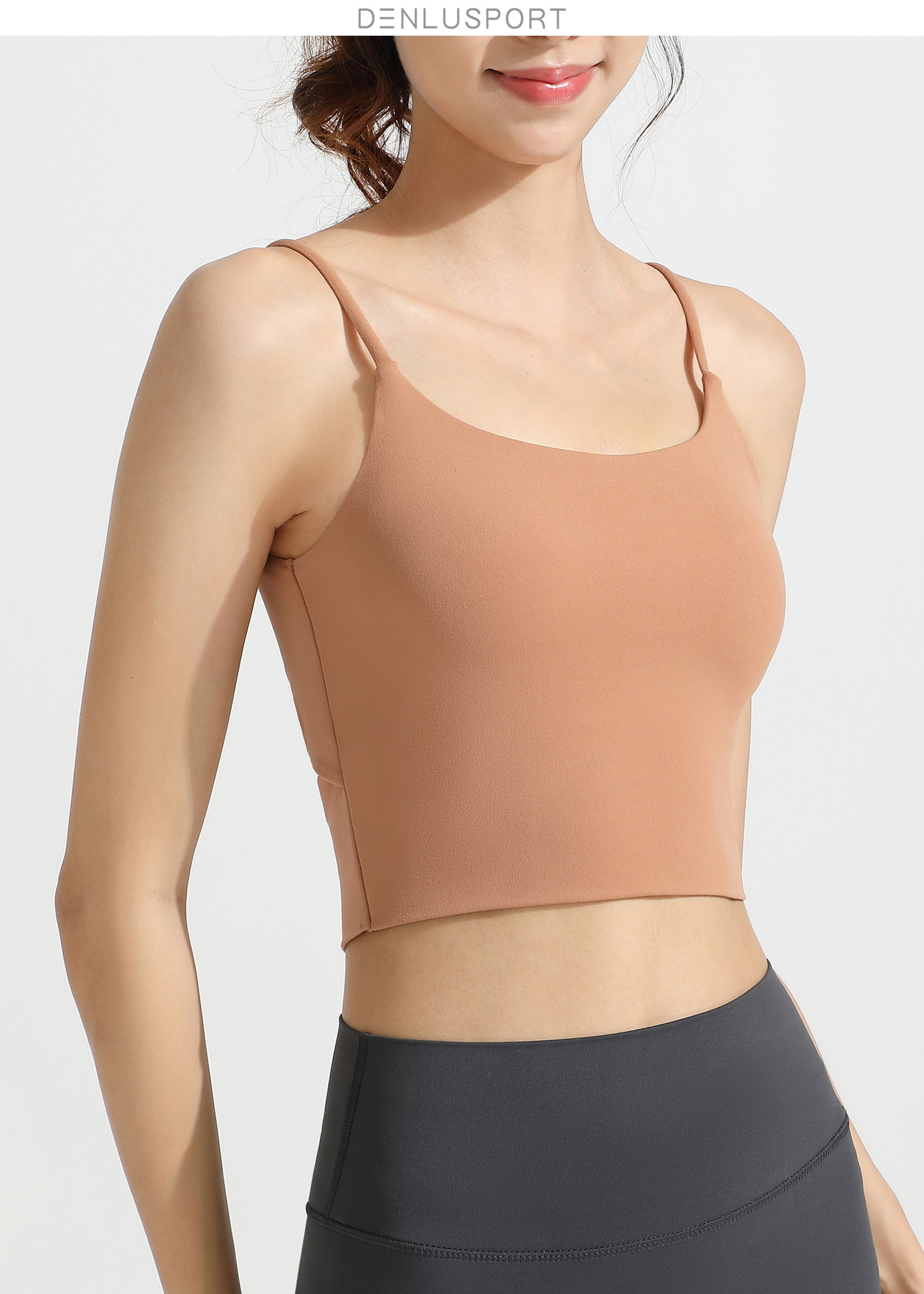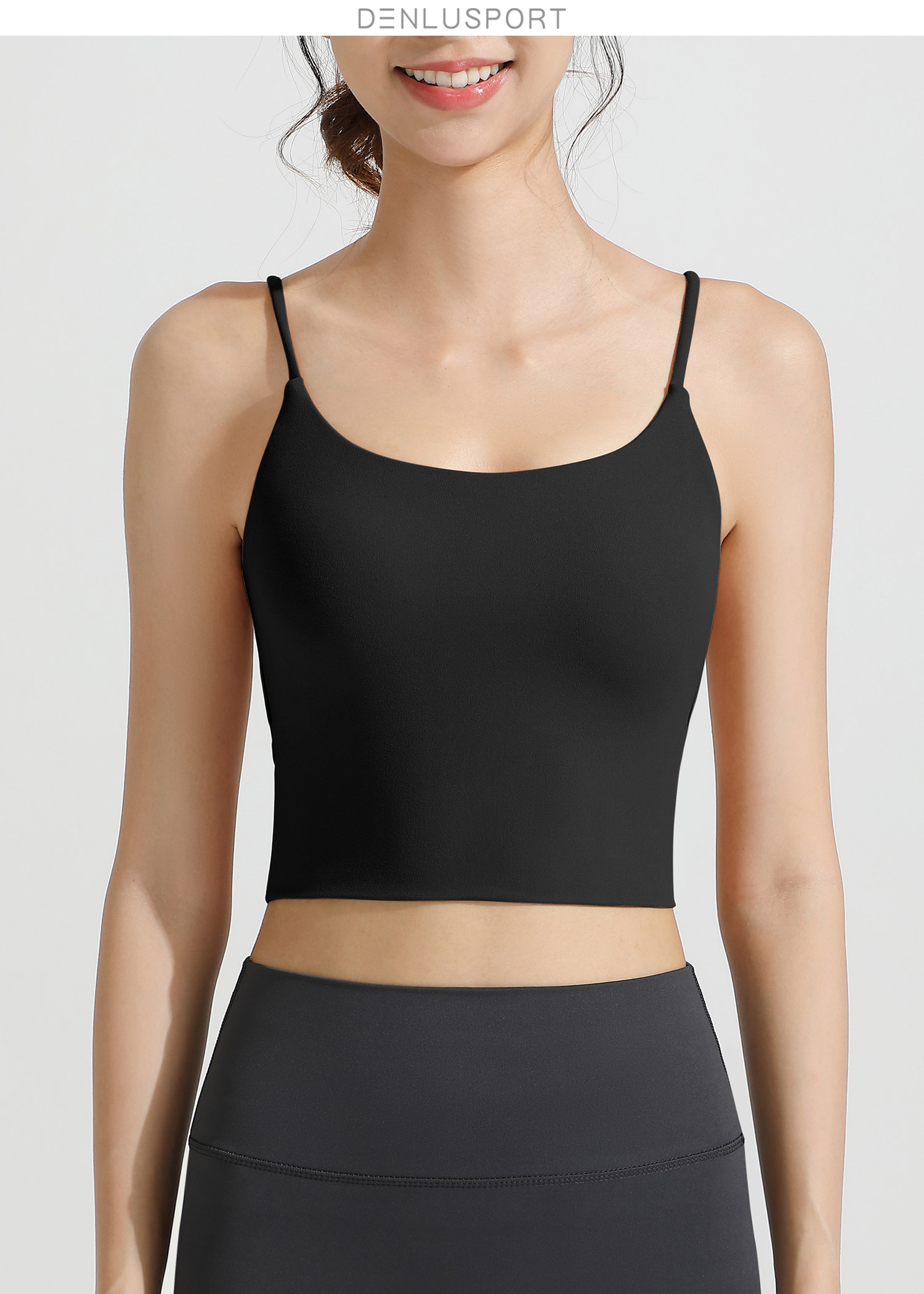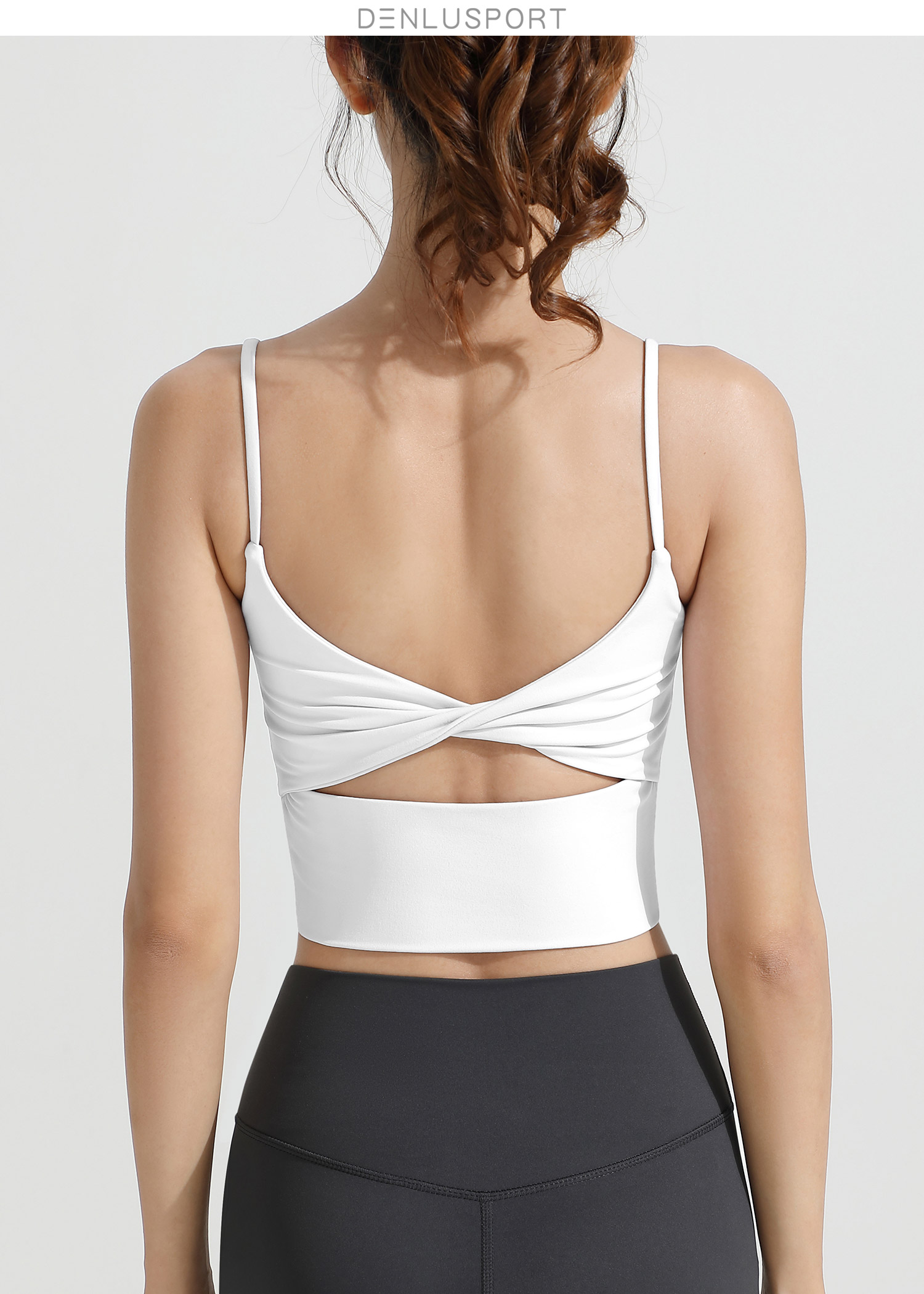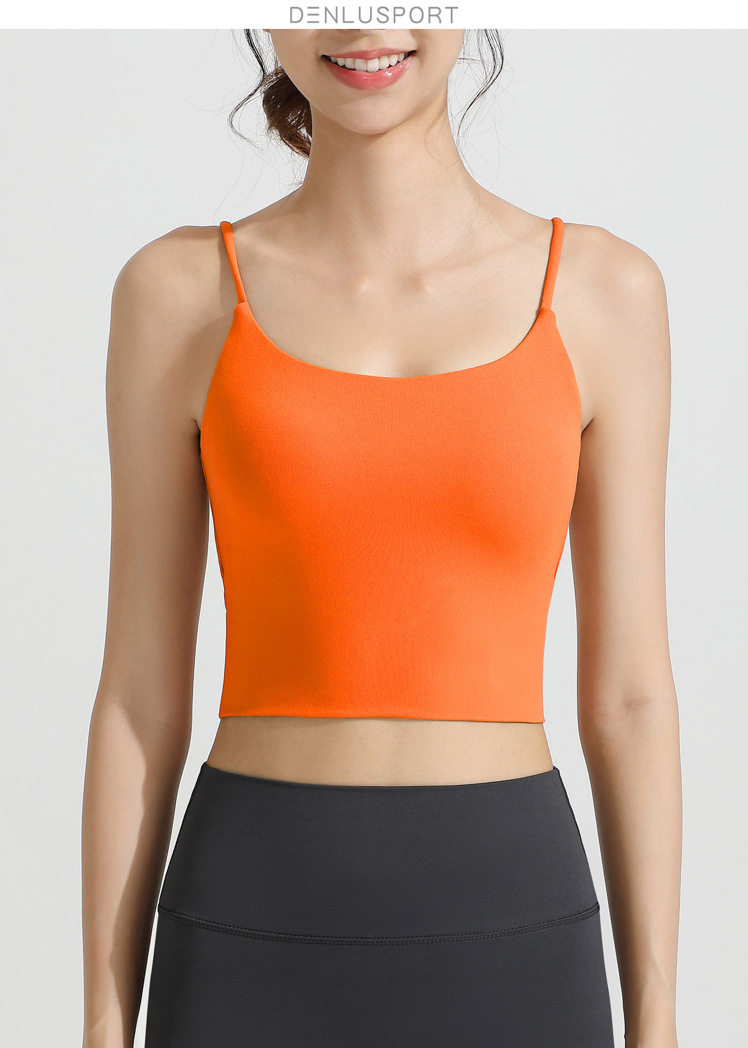 LULU同款美背性感细肩带一体式固定胸垫运动文胸 DY66195