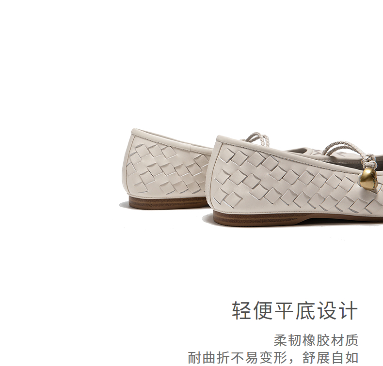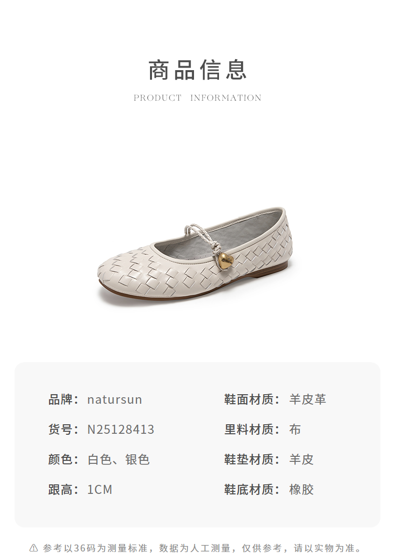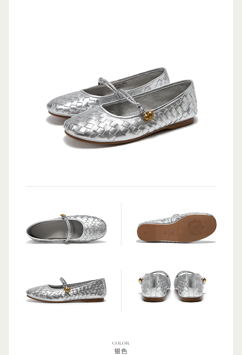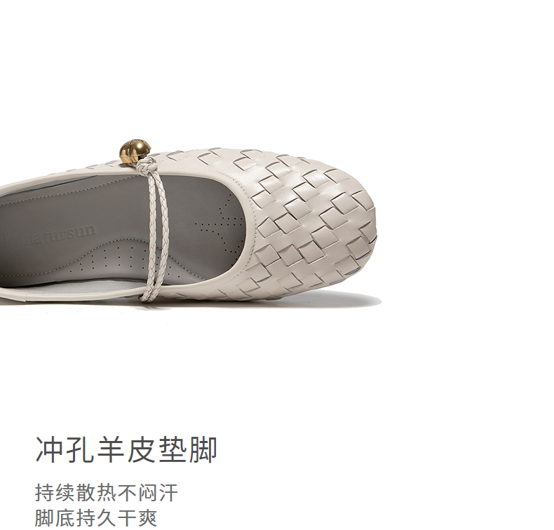 natursun优雅玛丽珍鞋女羊皮复古编织鞋平底舒适单鞋N25128413