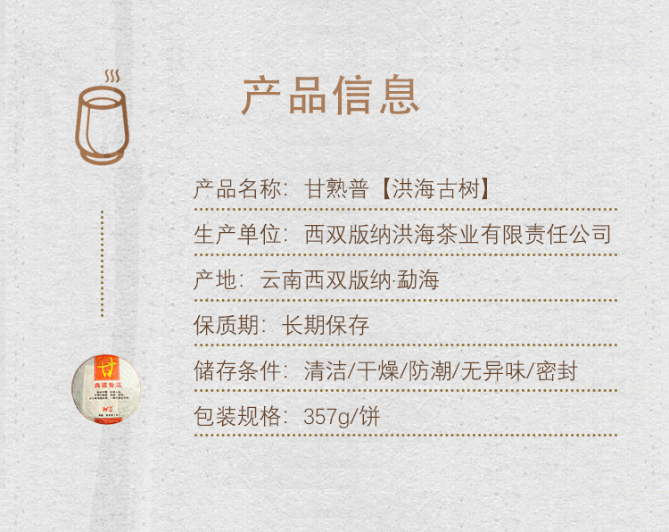 熟普 | 洪海古树2009年 甘熟普 古树熟普357g/饼