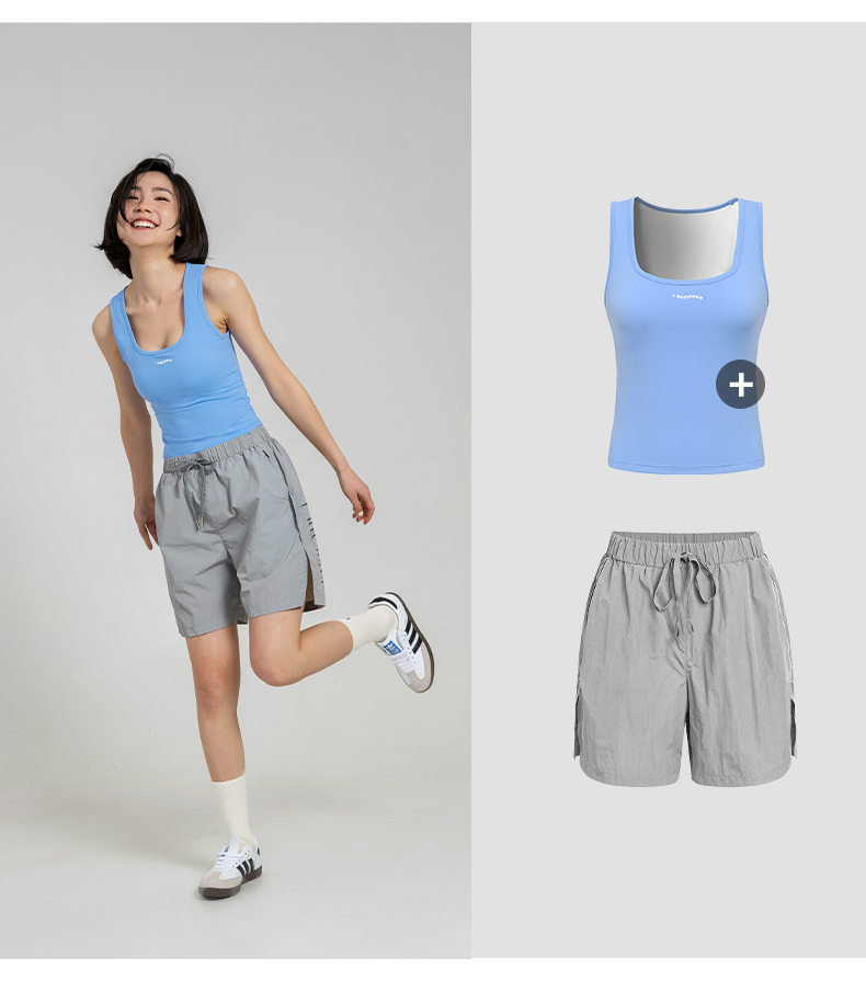 【螺纹肌理】带胸垫一体杯背心假两件运动无袖上衣