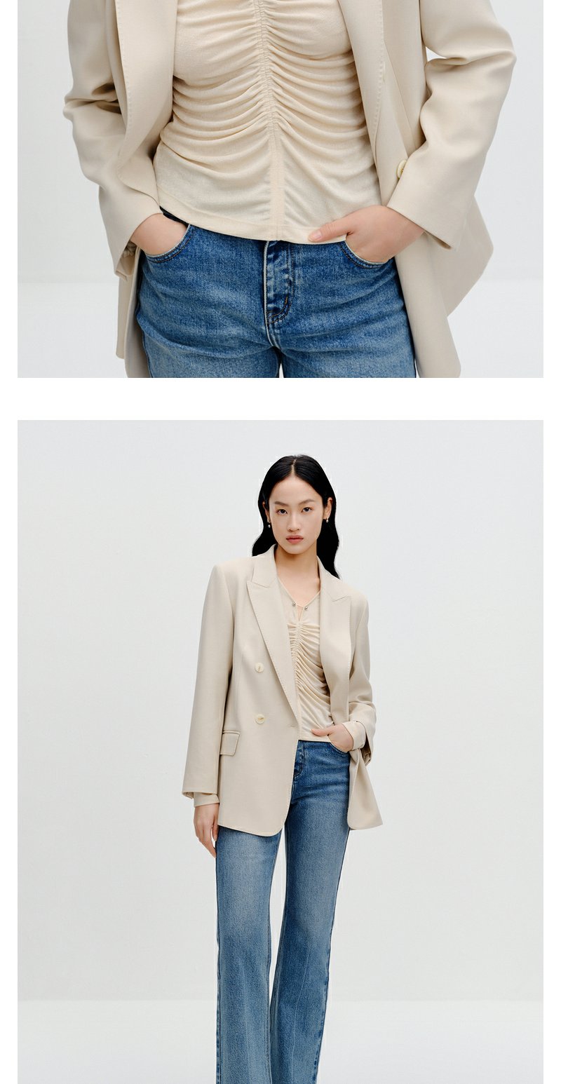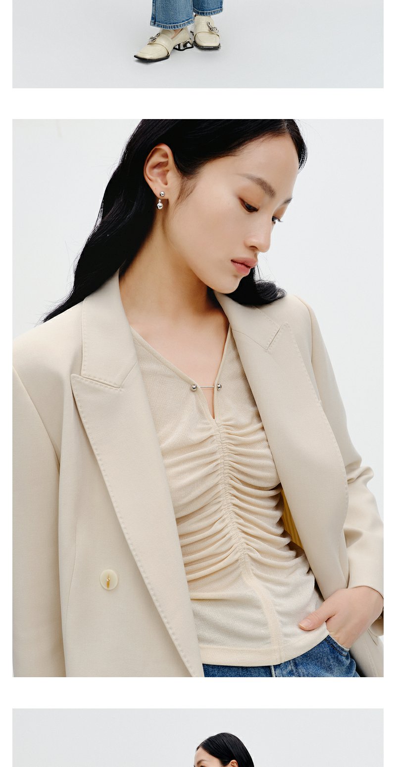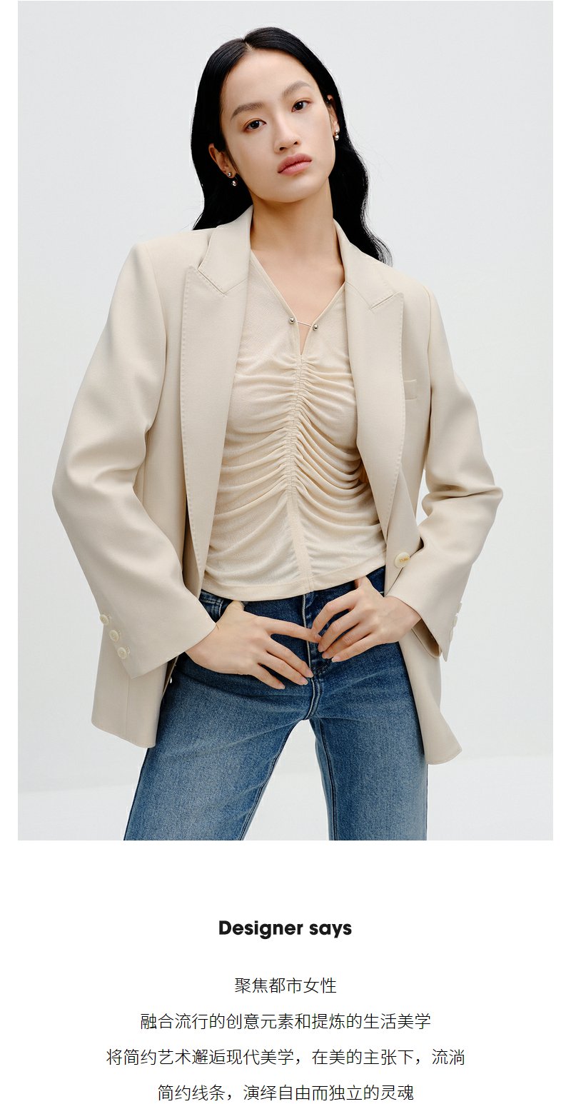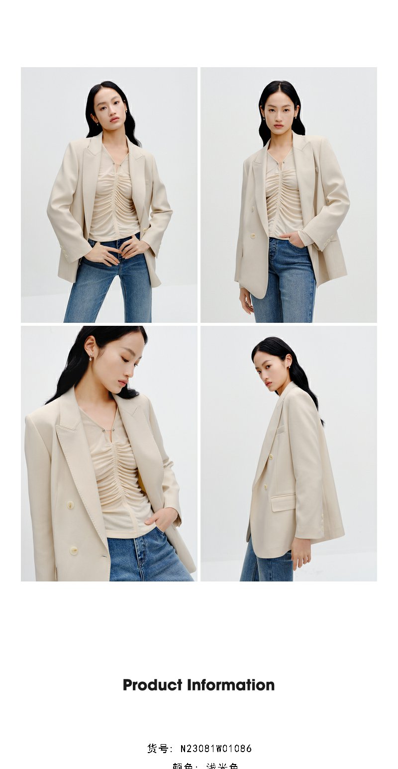 NEELLY纳俪商场同款米色西装外套小众设计感秋季新款休闲职业西服N23081W01086