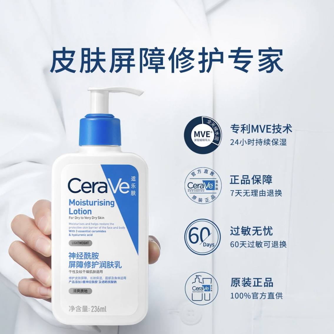 CeraVe• 适乐肤神酰C乳 全天候保湿润肤液神经酰胺补水修复屏障面部或身体 236ml