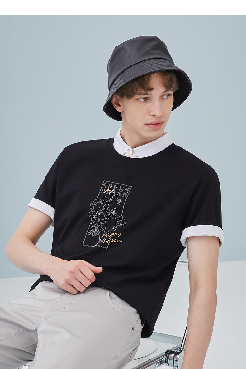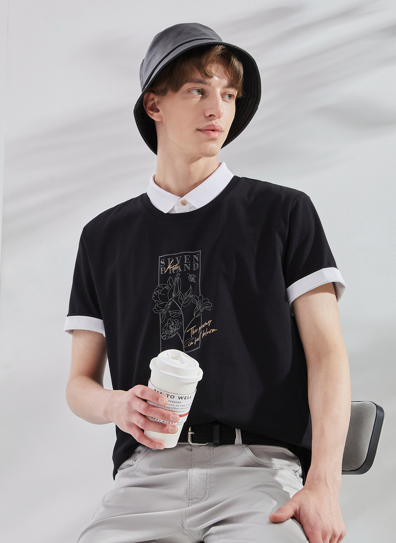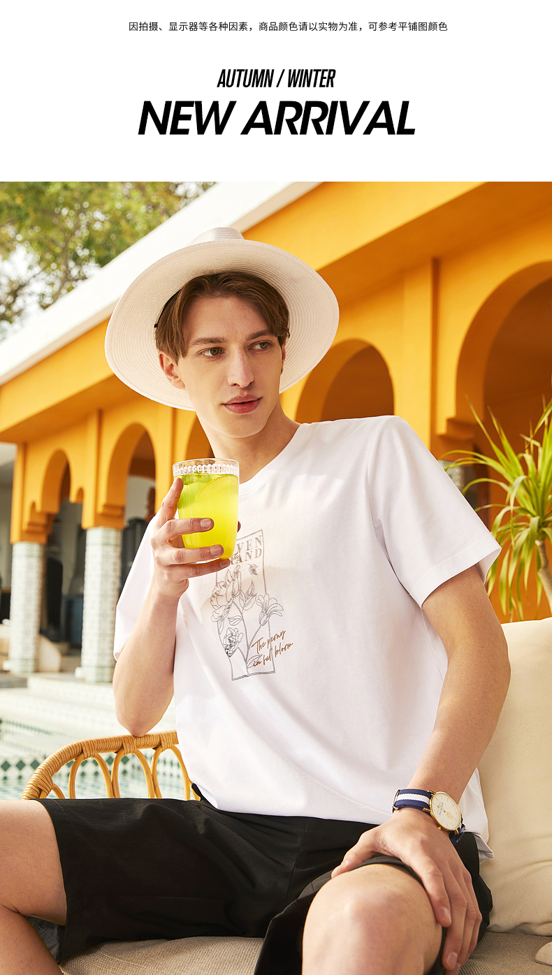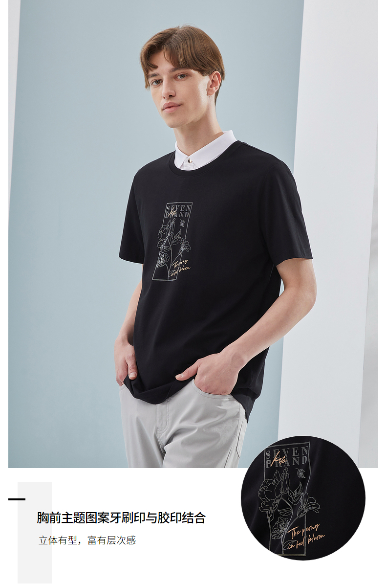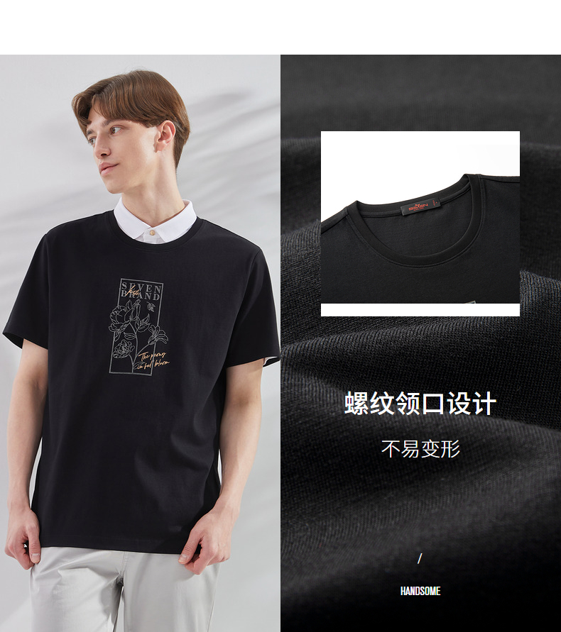 【冰氧吧】柒牌圆领短袖T恤男夏季新款凉感舒适男士休闲上衣 124T71900