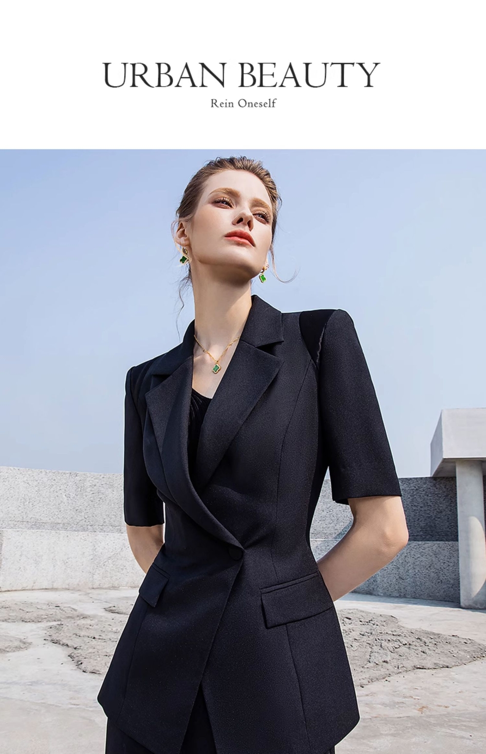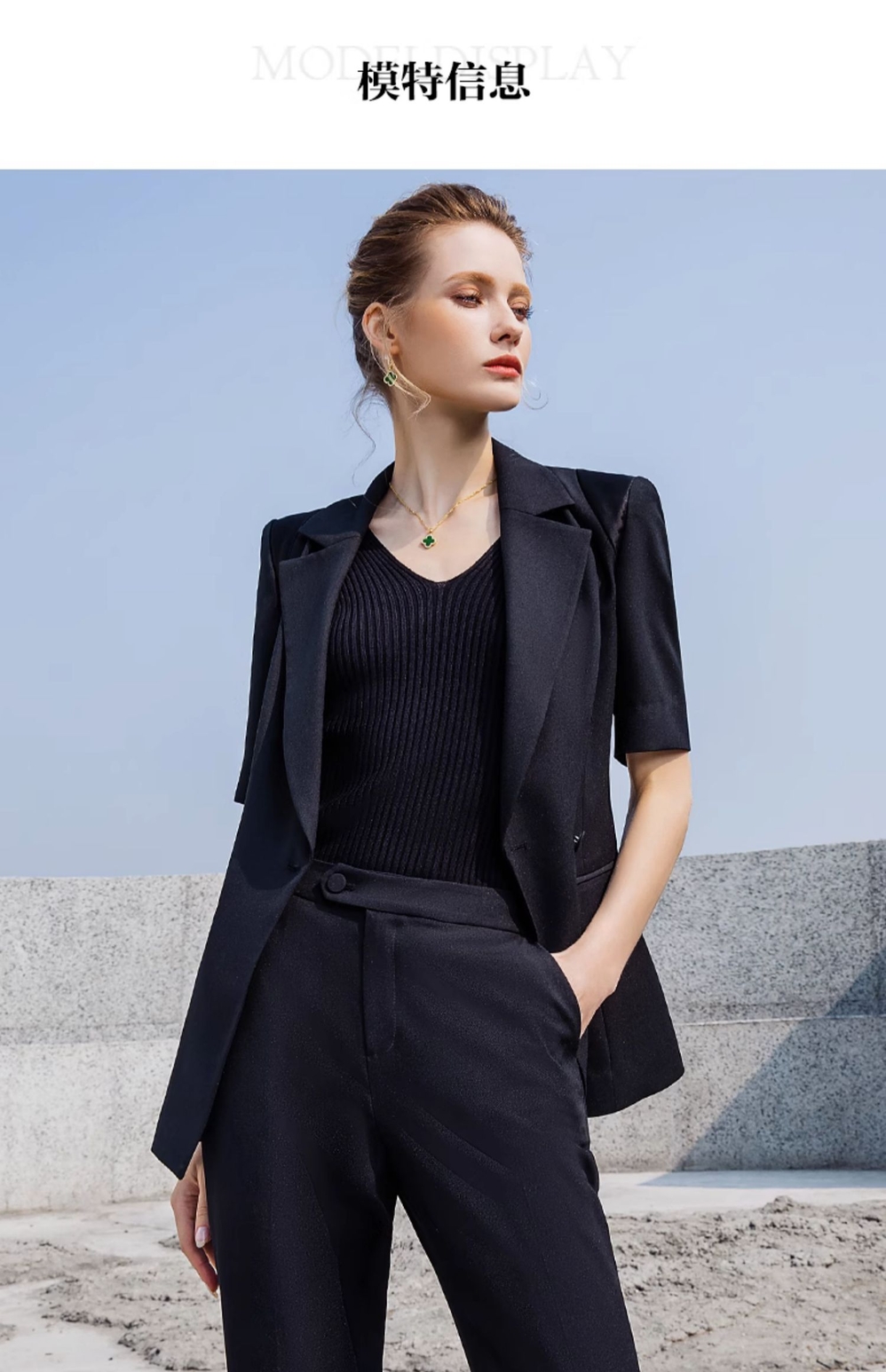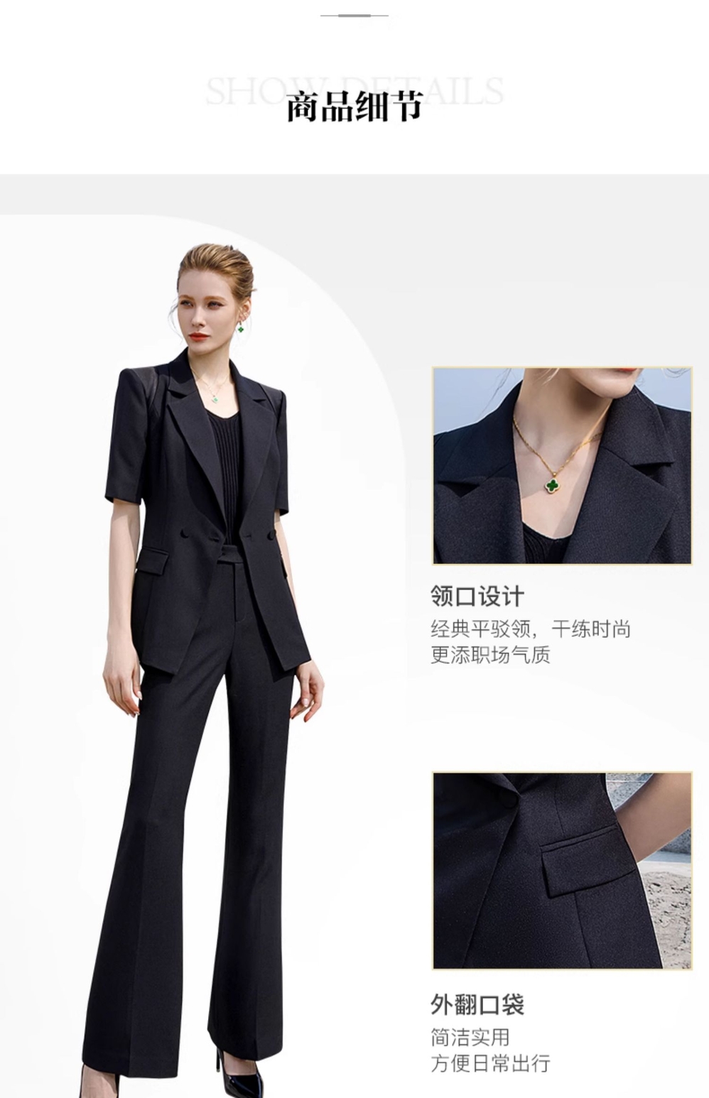 IWY/高端黑色西装套装女总裁西服短袖商务通勤工作服职业微喇裤装232010C1+P3