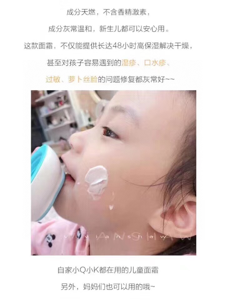 宫中秘策儿童面霜180ml 宫中秘策属于韩国高端儿童护肤品牌,完全无添加,这个面霜是明星产品,没有特殊的味道、大瓶耐用,擦一点滋润一整天,特别温和,宝宝吃到嘴里都不怕。