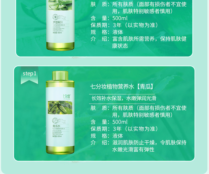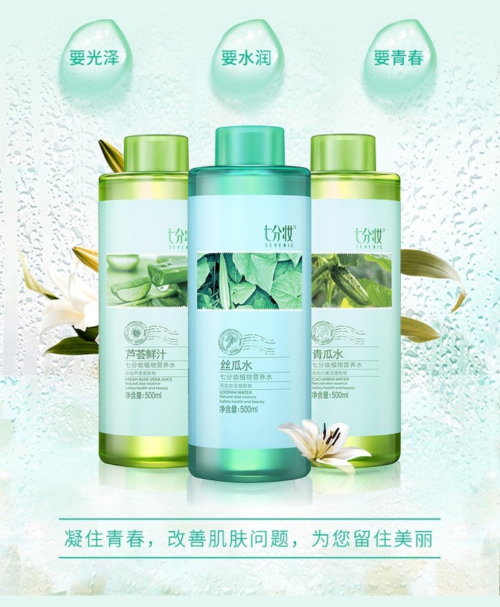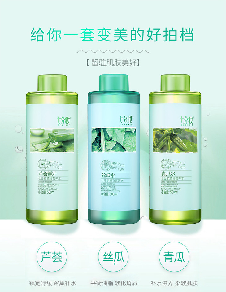 【一般贸易】七分妆青瓜水原液保湿补水收缩毛孔爽肤水500ml