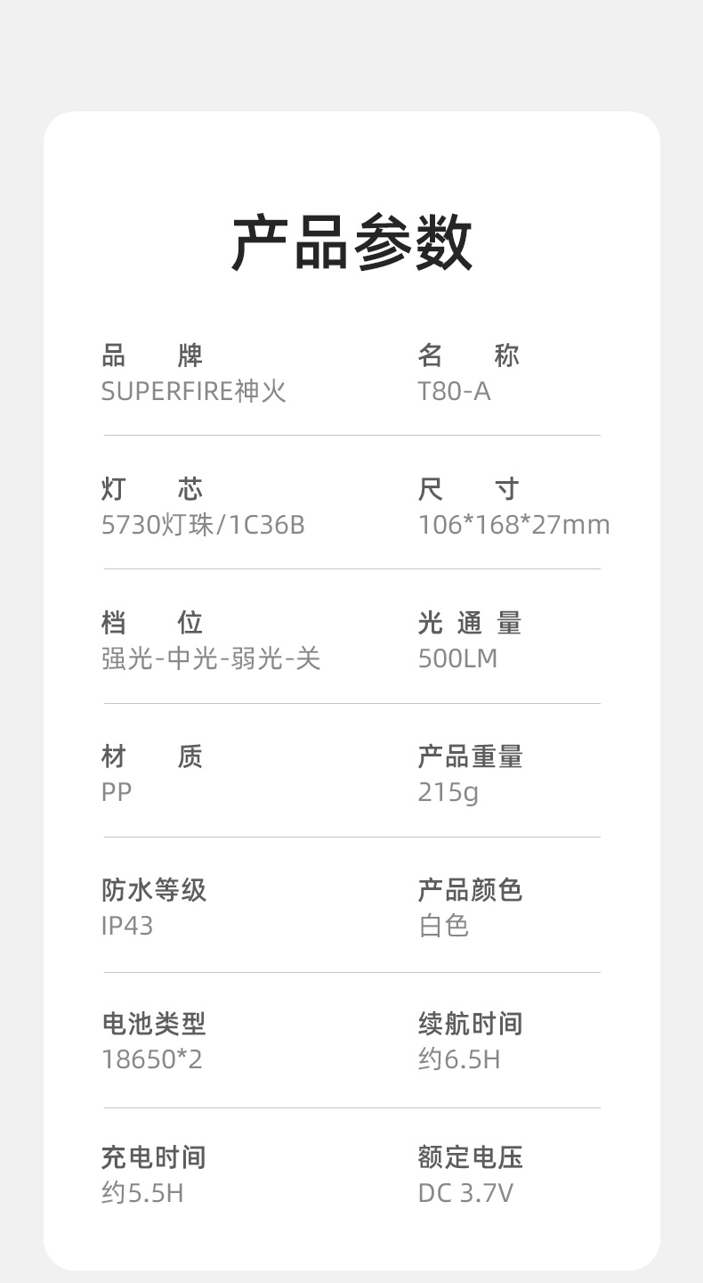 神火T80-A夜市摆摊必备露营灯停电应急持久续航可充电