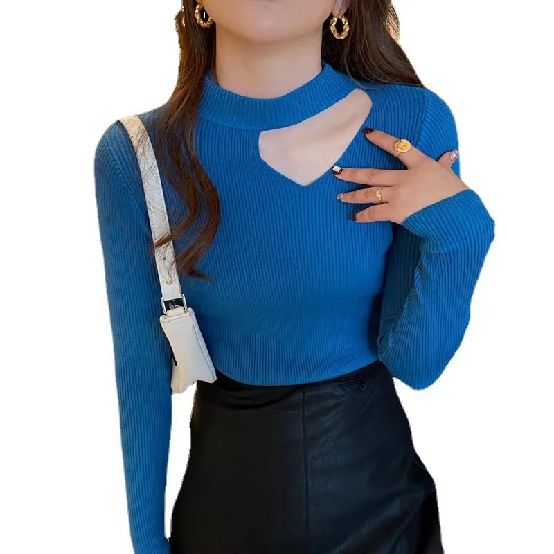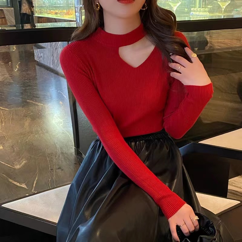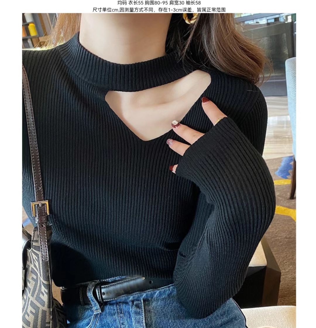 (清仓现货)【社群供T】法式挂脖新款别致半高领修身薄款针织打底衫