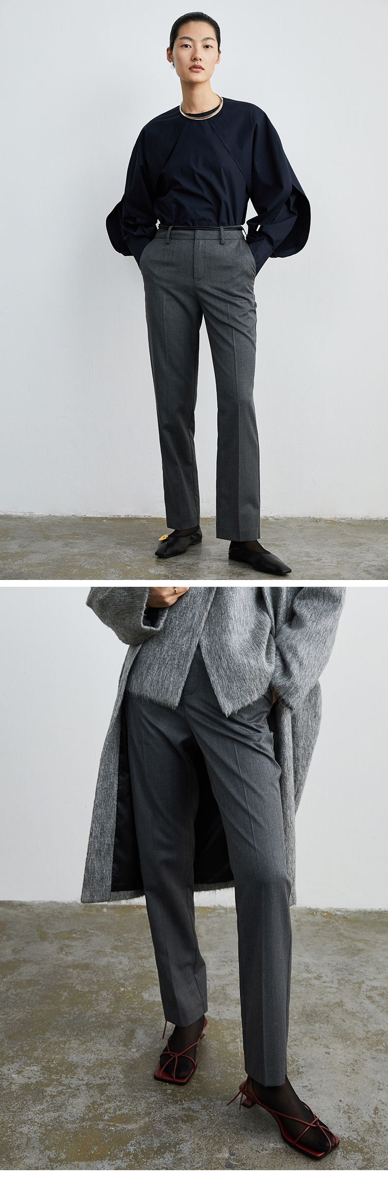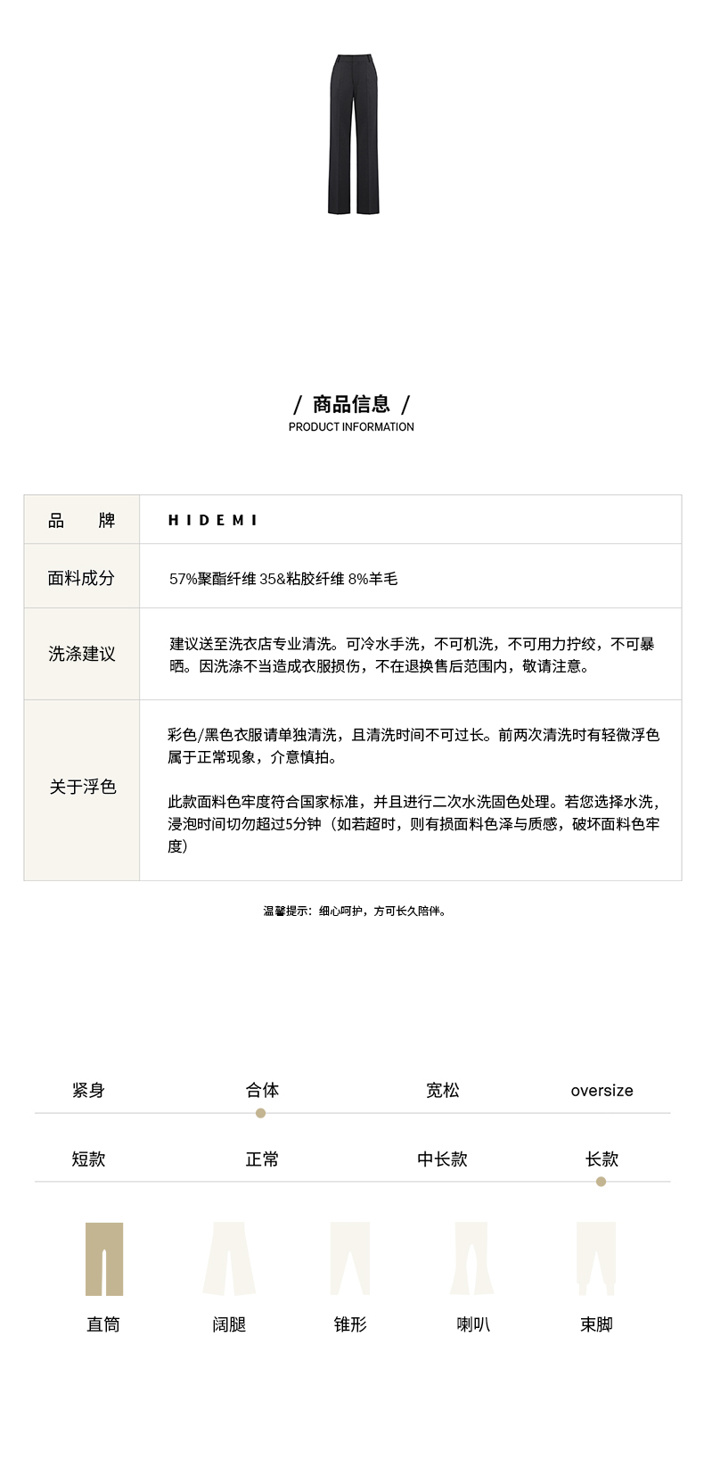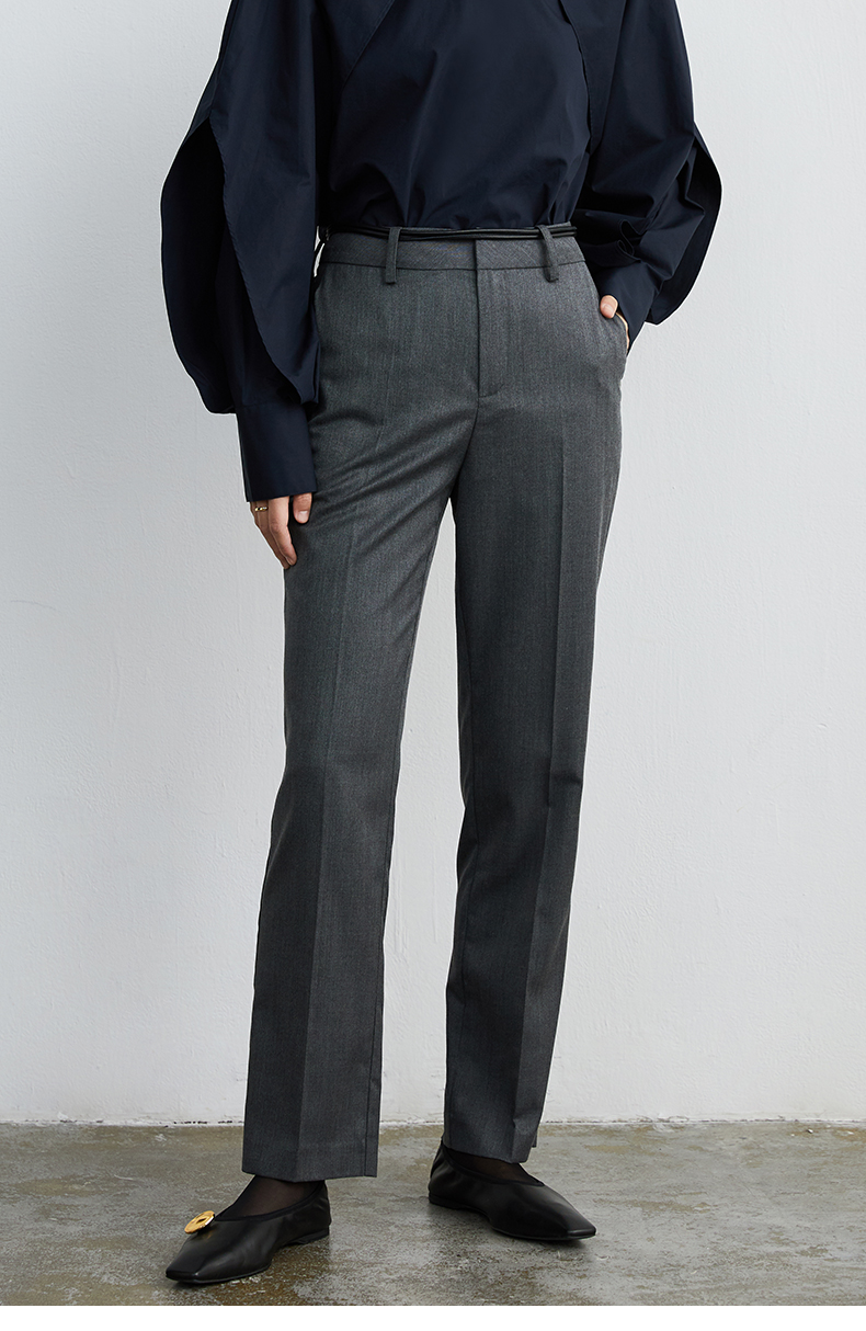 HIDEMI 灰色直身九分西裤