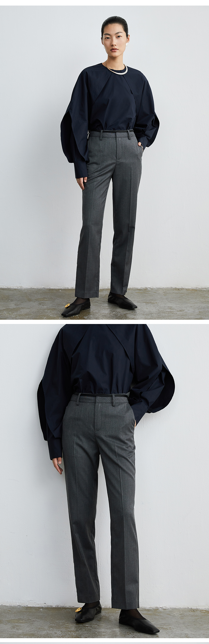 HIDEMI夜灰色简约不对称设计感一粒扣阔腿裤