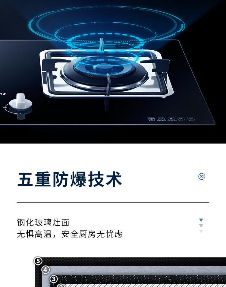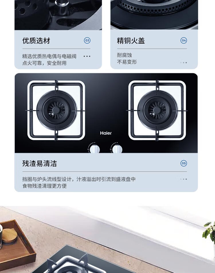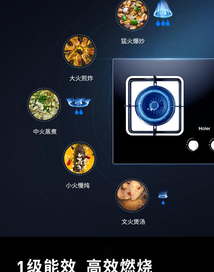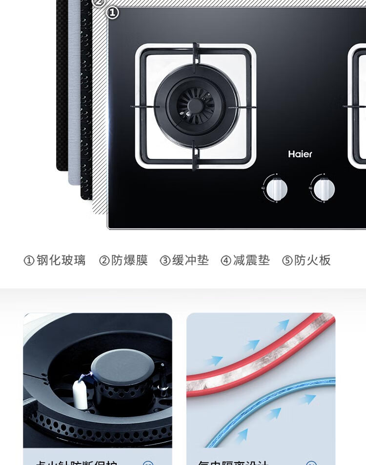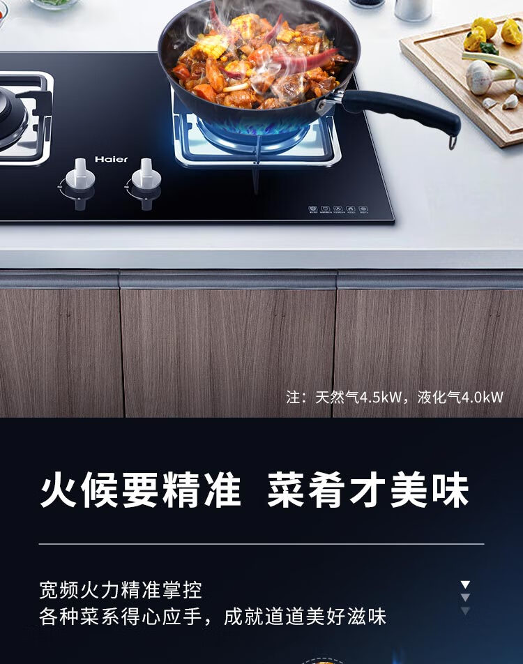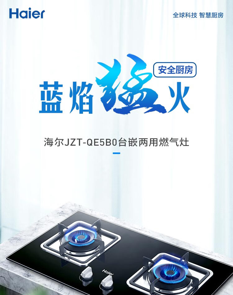 海尔(Haier)聚能直喷火 多重保护大火力 台嵌两用煤气灶 家用煤气灶双灶 4.5kW天然气 JZT-QE5B0(12T)