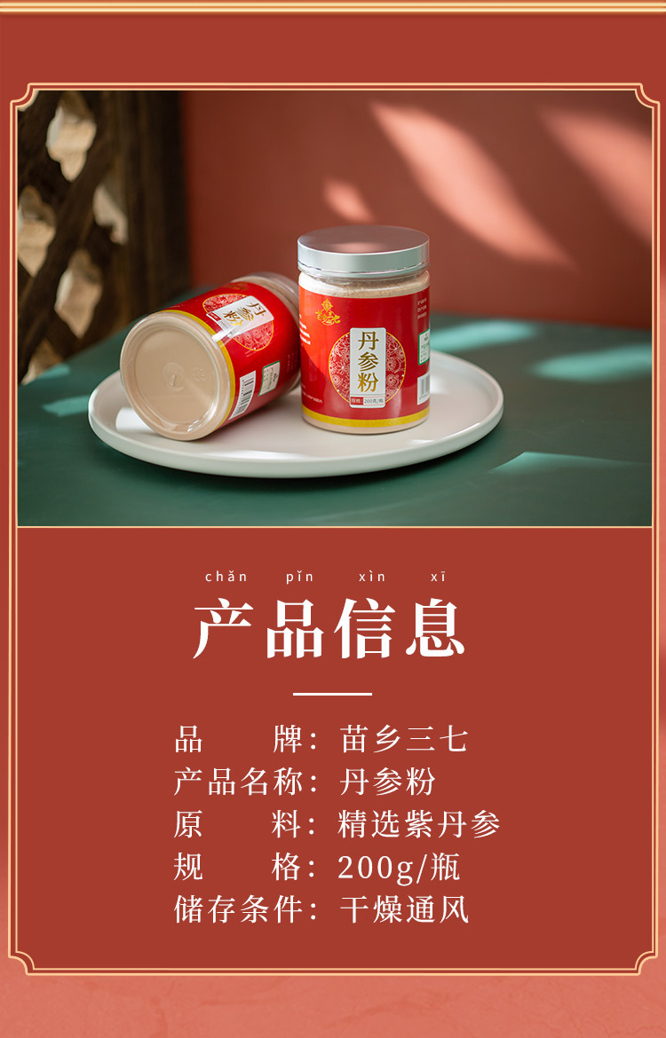 苗乡丹参粉瓶装200克/瓶 精选道地丹参打粉 粉质细腻 易吸收