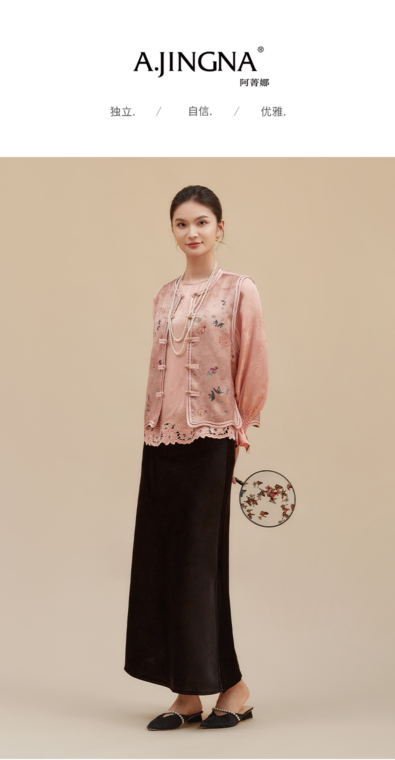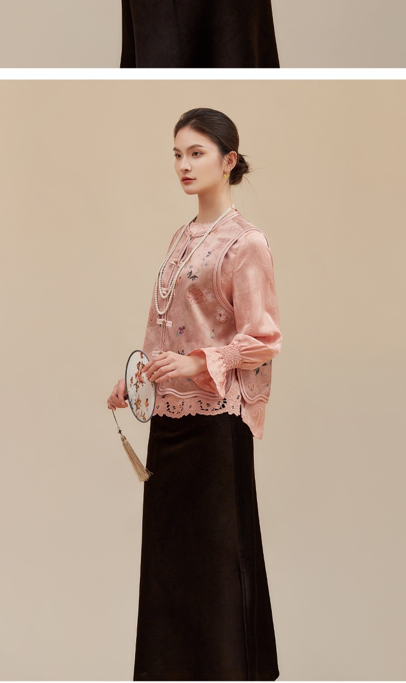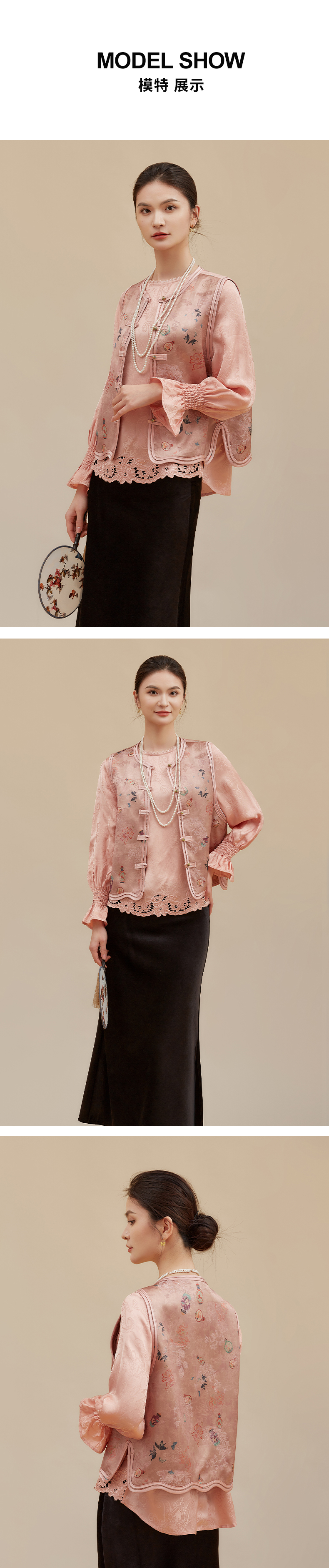 【百蝶图苏绣】阿菁娜冬季新款蝶影迎春新中式马甲百蝶图苏绣灵感柔雾粉提花F30D203036