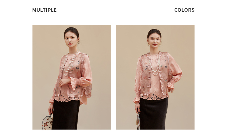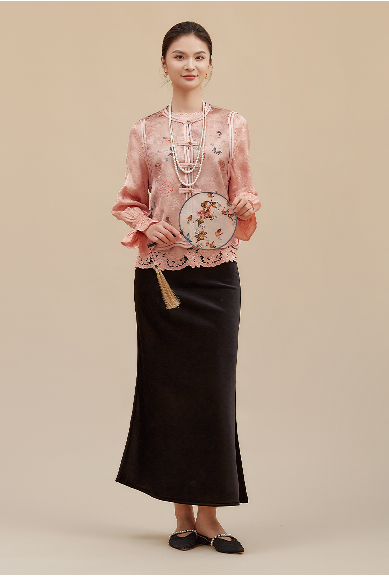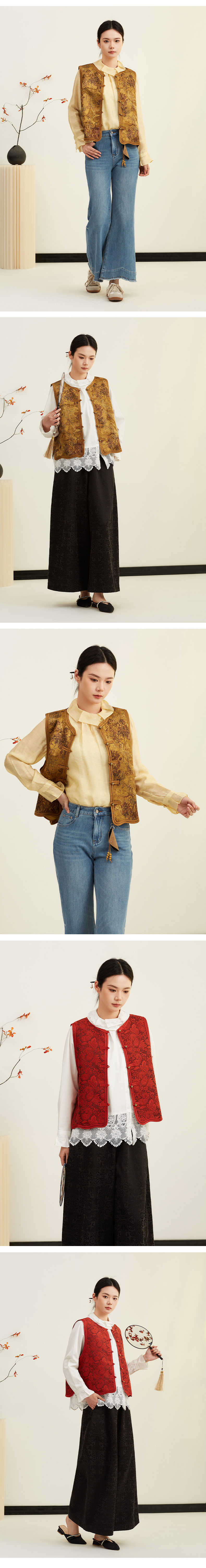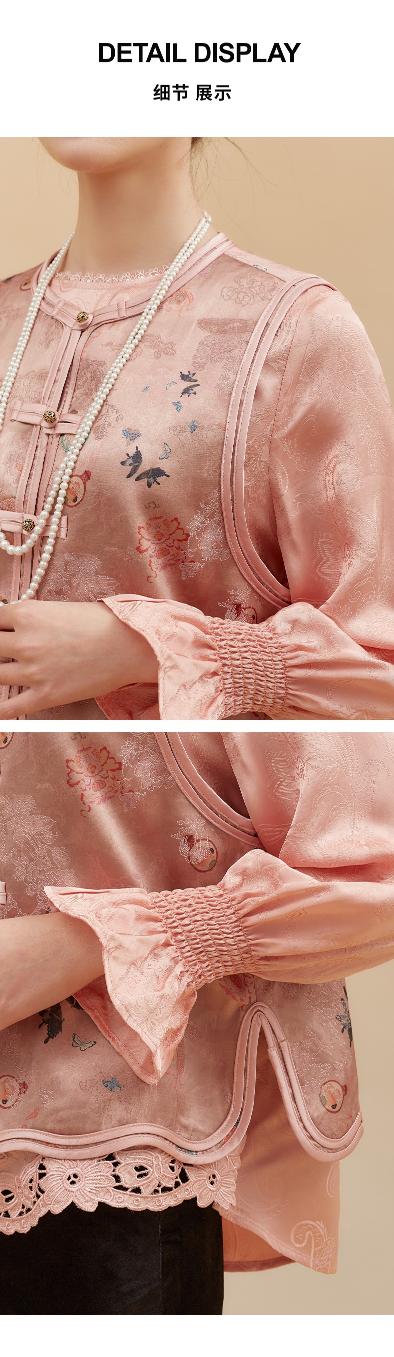 【百蝶图苏绣】阿菁娜冬季新款蝶影迎春新中式马甲百蝶图苏绣灵感柔雾粉提花F30D203036