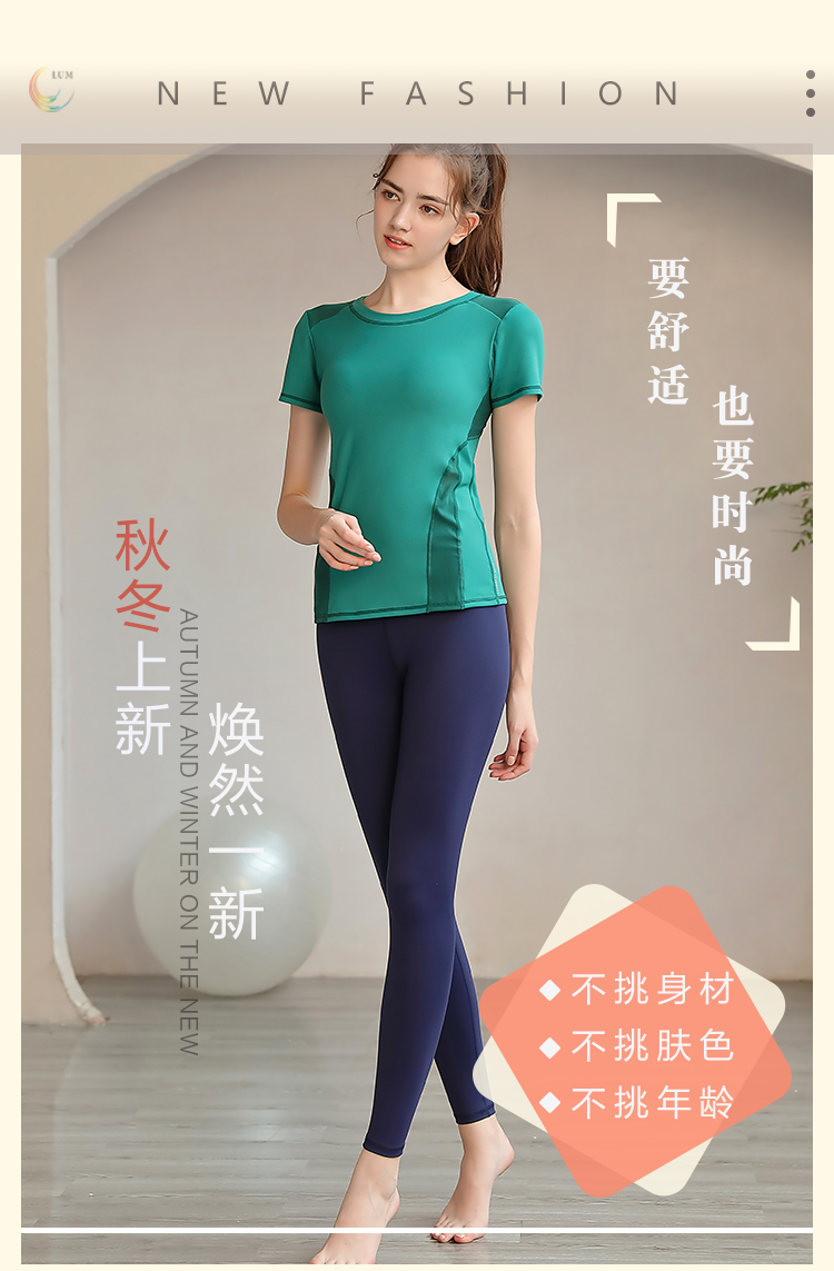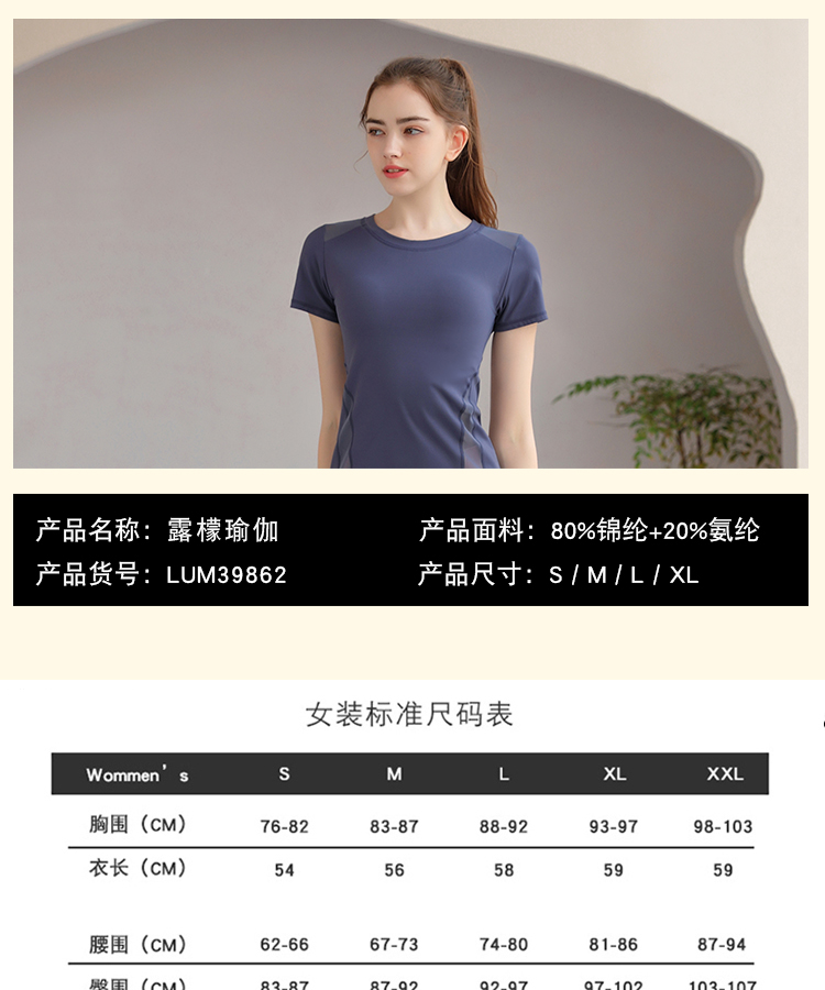 LUM39862露檬瑜伽运动短袖双面磨毛面料(含胸垫)