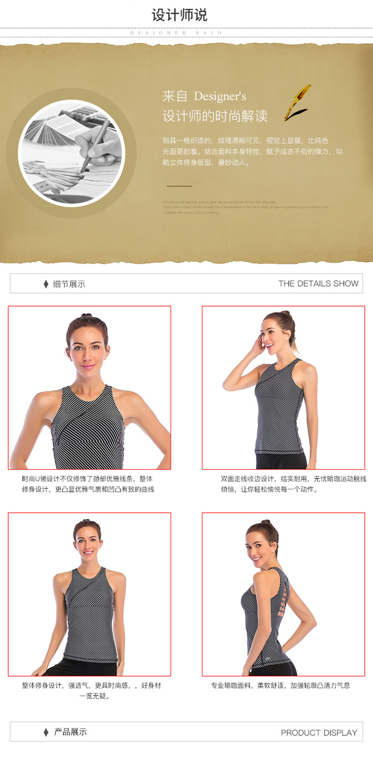 【双旦买一赠一】华威特     瑜伽黑白条型圆领背心 商品图4