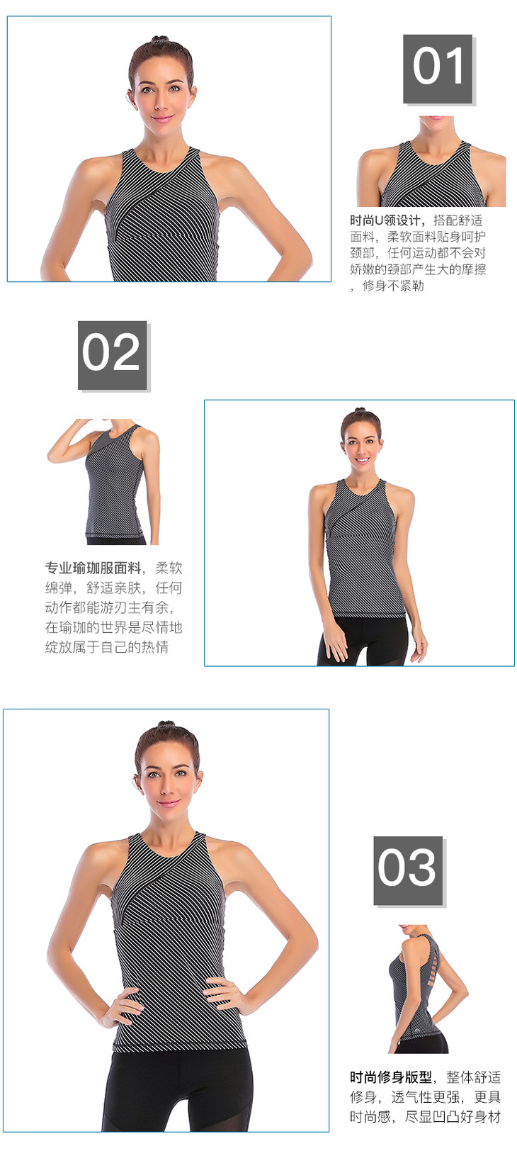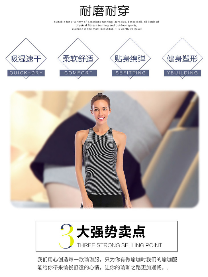 【双旦买一赠一】华威特     瑜伽黑白条型圆领背心 商品图3