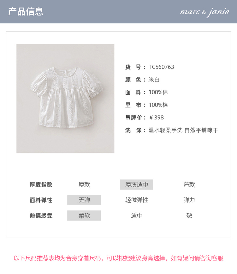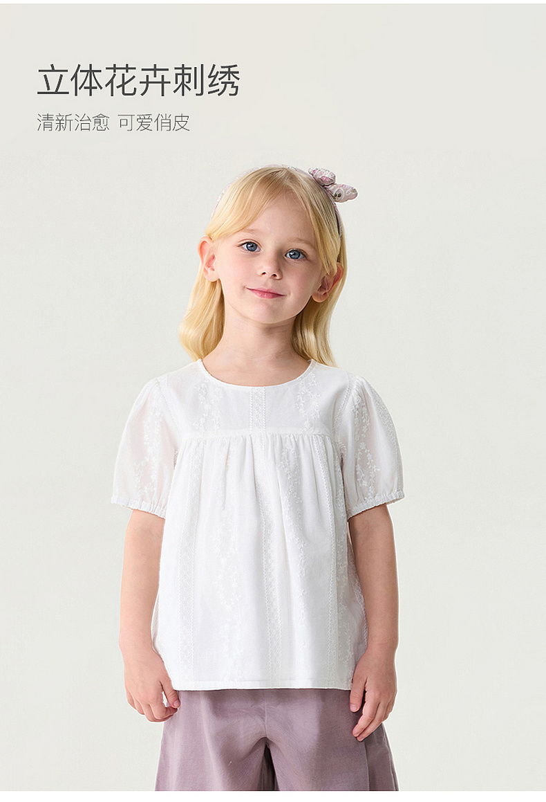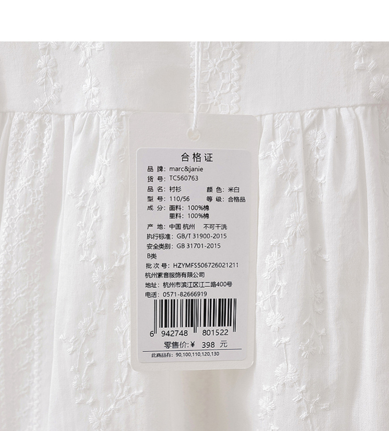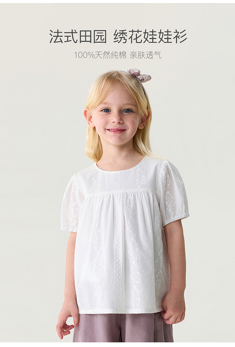 马克珍妮法式田园女童绣花娃娃衫2026年夏装新款560763