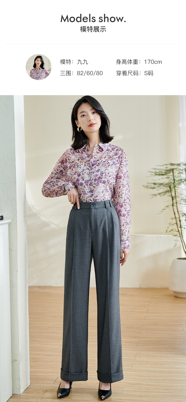 剩S/M/XL 米思阳2026春季新款通勤复古直筒休闲裤高腰修身职业西裤女士0082