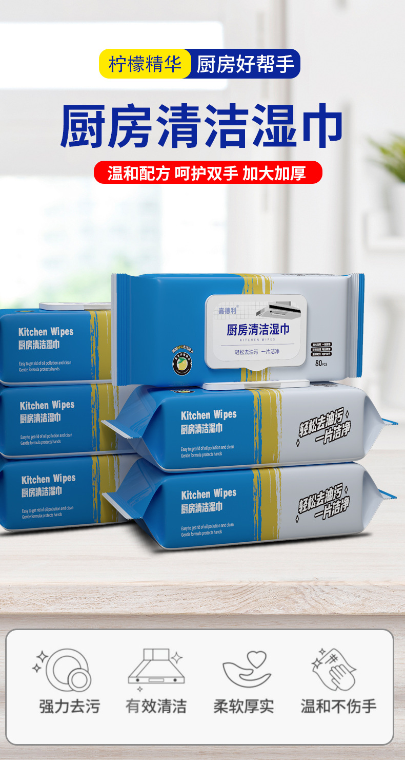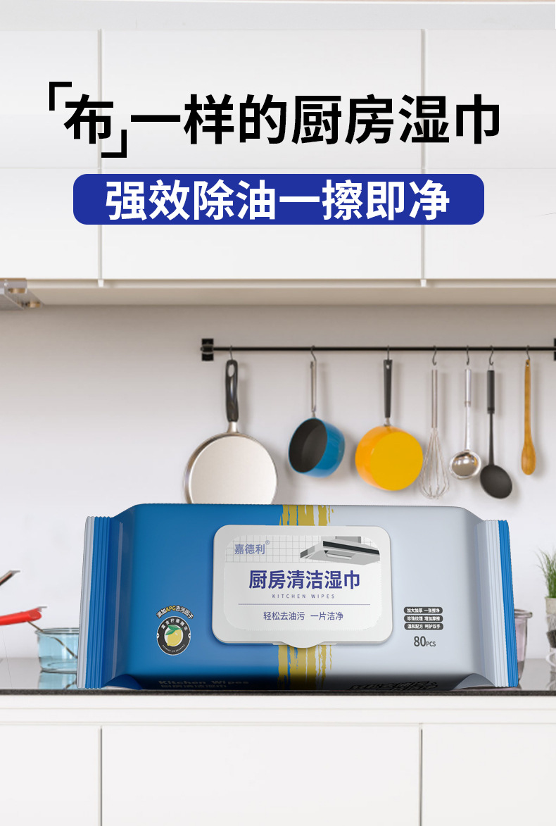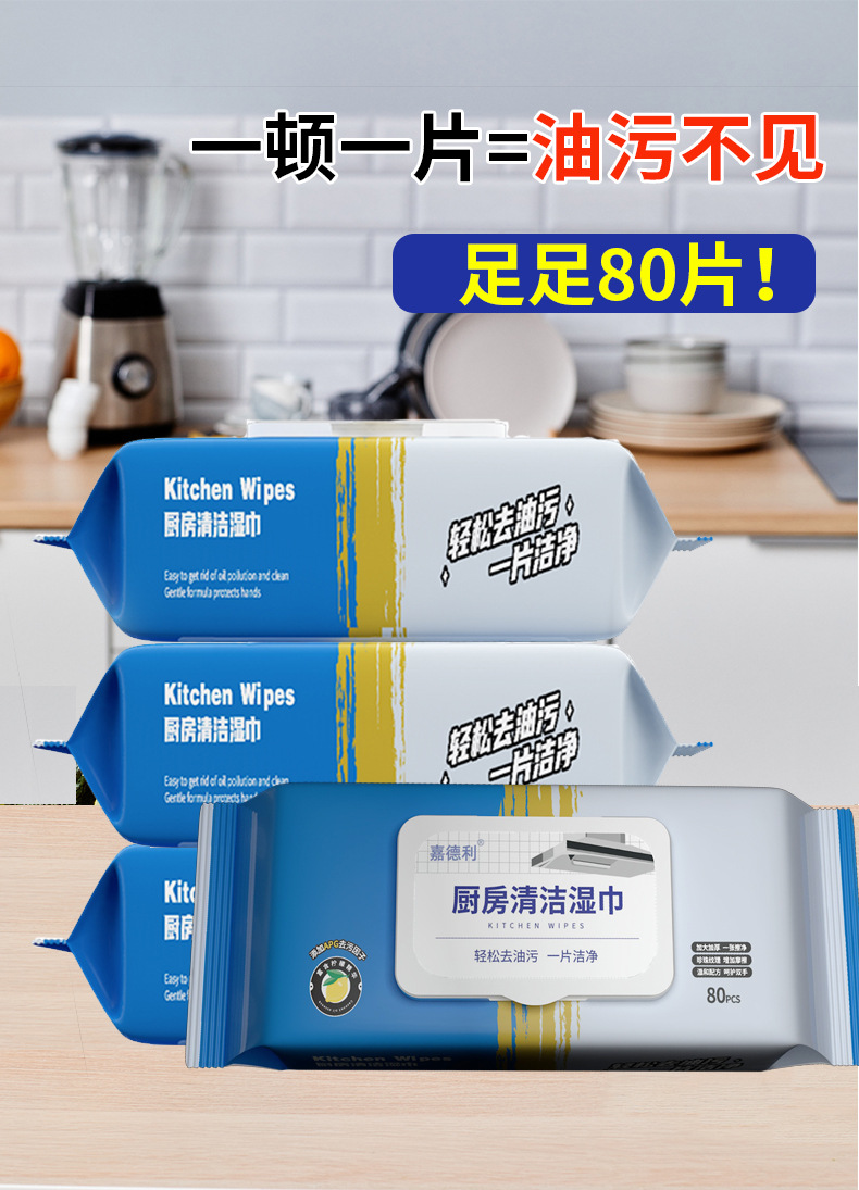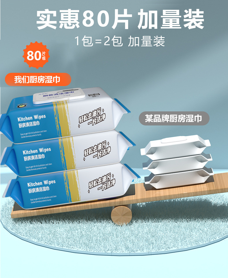 【3包】厨房湿巾、强力去油污、家用加厚加大厨房、80抽/包-58