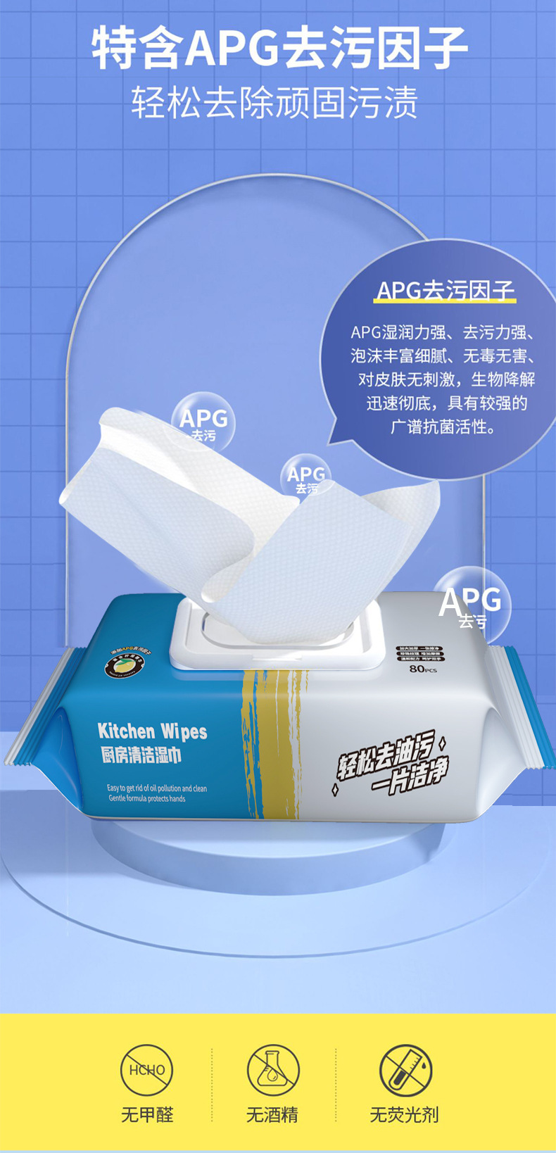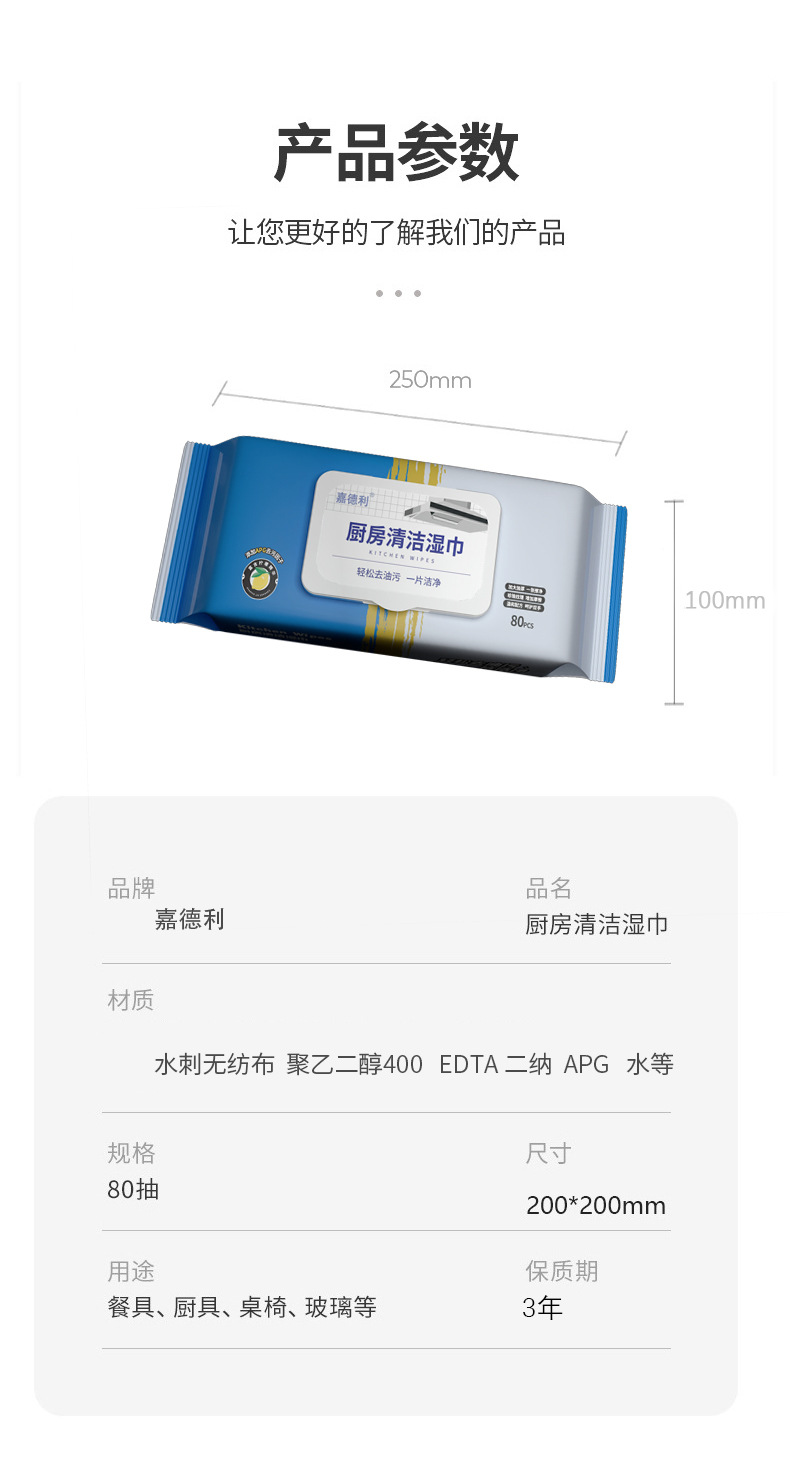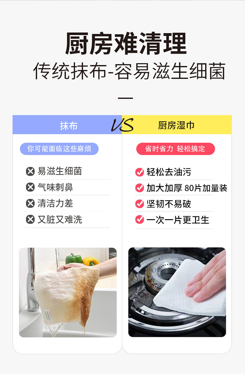 【3包】厨房湿巾、强力去油污、家用加厚加大厨房、80抽/包-58